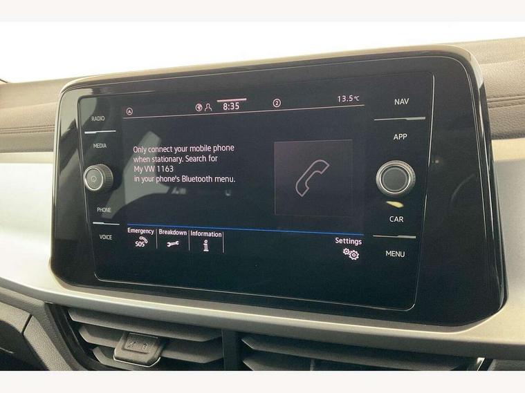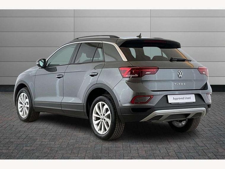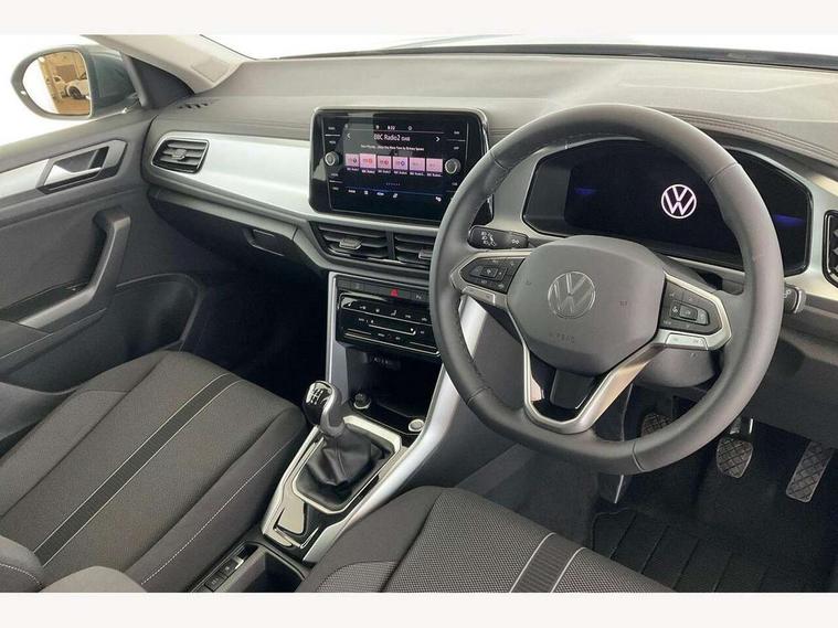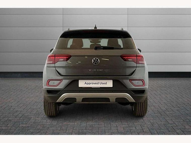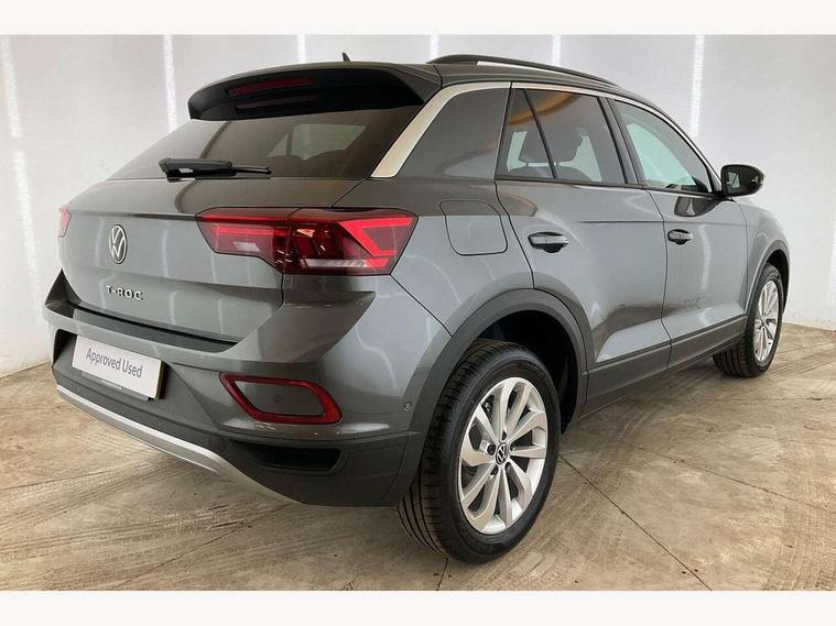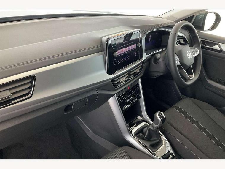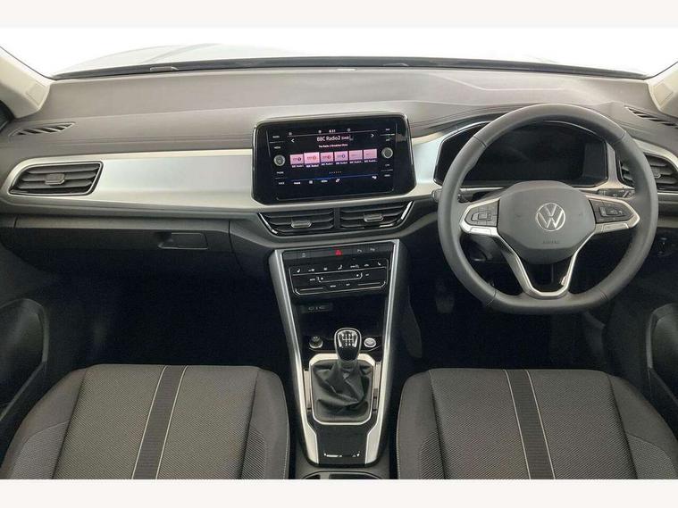 Advanced driver attention and drowsiness monitor, Dynamic road sign display, Emergency call service, Lane keeping system Lane Assist, Mobile phone interface, Modified key software - reduce switch off time for key status change to Long no motion, Online services, Park assist including front and rear parking sensors, Power assisted speed sensitive steering, Rear view camera, Service interval indicator, Tailgate/trunk lid release from outside, Think blue trainer driver tips and journey analysis, Warning sound and light for front seatbelts unfastened, Wireless app connect, Battery regeneration during braking, Front shock absorption, Rear shock absorption chassis with increased ride height, Start/stop function with battery regeneration, DAB Digital radio, Diversity antenna for FM reception, Music playback - MP3, WMA and AAC files, SD card slot, Simultaneous pairing of 2 compatible mobile devices, Title and cover art display, We Connect and We Connect Plus functionality, Auto dimming interior rear view mirror, Automatic hazard lights activation under emergency braking, Automatic headlight control with LED separate daytime running lights with coming/leaving home function, Black roof rails, Body coloured bumpers and radiator grille with chrome trim and front fog lamps with chrome bezel, Body coloured exterior mirror housings and door handles, Electrically adjustable and heated door mirrors, Extended roof spoiler, Exterior mirrors aspherical on driver side, convex on front passenger side, External USB type C socket and charging sockets, Front windscreen wiper with intermittent wipe and 4 position delay, Heated rear window, LED 3rd brake light, LED rear combination lamps, LED rear number plate lights, Power windows with comfort operation and circuit breaker, Privacy glass for rear side windows and rear window, Rain sensor, Rear exhaust tailpipe, Rear fog light on one side and reversing lights on both sides, Rear side wing doors, Rear wash/wipe with intermittent wipe setting, Remote electrically foldable door mirrors, puddle lights and reverse activated passenger's door mirror, 12V power socket in centre console, 3 rear head restraints, 3 seat bench in 2nd row, 4 load lashing points in luggage compartment, Air care climatronic air conditoning system with active combination filter and 2-zone temperature control, Black stitching for floor mats, Ceramique roof liner, Cloth upholstery, Door and side trim panel in cloth, Drawer under drivers seat, Driver/front passenger seat height adjustment, Front centre armrest, Front comfort sports seats, Front cupholders x 2, Front reading light, Front seat back storage pockets, Glove compartment door with light, Instrument lighting, white adjustable panel illumination, Interior ambient lighting and surround lighting, Interior light delay, Isofix child seat preparation, Leather gearshift handle, Load-through provision with cup holder when folded down ('Unsplit rear seat bench, split folding backrest, with centre armrest), Luggage compartment lighting, Lumbar support for driver's and front passengers seat, Non-folding front passenger seat backrest, Single front passenger seat, Storage compartment in left and right luggage area, Storage compartment in rear doors, Storage compartments in driver and front passenger doors, Sunvisors with illuminated vanity mirrors, Variable boot floor, height adjustable and removable, Driver assistance pack without proactive passenger protection - T-Roc Life/Match, 3 point height adj front seatbelts + pretensioners, 3 point seatbelts in outer rear with ECE label, ABS, Child locks on rear doors, City emergency braking and pedestrian monitoring, Driver and front passenger airbag with front passenger airbag deactivation, Driver and front passenger safety-optimised head restraints, Drivers seatbelt reminder, Electronic parking brake, Electronic Stability Control (ESC) inc EDL (Electronic Differential Lock) and ASR (Traction Control), Front and rear passengers curtain airbag system including front side airbags, Front disc brakes, Hill start assist, Predictive pedestrian protection, Rear disc brakes, Two tone horn, Tyre pressure loss indicator, Volkswagen roadside assistance, Alarm with interior protection, Keyless locking and starting system keyless access with safelock, Pewter matt decorative inserts for intrument panel, centre console and door panels at the front, Trims for alloy wheels,
