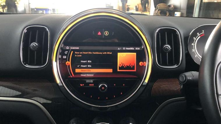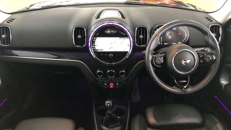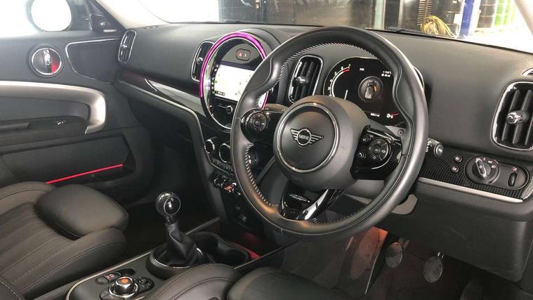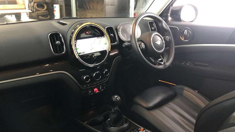 Active Guard incl speed limiting and lane departure functions with auto steering, and front collision warning with brake intervention, Automatic start/stop function with brake energy recuperation, Electro-mechanical speed dependant steering assistance, Instrument cluster, Mini E-call, MINI TeleServices, On board computer, Rear parking distance control, 6 Speed manual transmission including gear change indicator display, Double Vanos system, Fully variable valve control, High precision injection, FM tuner and DAB digital radio, Body colour fuel filler cap, Chrome line exterior, Day time driving lights, Door sill strips, Dynamic brake lights, Electric windows, Heated rear window, Heated windscreen washer jets, LED fog lights, LED Headlights, Left exhaust tailpipe with chrome finisher, Model logo, Model logo on Tailgate, Radiator grille, Rain sensor with auto headlights, Rear fog lights, Rear window wiper, Side scuttle panel with integrated indicator, Split rear doors, Sun/heat protection glass, White indicator lenses, 12V Accessory socket in centre console, 360L luggage compartment capacity, 4 lashing eyes in luggage compartment, 40:20:40 split folding rear seats, Chrome interior highlights, Colour line - Carbon black, Cupholders, English handbook, Front headrests, Glove compartment, Height and length steering column adjustment, Interior lighting with 12 basic colours selectable via toggle switch in roof, Isofix rear child seat preparation, Leather gearshift lever and handbrake gaiters, LED reading lights, vanity mirror lights, front foot well light and spotlight on front seats, Manual air conditioning, MINI Yours fine walk nappa leather steering wheel with contrast stitching in silver and MINI Yours badge, Multifunction steering wheel, Passenger seat height adjuster, Rear headrests, Storage compartments in doors, Sunvisors with vanity mirrors, Excitement pack - Countryman, Navigation pack - Countryman, 2 tone horn, 3 point seatbelts on all seats, 6 Airbags - front, side, head and seat belt tensioners, Anti-lock braking system (ABS), DSC - Dynamic Stability Control, Electronic handbrake, Front and rear disc brakes, Hill start assist, Tyre pressure monitoring system, Alarm system with tilt sensor, monitoring doors, bonnet interior and tailgate, Auto drive away locking, Deadlocking function, Electronic vehicle immobiliser, Locking wheel bolts, Start/stop toggle with keyless go, Chrome line interior, Tool kit,