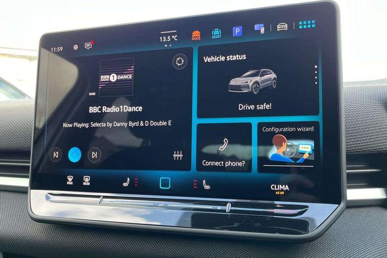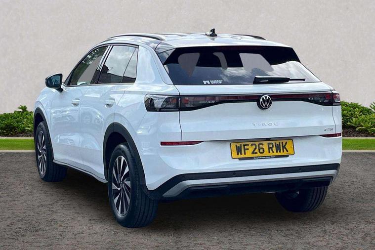 8" Digital cockpit basic display, Driver attention monitor and driver alert system, Dynamic road sign display, E-Sim card for online connectivity, Emergency call service, Front and rear parking sensors, Front cross traffic assist, Lane change system, Side assist, Rear traffic alert and Exit warning system, Lane keeping system Lane Assist, Multifunction front facing camera for distance control, Oncoming vehicle braking when turning including swerve support, PAS, Warning sound and light for front seatbelts unfastened, Wireless app connect, Wireless Smartphone charger, Hybrid drive system MHEV, Start/stop function with battery regeneration, 2 USB C ports in front, 1 USB C charging socket on the rear center console, charging capacity up to 45W, DAB Digital radio, Diversity antenna for FM reception, Mobile phone interface with inductive charging feature, We Connect and We Connect Plus functionality, Auto dimming interior rear view mirror, Automatic headlight control with LED separate daytime running lights with coming/leaving home function, Black roof rails, Body coloured bumpers, Body coloured exterior mirror housings and door handles, Electrically folding, adjustable and heated door mirrors with front passenger exterior mirror lowering function, High Beam Assist, automatic sensing for switching between dipped and main beam, Illuminated door handle recesses, LED 3rd brake light, LED rear combination lamps, Rain sensor, Rear fog light on one side and reversing lights on both sides, Rear side wing doors, Rear wiper, Surround lighting with welcome light, 12V power socket in centre console, 3 rear head restraints, 3 seat bench in 2nd row, Cloth upholstery, Door and side trim panel in cloth, Driver/front passenger seat height adjustment, Front + rear carpet mats, Front centre armrest, Front comfort seats, Front headrests, Inserts of front and outer rear seats in fabric T-Roc, ISOFIX anchors for child seats on outer rear bench seats and on front passanger seat compatible for i-Size, Luggage compartment floor adjustable in 2 heights, for flat cargo area, Non-folding front passenger seat backrest, Power-adjustable lumbar support in front seats, Single front passenger seat, Soul black dashboard, Sunvisors with illuminated vanity mirrors, Unsplit rear seat bench, asymmetric folding backrest, with centre armrest, 3 point height adj front seatbelts + pretensioners, 3 point seatbelts in outer rear seats, ABS, Child locks on rear doors, Curtain and side airbags in front with centre airbag, Driver and front passenger airbag with front passenger airbag deactivation, Drivers seatbelt reminder, Electronic parking brake with auto hold function, Electronic stability control (ESC) and Electromechanical brake booster, First aid kit with warning triangle and safety vest, Front disc brakes, Hill start assist, Rear disc brakes, Tyre pressure loss indicator, Anti theft wheel bolts, Decorative inserts in matte pyrite silver, Decorative material set,
