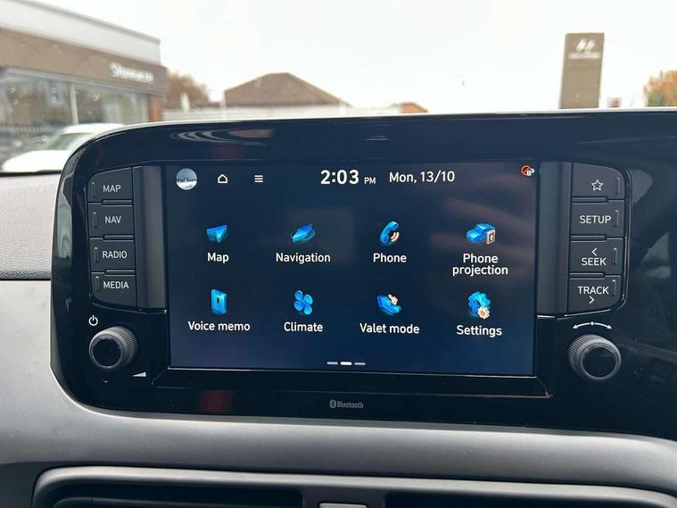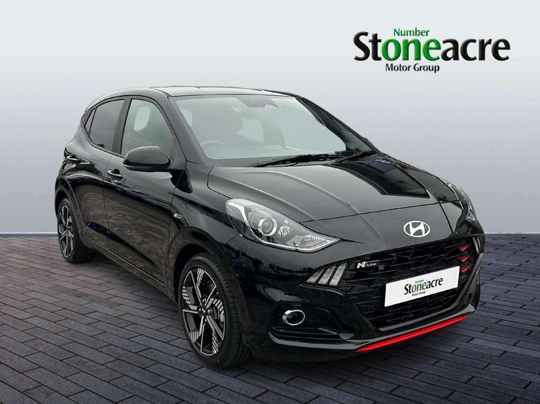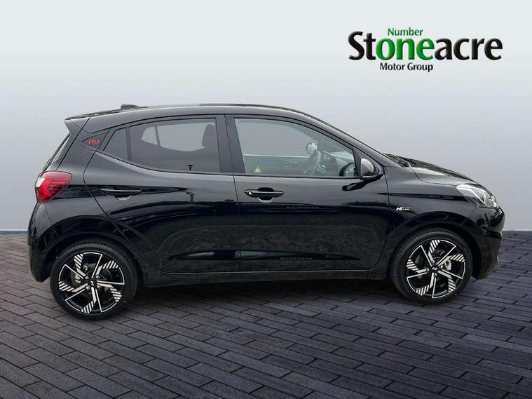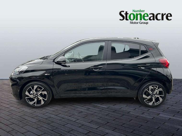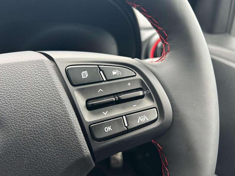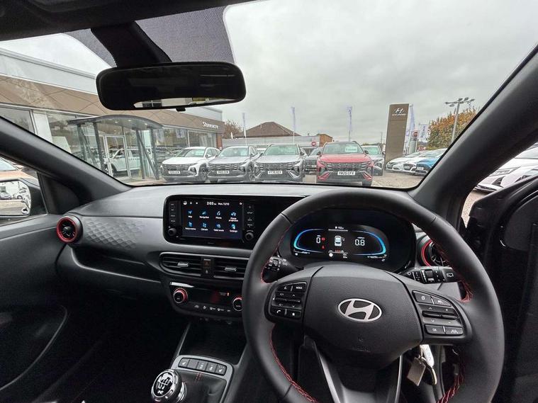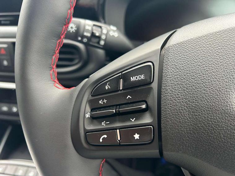 8" Touchscreen satellite navigation including mapcare and LIVE services, Apple car play/Android Auto, Bluelink mobile remote connectivity, Bluetooth connectivity with voice recognition, Cruise control, Driver attention alert system, eCall emergency call system, Forward Collision-Avoidance Assist (FCA) - Pedestrian/Cyclist, Full-width 4.2" LCD instrument cluster, Intelligent speed limit assist, Lane departure warning system with lane keep assist - LKAS, Lane follow assist, PAS, Rear parking sensors, Rear view camera with guidelines, Roadside assistance, Tailgate, Trip computer, Wireless charging pad, 2 front/2 rear speakers, Front and rear USB-C ports, Front USB connection, Leading vehicle alert (LVA), Steering wheel audio, phone and cruise controls, 1 speed non intermittent rear windscreen wiper, Black finish on B pillars, Body colour door handles, Body coloured bumpers, Electric folding door mirrors, Electric front windows, Electric rear windows, Electrically adjustable and heated door mirrors, Flat metal emblem, Front fog lights, Front intermittent wipers, Glossy black door mirrors, Halogen bi-function headlights, Headlights inner with Blade design, Heated rear window, High beam assist, Indicator light on door mirrors, LED daytime running lights, N Line Badging, N Line design front grille, Privacy glass for rear window, Rear LED combination lamps in H pattern, Rear roof spoiler with integrated LED brake light, Rear side wing doors, 12v power outlet - front, 3 seat bench in 2nd row, 60/40 split folding flat to floor rear seats, Air conditioning climate control, Auto light control, Bottle holders in front/rear doors + front centre console, Cabin and luggage compartment interior lighting, Cloth upholstery, Dashboard finisher in Dark Grey Metal with Flame Red air surrounds, Driver + passenger vanity mirrors, Driver's seat height adjustment, Driver/passenger sunvisors with ticket holders, Floor mats, Front door pockets, Front Head Restraints - Vertical and Horizontal Adjustment, Front LED blue mood lighting, Glove compartment, Heated front seats, Heated steering wheel, Height adjustable steering column, Isofix child seat preparation, Leather wrapped steering wheel and gear knob, N Line branded leather gear stick, N Line branded leather steering wheel, Rear door pockets, Single front passenger seat, Vertical adjustment rear head restraints, 13" Rear brake discs, 3x3 point rear seatbelts, Airbags - front, front side and curtain airbags, Anti-lock brake system (ABS), Autonomous emergency braking (AEB) with forward collision warning system, Brake assist function, Childproof rear door locks, Electronic stability control, Front and rear seatbelt reminder, Front seatbelt pretensioners, Hill start assist control (HAC), Passenger airbag deactivate switch, Traction control, Tyre pressure monitoring system, Immobiliser, Perimeter alarm, Rear occupant alert, Remote central locking, Second remote key, Smart key with keyless entry and engine start/stop button, Speed sensitive auto door locking, 16" alloy wheels, N logo centre caps, Temporary mobility kit (TMK),