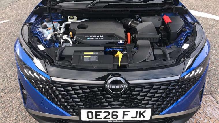 7" High definition full colour TFT screen combimeter, Blind spot warning, Drive assist custom mode, Drive modes (sport, normal, eco), Driver drowsiness and attention warning, e-Pedal step, Electric speed sensitive power steering, Emergency and breakdown call, Emergency lane keep assist, Emergency Stop Signal (ESS), Engine start/stop button, EV mode switch, Event data recorder, Idle stop/start system, Intelligent Cruise control (ICC), Intelligent driver alert system, Intelligent forward collision warning, Intelligent lane intervention, Intelligent speed assist, Lane departure warning system, Maximum speed limiter, Nissan connect 12.3 inch touchscreen infotainment system, Outside temperature sensor, Rear cross traffic alert, Rear parking sensors, Rear view camera, Reversing detection, Traffic sign recognition with legal speed adjustment, Trip computer, Wireless Apple CarPlay and wired Android Auto, Limited slip differential, 2 front USB-C ports, 6 speakers, AM/FM audio system with DAB, Bluetooth audio streaming, Auto dimming frameless rear view mirror, Auto rear wiper when reversing, Body colour mirror caps, Body coloured door handles, Bodyside mouldings, Chrome side window finisher, e-POWER badging, Electric auto folding door mirrors, Electrically adjustable and heated door mirrors with LED turn indicator, Follow me home headlights, High beam assist, Intelligent auto headlights, LED 3rd brake light, LED daytime running lights, LED Headlights, LED rear lights, One touch front and rear electric windows with remote opening and closing, One touch passenger window, Partially body coloured bumpers, Rain sensing wipers, Rear roof spoiler, Rear side wing doors, Shark fin antenna, Splash free rain sensing wipers, Three blink turn signal, 12v power socket in dashboard and luggage, 3 bench rear seats in 2nd row, 3 rear headrests, 60/40 split folding rear seat bench, Chrome interior door handles, Cloth upholstery, Driver and passenger sunvisors with illuminated vanity mirrors, Dual zone automatic climate control with pollen filter, e-POWER shifter, Electrically adjustable lumbar support for driver, Front centre console and armrest, Front cupholders, Front door with bottle holders, Height adjustable driver seat, Height adjustable front headrests, Height adjustable passenger seat, Luggage space lighting, Multifunction steering wheel, Passenger seat back pocket, Rear door bottle holders, Rear seat armrest with 2 cupholders, Single front passenger seat, TEP steering wheel, Tilt/telescopic adjustable steering wheel, Two rear isofix child seat anchorage points with top tether, White ambient light (Partial area coverage), 3x3 point rear seatbelt pretensioners + load limiters, ABS with EBD and brake assist, Autonomous emergency braking, Child locks on rear doors, Curtain and front side, far side airbags, Driver and passenger airbags, Driver, passenger and 2nd row rear seat belt reminder, Electric handbrake with auto hold function, Front seatbelt pretensioners + load limiters, Height adjustable front seatbelts, Hill start assist, Intelligent blind spot intervention, intelligent front emergency braking, Intelligent rear automatic braking, Tyre pressure monitoring system, Vehicle dynamic control, Engine immobiliser, Intelligent key with walk away lock and approach unlock functions, Remote central door locking with deadlocking, Thatcham alarm, 18" Diamond cut alloy wheels, Tyre puncture repair kit,