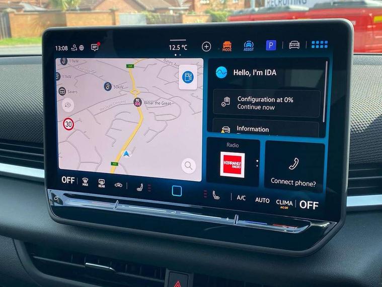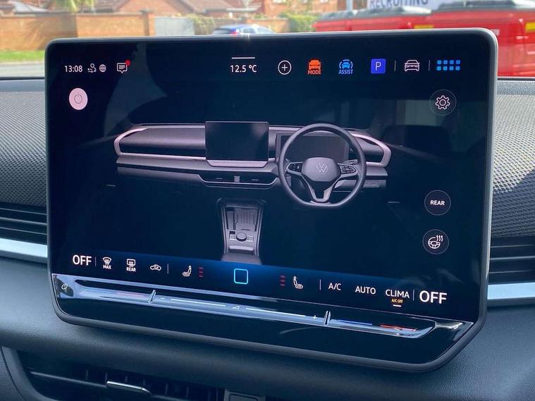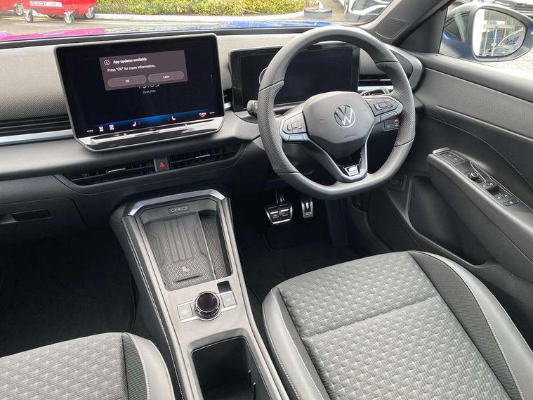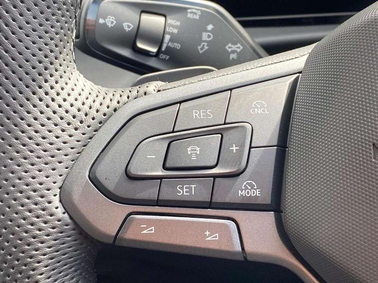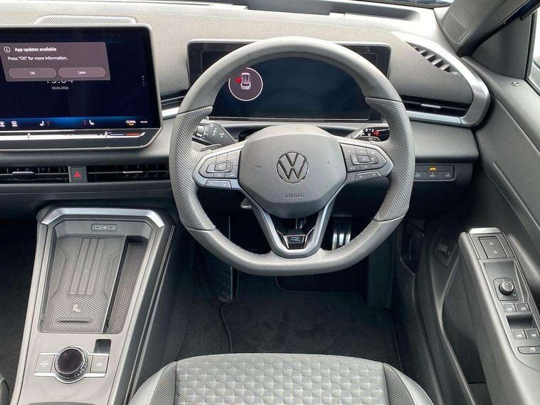 Adaptive cruise control, Driver attention monitor and driver alert system, Driving experience control with atmosphere selection, Dynamic road sign display, E-Sim card for online connectivity, Emergency call service, Front and rear parking sensors, Front cross traffic assist, Lane change system, Side assist, Rear traffic alert and Exit warning system, Lane keeping system Lane Assist, Multi color digital cockpit pro, Navigation system, Oncoming vehicle braking when turning including swerve support, PAS, Rear view camera, Voice activation spoken voice commands for telephone and navigation system, Warning sound and light for front seatbelts unfastened, Wireless app connect, Wireless Smartphone charger, Hybrid drive system MHEV, Sports suspension - Sport +15mm, Start/stop function with battery regeneration, 12.9" infotainment display, 2 USB C ports in front, 1 USB C charging socket on the rear center console, charging capacity up to 45W, DAB Digital radio, Diversity antenna for FM reception, Mobile phone interface with inductive charging feature, We Connect and We Connect Plus functionality, 3D LED rear combination lamps, Auto dimming interior rear view mirror, Automatic headlight control with LED separate daytime running lights with coming/leaving home function, Electrically folding, adjustable and heated door mirrors with front passenger exterior mirror lowering function, High Beam Assist, automatic sensing for switching between dipped and main beam, Illuminated door handle recesses, Illuminated Volkswagen logo and molding, LED 3rd brake light, R-Line design body coloured bumpers, Rain sensor, Rear fog light on one side and reversing lights on both sides, Rear privacy glass, Rear side wing doors, Rear wiper, Surround lighting with welcome light, Without headlamp washer system with washer fluid level indicator, 12V power socket in centre console, 3 rear head restraints, 3 seat bench in 2nd row, Air care climatronic 3 zone air conditioning system with rear air conditioning control panel, Aluminium front scuff plates with R Line logo, Artvelours cloth upholstery, Black roof lining, Brushed stainless steel pedals, Chrome plated radiator grille inserts, air vent surrounds and light switch surrounds, Door and side trim panel with leatherette insert, Driver/front passenger seat height adjustment, Front + rear carpet mats, Front centre armrest, Front comfort sports seats, Front footwell illumination, Heated front seats, Heated leather wrapped multi function steering wheel with paddle shift, Inserts of seats in fabric R-Line, Integrated head restraints on front seats, Interior ambient lighting with 30 colour options, ISOFIX anchors for child seats on outer rear bench seats and on front passanger seat compatible for i-Size, Luggage compartment floor adjustable in 2 heights, for flat cargo area, Non-folding front passenger seat backrest, Power-adjustable lumbar support in front seats, Single front passenger seat, Soul black dashboard, Sports steering wheel with touch control, Sunvisors with illuminated vanity mirrors, Unsplit rear seat bench, asymmetric folding backrest, with centre armrest, 3 point height adj front seatbelts + pretensioners, 3 point seatbelts in outer rear seats, ABS, Automatic emergency braking, Child locks on rear doors, Curtain and side airbags in front with centre airbag, Driver and front passenger airbag with front passenger airbag deactivation, Drivers seatbelt reminder, Electronic parking brake with auto hold function, Electronic stability control (ESC) and Electromechanical brake booster, First aid kit with warning triangle and safety vest, Front Assist with pedestrian and cyclist detection, Front disc brakes, Hill start assist, Rear disc brakes, Tyre pressure loss indicator, Alarm with interior protection, Keyless locking and starting system keyless access with safelock, Decorative inserts in matte pyrite silver, Decorative material set,