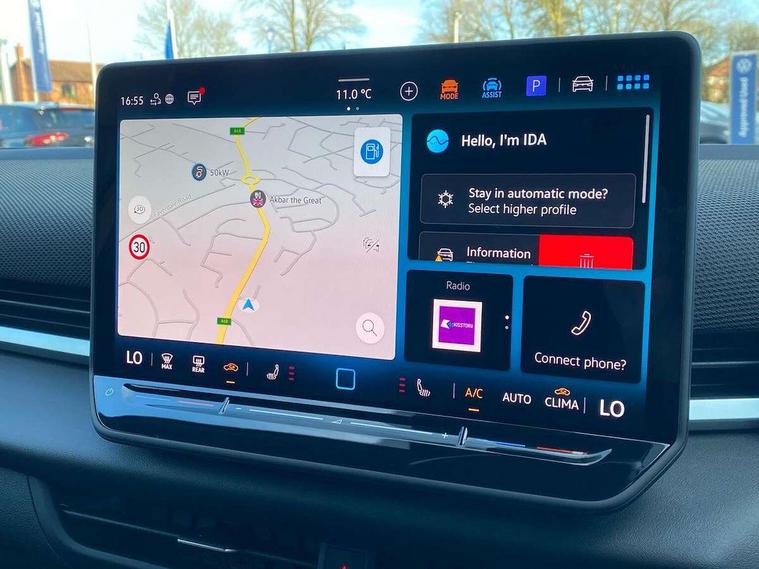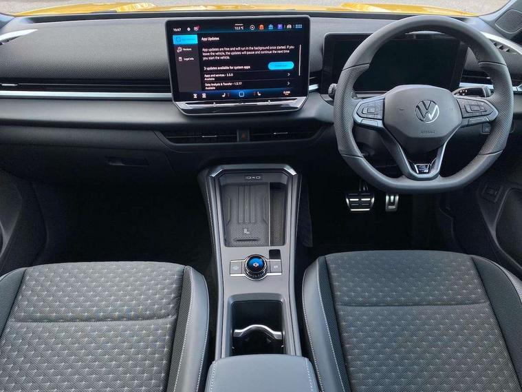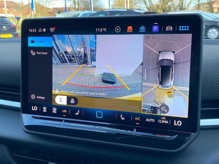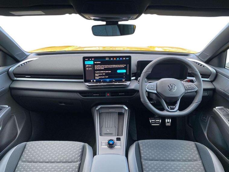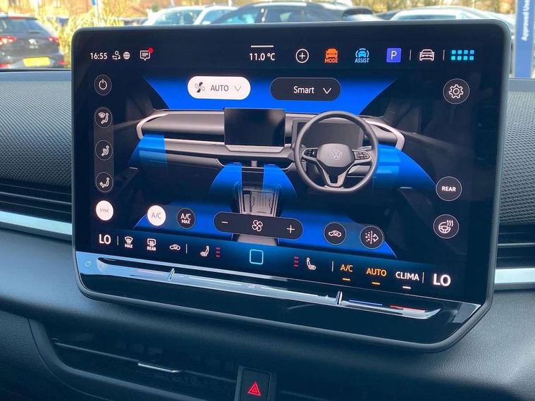 Adaptive cruise control, Driver attention monitor and driver alert system, Driving experience control with atmosphere selection, Dynamic road sign display, E-Sim card for online connectivity, Emergency call service, Front and rear parking sensors, Front cross traffic assist, Lane change system, Side assist, Rear traffic alert and Exit warning system, Lane keeping system Lane Assist, Multi color digital cockpit pro, Navigation system, Oncoming vehicle braking when turning including swerve support, PAS, Rear view camera, Voice activation spoken voice commands for telephone and navigation system, Warning sound and light for front seatbelts unfastened, Wireless app connect, Wireless Smartphone charger, Hybrid drive system MHEV, Sports suspension - Sport +15mm, Start/stop function with battery regeneration, 12.9" infotainment display, 2 USB C ports in front, 1 USB C charging socket on the rear center console, charging capacity up to 45W, DAB Digital radio, Diversity antenna for FM reception, Mobile phone interface with inductive charging feature, We Connect and We Connect Plus functionality, 3D LED rear combination lamps, Auto dimming interior rear view mirror, Automatic headlight control with LED separate daytime running lights with coming/leaving home function, Electrically folding, adjustable and heated door mirrors with front passenger exterior mirror lowering function, High Beam Assist, automatic sensing for switching between dipped and main beam, Illuminated door handle recesses, Illuminated Volkswagen logo and molding, LED 3rd brake light, R-Line design body coloured bumpers, Rain sensor, Rear fog light on one side and reversing lights on both sides, Rear privacy glass, Rear side wing doors, Rear wiper, Surround lighting with welcome light, Without headlamp washer system with washer fluid level indicator, 12V power socket in centre console, 3 rear head restraints, 3 seat bench in 2nd row, Air care climatronic 3 zone air conditioning system with rear air conditioning control panel, Aluminium front scuff plates with R Line logo, Artvelours cloth upholstery, Black roof lining, Brushed stainless steel pedals, Chrome plated radiator grille inserts, air vent surrounds and light switch surrounds, Door and side trim panel with leatherette insert, Driver/front passenger seat height adjustment, Front + rear carpet mats, Front centre armrest, Front comfort sports seats, Front footwell illumination, Heated front seats, Heated leather wrapped multi function steering wheel with paddle shift, Inserts of seats in fabric R-Line, Integrated head restraints on front seats, Interior ambient lighting with 30 colour options, ISOFIX anchors for child seats on outer rear bench seats and on front passanger seat compatible for i-Size, Luggage compartment floor adjustable in 2 heights, for flat cargo area, Non-folding front passenger seat backrest, Power-adjustable lumbar support in front seats, Single front passenger seat, Soul black dashboard, Sports steering wheel with touch control, Sunvisors with illuminated vanity mirrors, Unsplit rear seat bench, asymmetric folding backrest, with centre armrest, 3 point height adj front seatbelts + pretensioners, 3 point seatbelts in outer rear seats, ABS, Automatic emergency braking, Child locks on rear doors, Curtain and side airbags in front with centre airbag, Driver and front passenger airbag with front passenger airbag deactivation, Drivers seatbelt reminder, Electronic parking brake with auto hold function, Electronic stability control (ESC) and Electromechanical brake booster, First aid kit with warning triangle and safety vest, Front Assist with pedestrian and cyclist detection, Front disc brakes, Hill start assist, Rear disc brakes, Tyre pressure loss indicator, Alarm with interior protection, Keyless locking and starting system keyless access with safelock, Decorative inserts in matte pyrite silver, Decorative material set,