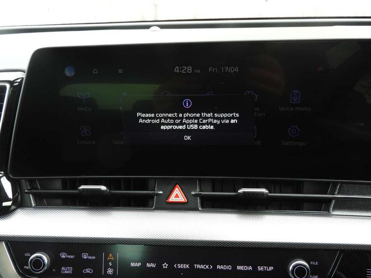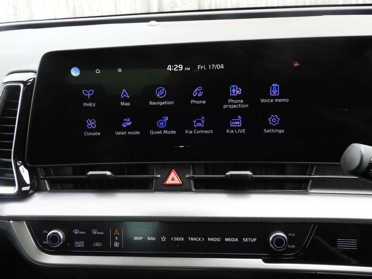 12.3" Driver display screen, 12.3" Touchscreen navigation system, Apple car play/Android Auto, Drive mode selector, Driver attention warning, E-call, Emergency stop signalling system, Forward collision avoidance assist (FCA) - city/pedestrian/cyclist/junction covering, Front and rear parking sensors, Highway Driving Assist (HDA), Intelligent speed limit assist, Kia Connect (UVO), Lane Following Assist (LFA), Lane keep assist, Low washer fluid warning, Motor driven power steering, Rear view monitor, Reversing camera system integrated into centre fascia screen, Smart cruise control with stop and go functionality, Speed limiter, Tailgate, Trip computer, Windscreen washer level indicator, Terrain mode select (Mud, Snow, Sand), 1x USB-C port in front, 2 rear USB-C ports, 6 speaker audio system, Bluetooth audio streaming, DAB Radio with MP3, Steering wheel mounted audio controls, USB C type charging ports on centre console, USB port for connection of a media device, All round electric windows with drivers and front passenger auto up/down function, Auto dimming rear view mirror, Automatic headlight control system, Automatic window defogger, Black bumpers with silver accents, Black radiator grille with silver surround, Black side sill and wheel arch body mouldings, Body colour door mirrors, Body colour exterior door handles, Electrically adjustable/heated/folding door mirrors with LED indicators, Heated rear window, High beam assist, Interior electrochromic mirror, LED daytime running lights, LED front fog lamps, LED headlamps (low and high beam - MFR type), LED High mounted stop light, LED rear combination lamp, Rain sensing wipers with aero blades, Rear fog lamp, Rear privacy glass, Rear roof spoiler, Rear side wing doors, Rear wiper, Satin finished beltline, Silver front and rear skid plate, Silver roof rack, Silver window surround, Tinted rear glass, Trailer stability assist, 12V power socket in front centre fascia and luggage compartment, 2nd row personal lamps, 3 seat bench in 2nd row, 3 x passenger assist grips, 40/20/40 split folding rear seat, All-round height adjustable headrests, Automatic air conditioning, Centre console storage box, Cloth/artificial leather upholstery, Cupholders in rear armrest, Door courtesy lamps, Drink holder at centre armrest, Driver and front passenger side sunvisors with illuminated vanity mirrors, Drivers seat power lumbar support, Electric height adjustable front seats, Front and rear door storage, Front cabin, rear & luggage compartment lights, Front seat and rear pockets, Gear shift indicator, Glovebox illumination, Heated front and outer rear seats, Heated steering wheel, ISOFIX Child seat top tethers and anchor fixings outer rear seats, Leather steering wheel, Luggage area load cover, Luggage area parcel shelf, Luggage board, Luggage compartment under floor storage, Luggage net with hooks, Manual adjust steering wheel, Metal paint interior door handles, Overhead console lamp, Paddle shift controls, Rear air conditioning, Rear cabin light, Rear coat hooks, Single front passenger seat, Ventilation ducts to rear compartment, Active front headrests, All round 3-point seatbelts, Anti-lock braking system (ABS), Dual front side airbags, Dual horn, Dynamic brake control, Electronic parking brake with auto hold function, Electronic stability control with downhill brake control, Front passenger airbag cut-off switch, Front seatbelt pretensioners + load limiters, Height adjustable front seatbelts, Hill start assist control (HAC), Impact sensing auto door unlocking, Multi collision brake assist, Rear airbags, Rear door child safety locks, Rear seat alert system, Seatbelt reminder warning, Traction control, Twin curtain airbags, Twin front airbags, Tyre pressure monitoring system, Vehicle stability management, Customisable automatic door locking, Customisable automatic door unlocking, Door deadlocks, Engine Start/Stop Button with Smart Entry System, Locking wheel nuts, Smart key with motion sensor, Speed sensitive auto door locking, Thatcham category 2 security alarm and immobiliser, Visible vehicle identification number, Aluminium pattern finish centre fascia and door garnish, 19" Alloy wheels, Tyre mobility kit,