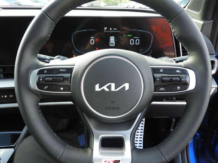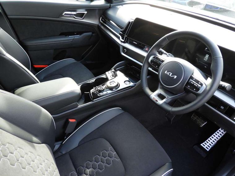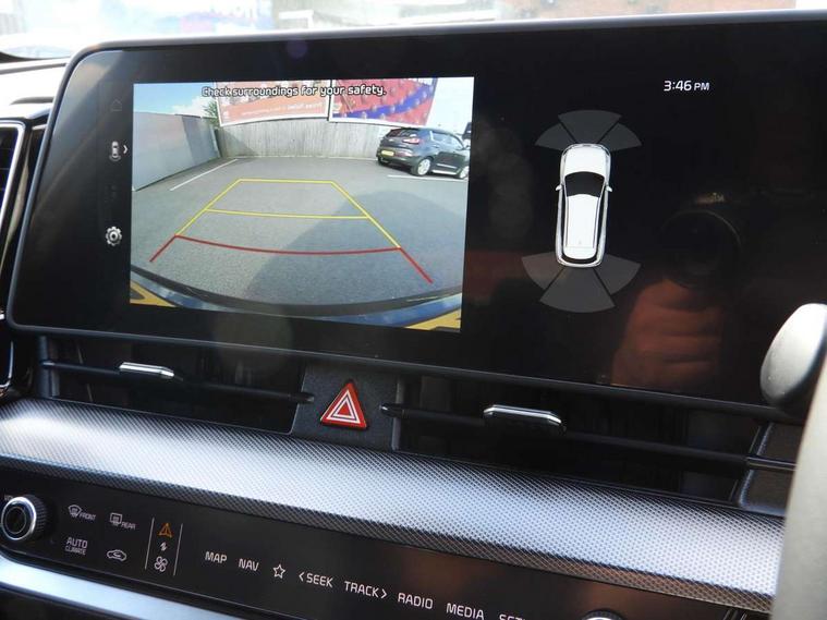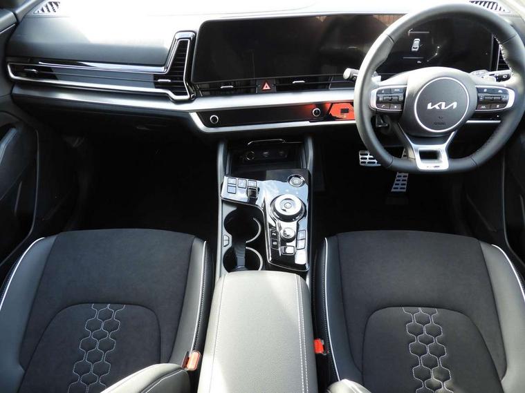 12.3" Touchscreen navigation system, 4.2" driver display screen, Apple car play/Android Auto, Drive mode selector, Driver attention warning, E-call, Emergency stop signalling system, Forward collision avoidance assist (FCA) - city/pedestrian/cyclist/junction covering, Front and rear parking sensors, Highway Driving Assist (HDA), Intelligent speed limit assist, Kia Connect (UVO), Lane Following Assist (LFA), Lane keep assist, Low washer fluid warning, Motor driven power steering, Rear view monitor, Reversing camera system integrated into centre fascia screen, Smart cruise control with stop and go functionality, Speed limiter, Tailgate, Trip computer, Windscreen washer level indicator, Terrain mode select (Mud, Snow, Sand), 1x USB-C port in front, 2 rear USB-C ports, 6 speaker audio system, Bluetooth audio streaming, DAB Radio with MP3, Steering wheel mounted audio controls, USB C type charging ports on centre console, USB port for connection of a media device, All round electric windows with drivers and front passenger auto up/down function, Auto dimming rear view mirror, Automatic headlight control system, Automatic window defogger, Black and body coloured bumpers, Body colour exterior door handles, Body colour radiator upper garnish and door garnish, Electrically adjustable/heated/folding door mirrors with LED indicators, Front and rear chrome skid plates, Gloss black door mirrors, Gloss black radiator grille, Gloss black side sill and wheel arch body mouldings, Glossy black roof rack, GT-Line exterior styling, Heated rear window, High beam assist, Interior electrochromic mirror, LED daytime running lights, LED front fog lamps, LED headlamps (low and high beam - MFR type), LED High mounted stop light, LED rear combination lamp, Rain sensing wipers with aero blades, Rear fog lamp, Rear privacy glass, Rear roof spoiler, Rear side wing doors, Rear wiper, Satin finished beltline, Silver window surround, Tinted rear glass, Trailer stability assist, 12V power socket in front centre fascia and luggage compartment, 2nd row personal lamps, 3 seat bench in 2nd row, 3 x passenger assist grips, 40/20/40 split folding rear seat, All-round height adjustable headrests, Alloy pedals, Automatic air conditioning, Black headlining, Centre console storage box, Cupholders in rear armrest, Door courtesy lamps, Drink holder at centre armrest, Driver and front passenger side sunvisors with illuminated vanity mirrors, Driver's seat manual height adjust, Drivers seat power lumbar support, Front and rear door storage, Front cabin, rear & luggage compartment lights, Front passenger's seat manual height adjustment, Front seat and rear pockets, Gear shift indicator, Glovebox illumination, GT-Line Interior Styling, Heated front seats, Heated steering wheel, ISOFIX Child seat top tethers and anchor fixings outer rear seats, Leather steering wheel, Luggage area load cover, Luggage area parcel shelf, Luggage board, Luggage compartment under floor storage, Luggage net with hooks, Manual adjust steering wheel, Metal paint interior door handles, Overhead console lamp, Paddle shift controls, Rear air conditioning, Rear cabin light, Rear coat hooks, Single front passenger seat, Suede leather upholstery, Ventilation ducts to rear compartment, Active front headrests, All round 3-point seatbelts, Anti-lock braking system (ABS), Dual front side airbags, Dual horn, Dynamic brake control, Electronic parking brake with auto hold function, Electronic stability control with downhill brake control, Front passenger airbag cut-off switch, Front seatbelt pretensioners + load limiters, Height adjustable front seatbelts, Hill start assist control (HAC), Impact sensing auto door unlocking, Multi collision brake assist, Rear airbags, Rear door child safety locks, Rear seat alert system, Seatbelt reminder warning, Traction control, Twin curtain airbags, Twin front airbags, Tyre pressure monitoring system, Vehicle stability management, Customisable automatic door locking, Customisable automatic door unlocking, Door deadlocks, Engine Start/Stop Button with Smart Entry System, Locking wheel nuts, Smart key with motion sensor, Speed sensitive auto door locking, Thatcham category 2 security alarm and immobiliser, Visible vehicle identification number, Aluminium pattern finish centre fascia and door garnish, 19" GT-Line alloy wheels, Tyre mobility kit,