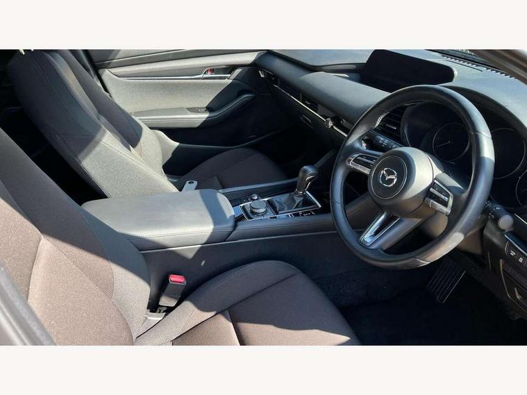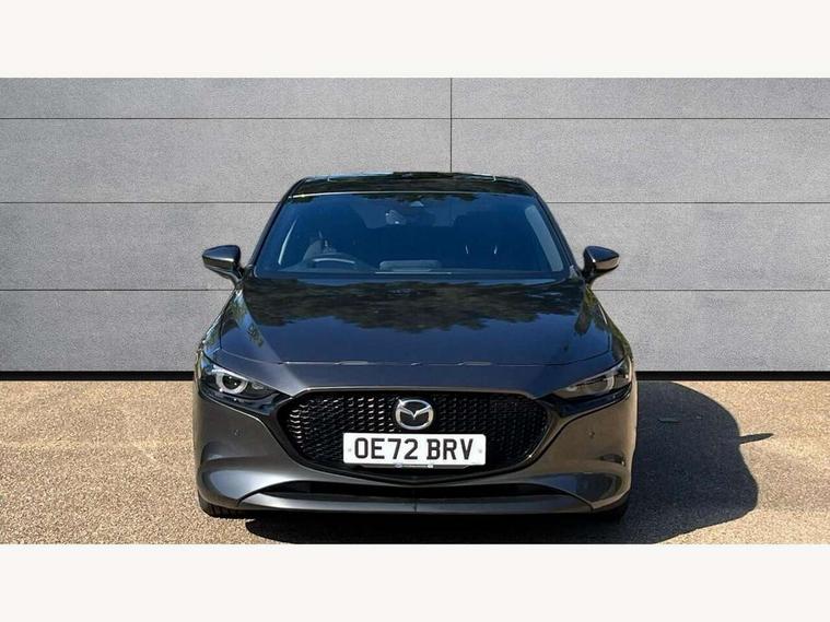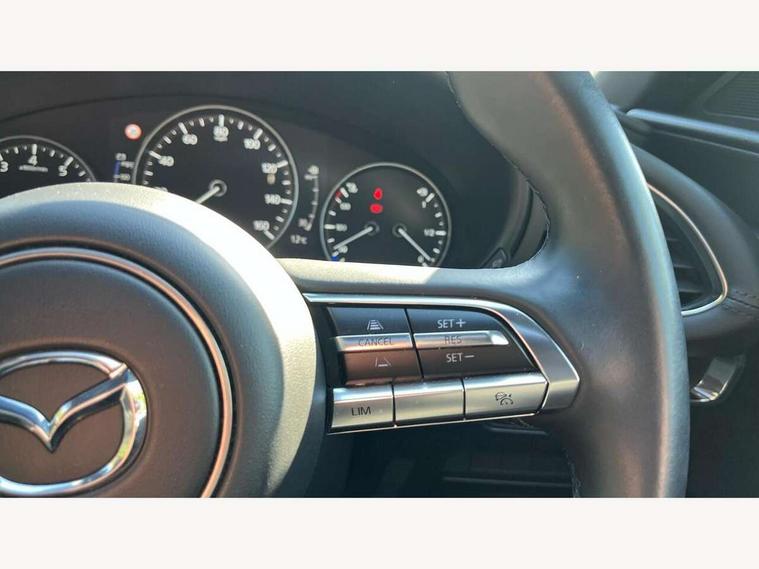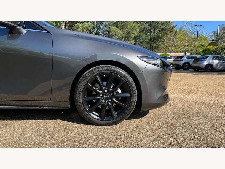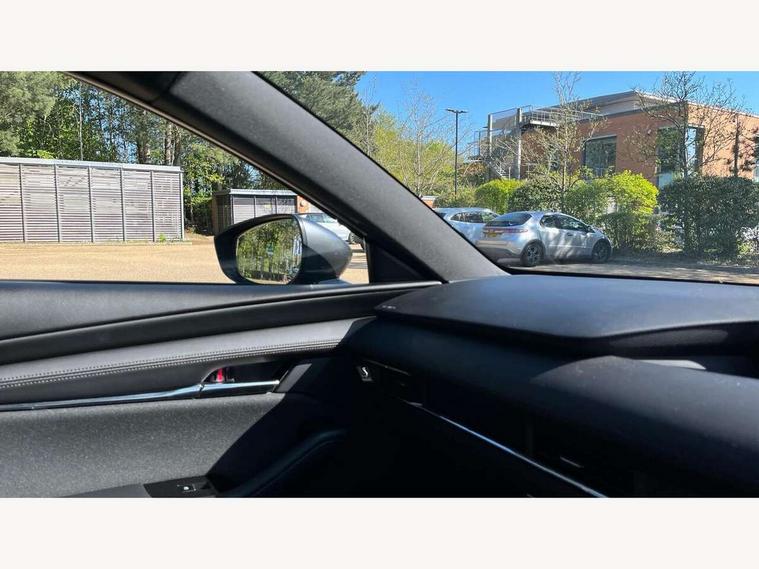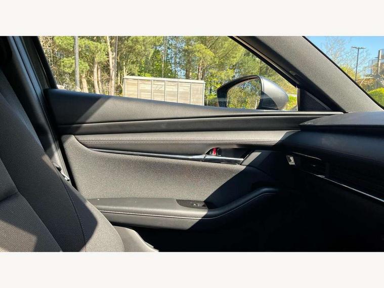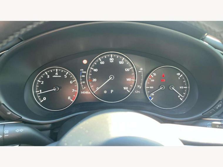 7" colour TFT display, 8.8" Colour centre touch screen display with Mazda Connect infotainment, Apple car play/Android Auto, Audio transfer from bluetooth devices, Blind spot monitoring with rear cross traffic alert, Colour active driving display inc Windscreen projected, Traffic Sign Recognition, turn-by- turn navigation and Mazda Radar Cruise Control information, Digital instrument cluster, Driver attention alert system, E-call with GPS, Emergency stop signalling system, Engine start/stop button, Front and rear parking sensor with audible and visual warning, Head up Display, Integrated bluetooth with steering wheel mounted controls, Intelligent speed assist, Lane keep assist system (LAS) with Lane departure warning system (LDWS), Mazda connected services, Mazda Navigation System with european mapping, Mazda Radar Cruise Control, Mobile App interface, Multimedia Commander, PAS, Reversing camera, Service indicator, Tailgate, Traffic sign recognition (TSR), Trip computer, i-stop, Mazda Multimedia System with AM / FM / DAB radio with 8 speakers, Adaptive LED Headlights, Auto dimming driver's door mirrors, B-pillar garnish in piano black, Body coloured, electrically adjustable, heated auto power folding door mirrors with integrated indicators, Coming/leaving home lighting function, Dark metallic finish signature wing, Dual chrome tailpipes tip, Dusk sensing headlights, Electric front/rear windows with one touch/auto up/down, Frameless auto dimming interior rear view mirror, Front body coloured bumper with black lower bezel, Front kodo turn signal, Gloss black finish front grille, Gloss black rear roof spoiler, LED indicator lights, LED third brake light, Power tilt and slide sunroof, Privacy glass with dark tinting on rear side windows and rear window, Rain sensing front wipers with adjustable sensitivity and speed, Rear colour coded bumper with gloss black lower moulding, Rear fog lights, Rear side wing doors, Signature LED daytime running lights, Signature LED rear combination lights, Speed adjustable rear wash wiper with intermittent wipe, 12v electrical power outlet, 3 seat bench in 2nd row, 60/40 split fold down rear seats, Black cloth door panel inserts, Chrome interior trim accents with steering wheel centre bezel, surround of engine start / stop button and glove box handle, Cloth upholstery, Dark roof headlining, ceiling and pillars, Driver, front passenger and two rear door pockets, Driver, Front passenger and two rear grab handles with coathooks, Driver/passenger sunvisors + vanity mirrors (drivers side with ticket holder), Drivers seat manual slide recline and height adjustment, Dual zone climate control air conditioning, Folding rear centre armrest with two cup holders, Front and rear courtesy lamps, Front armrest, Front centre storage with two cupholders, Front head restraints, Front passenger seatback pocket, Front passengers seat manual slide, recline and height adjustment, Gear shift drive selection switch sport mode, Heated front seats with 3 stage setting, Illuminated glovebox, Interior colouration dashboard and doorcards in black with dark stitching, ISOFIX child seat anchorage points attached on outer rear seats, Leather wrapped gear shift knob, Leather wrapped steering wheel, LED interior light, Luggage compartment light, Paddle shift controls, Power outlet in luggage compartment, Roof mounted sunglasses holder, Single front passenger seat, Three height adjustable rear head restraints, Tilt/height adjustable steering wheel, USB input, 3 point ELR front seatbelts with pretensioners, 3 rear 3 point seatbelts with ELR, Anti-lock braking system (ABS), Drivers knee airbag, DSC - Dynamic Stability Control, Dual stage driver and single stage passenger airbags, EBD - Electronic brakeforce distribution, Electronic parking brake with auto disengage function and auto hold function, Front and rear curtain airbags, Front passenger airbag cut-off switch, Front side airbags, Front smart city brake support, G-Vectoring control plus, Hill launch assist, Intelligent Traction Control system, Manual child lock in rear doors, Mild Hybrid system with regenerative braking, Seatbelt reminder for driver/front passenger and rear seats, Tyre pressure monitoring system (TPMS), Auto door lock when driving, Remote central locking + deadlocks, Smart keyless entry, Thatcham accredited alarm and immobiliser, 18" Black alloy wheels, Emergency tyre repair kit,