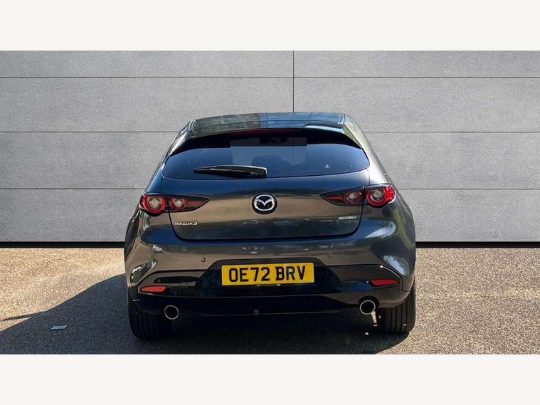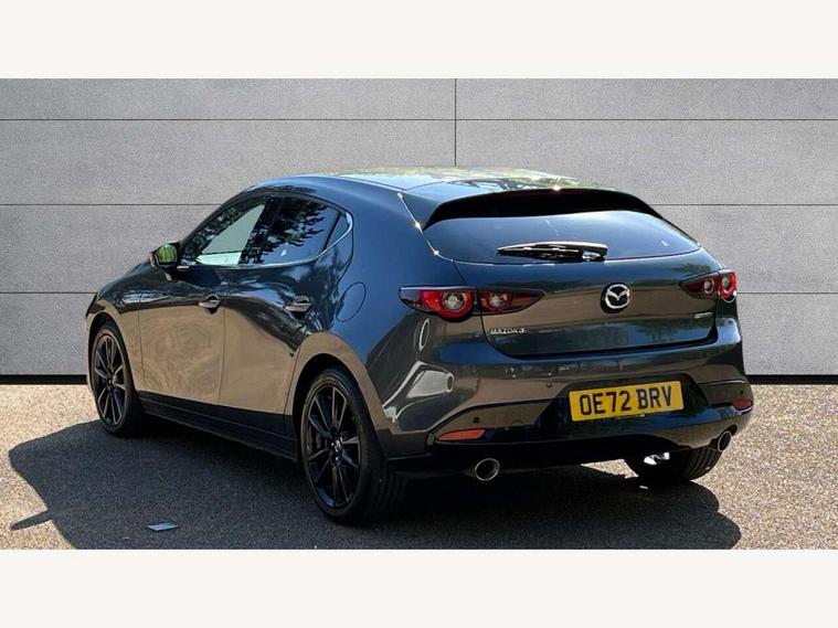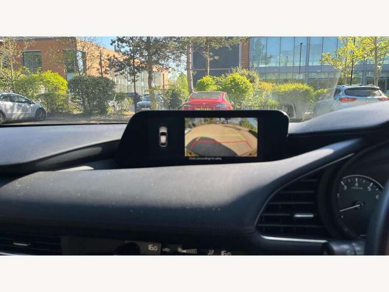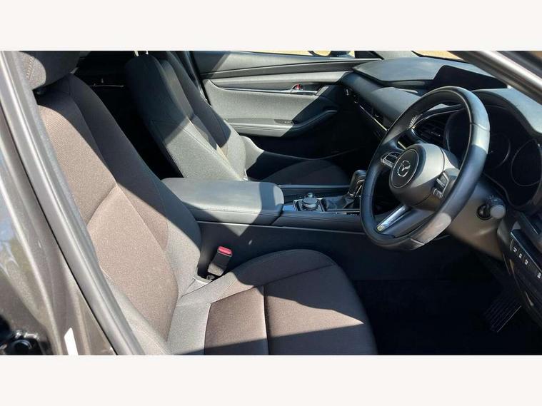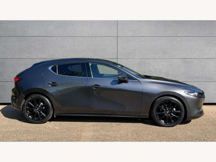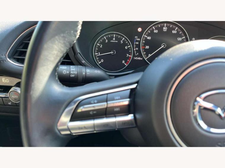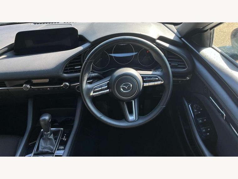 7" colour TFT display, 8.8" Colour centre touch screen display with Mazda Connect infotainment, Apple car play/Android Auto, Audio transfer from bluetooth devices, Blind spot monitoring with rear cross traffic alert, Colour active driving display inc Windscreen projected, Traffic Sign Recognition, turn-by- turn navigation and Mazda Radar Cruise Control information, Digital instrument cluster, Driver attention alert system, E-call with GPS, Emergency stop signalling system, Engine start/stop button, Front and rear parking sensor with audible and visual warning, Head up Display, Integrated bluetooth with steering wheel mounted controls, Intelligent speed assist, Lane keep assist system (LAS) with Lane departure warning system (LDWS), Mazda connected services, Mazda Navigation System with european mapping, Mazda Radar Cruise Control, Mobile App interface, Multimedia Commander, PAS, Reversing camera, Service indicator, Tailgate, Traffic sign recognition (TSR), Trip computer, i-stop, Mazda Multimedia System with AM / FM / DAB radio with 8 speakers, Adaptive LED Headlights, Auto dimming driver's door mirrors, B-pillar garnish in piano black, Body coloured, electrically adjustable, heated auto power folding door mirrors with integrated indicators, Coming/leaving home lighting function, Dark metallic finish signature wing, Dual chrome tailpipes tip, Dusk sensing headlights, Electric front/rear windows with one touch/auto up/down, Frameless auto dimming interior rear view mirror, Front body coloured bumper with black lower bezel, Front kodo turn signal, Gloss black finish front grille, Gloss black rear roof spoiler, LED indicator lights, LED third brake light, Power tilt and slide sunroof, Privacy glass with dark tinting on rear side windows and rear window, Rain sensing front wipers with adjustable sensitivity and speed, Rear colour coded bumper with gloss black lower moulding, Rear fog lights, Rear side wing doors, Signature LED daytime running lights, Signature LED rear combination lights, Speed adjustable rear wash wiper with intermittent wipe, 12v electrical power outlet, 3 seat bench in 2nd row, 60/40 split fold down rear seats, Black cloth door panel inserts, Chrome interior trim accents with steering wheel centre bezel, surround of engine start / stop button and glove box handle, Cloth upholstery, Dark roof headlining, ceiling and pillars, Driver, front passenger and two rear door pockets, Driver, Front passenger and two rear grab handles with coathooks, Driver/passenger sunvisors + vanity mirrors (drivers side with ticket holder), Drivers seat manual slide recline and height adjustment, Dual zone climate control air conditioning, Folding rear centre armrest with two cup holders, Front and rear courtesy lamps, Front armrest, Front centre storage with two cupholders, Front head restraints, Front passenger seatback pocket, Front passengers seat manual slide, recline and height adjustment, Gear shift drive selection switch sport mode, Heated front seats with 3 stage setting, Illuminated glovebox, Interior colouration dashboard and doorcards in black with dark stitching, ISOFIX child seat anchorage points attached on outer rear seats, Leather wrapped gear shift knob, Leather wrapped steering wheel, LED interior light, Luggage compartment light, Paddle shift controls, Power outlet in luggage compartment, Roof mounted sunglasses holder, Single front passenger seat, Three height adjustable rear head restraints, Tilt/height adjustable steering wheel, USB input, 3 point ELR front seatbelts with pretensioners, 3 rear 3 point seatbelts with ELR, Anti-lock braking system (ABS), Drivers knee airbag, DSC - Dynamic Stability Control, Dual stage driver and single stage passenger airbags, EBD - Electronic brakeforce distribution, Electronic parking brake with auto disengage function and auto hold function, Front and rear curtain airbags, Front passenger airbag cut-off switch, Front side airbags, Front smart city brake support, G-Vectoring control plus, Hill launch assist, Intelligent Traction Control system, Manual child lock in rear doors, Mild Hybrid system with regenerative braking, Seatbelt reminder for driver/front passenger and rear seats, Tyre pressure monitoring system (TPMS), Auto door lock when driving, Remote central locking + deadlocks, Smart keyless entry, Thatcham accredited alarm and immobiliser, 18" Black alloy wheels, Emergency tyre repair kit,