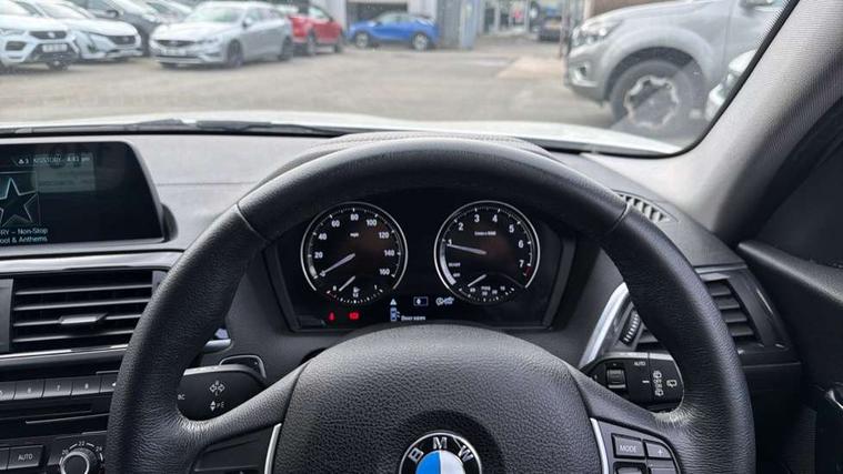 Automatic start/stop system, BMW Online services, BMW remote services, BMW Teleservices, Brake force display, Brake pad wear indicator in front and rear, Check Control warning system for monitoring of lights and door/luggage compartment open warning, Eco pro mode, Instrument cluster with speedometer with miles per hour read out, tachometer and fuel gauge, Lights on warning by audio warning signal when ignition is switched off, Oil temperature display via on board computer in instrument cluster, On board computer - average speed+fuel consumption, service interval, clock/date, odometer/trip meter, outside temperature display and ice warning, On board diagnostics, Optimum shift indicator, Personal Profile, Real time traffic information, Servotronic PAS, Speed limiter, Battery age recognition function, Drive Performance Control, BMW professional radio with CD player, DAB Digital radio, Body colour door handles, Body colour front and rear bumpers, Body colour roof mouldings, Clear lenses direction indicator lights, Dark chrome exhaust tailpipe, Daytime driving lights, Direction indicator side lights in exterior mirrors, Dynamic brake lights, Electrically adjustable heated door mirrors and washer jets, Follow me home headlights, Front air inlet with high gloss black finish, Front and rear bumper system with replaceable deformation elements, Front and rear electric windows with open and close fingertip control, anti trap facility and comfort closing, Green tinted heat protection glazing, Headlight beam throw control, Heated windscreen washer jets, High gloss black extra wide kidney grille with black vertical slats, High level third brake light, Lightweight engineering, Nearside reverse light in rear light cluster, Offside rear fog lights, Rain sensor including auto headlights activation, Rear bumper with high gloss black finish, Rear window aerial, Rear window wiper, Shark fin antenna, Visible VIN plate, Welcome lighting, 12V power socket in centre console, 12V power socket in passenger footwell, 60/40 split folding rear seat, Anthracite Velour front and rear floor mats, Conditioned based service, Four grab handles integrated in roof lining, Front and rear side armrest integrated into door trim, Front door sill finishers in BMW designation, Front folding sliding armrest with storage compartment, Front head restraints, Front sports seats with electric side bolster adjustment, Front storage compartment in centre console and in door trim, Front/rear courtesy lights with soft on/off dimming, Glove box handle with chrome surround, Glovebox, Interior light in front centre interior mirrors and rear centre auto interior light activation when door is opened when ignition switched off, Isofix child seat for two outer rear seats, Leather gear knob and handbrake grip, Luggage compartment access via BMW roundel, Manually adjustable steering column, Multi-function controls for steering wheel, Rear folding head restraints, Two cupholders with sliding cover and inlay mat, Two sills lashing eyes in the luggage compartment, 3 point seatbelts on all seats, front pyrotechnic belt tensioners, stopper and belt force limiters, rear coded belt buckles, Active differential brake (ADB), electronic differential lock in DSC-OFF mode, Airbags - Front driver and passenger, front and rear head, front side, curtain head protection, Anti lock braking system (ABS) with brake assist, Automatic Stability Control (ASC), Battery safety cut-off, BMW emergency call, Brake drying, Brake energy regeneration, Braking readiness, Cornering brake control (CBC), Crash sensor activating central locking release, hazard warning lights, Driver and front passenger seat belt security check, DSC+, Dynamic brake control, Dynamic Traction Control - DTC, Front passenger manual airbag deactivation, Front ventilated brake disc, Hill start assist, Rear brake discs, Rear child proof door locks, Side impact protection, Twin horns, Tyre pressure monitoring system, Warning triangle and first aid kit, Automatic drive away locking facility, Central locking switch for all doors, fuel filler cap and luggage compartment, Locking wheel bolts, Remote central locking with two Integrate key, one button for opening and closing all lock, open and close window, button for open luggage compartment, Remote control integrated key with red inset, Start/stop button with comfort go keyless engine start and auto start stop deactivation button, Thatcham Cat.1 alarm and immobiliser, Reduced rolling resistance tyres, Run flat tyres,