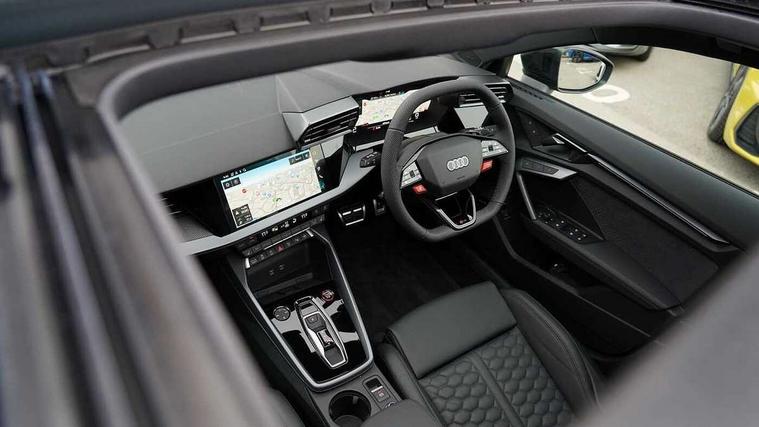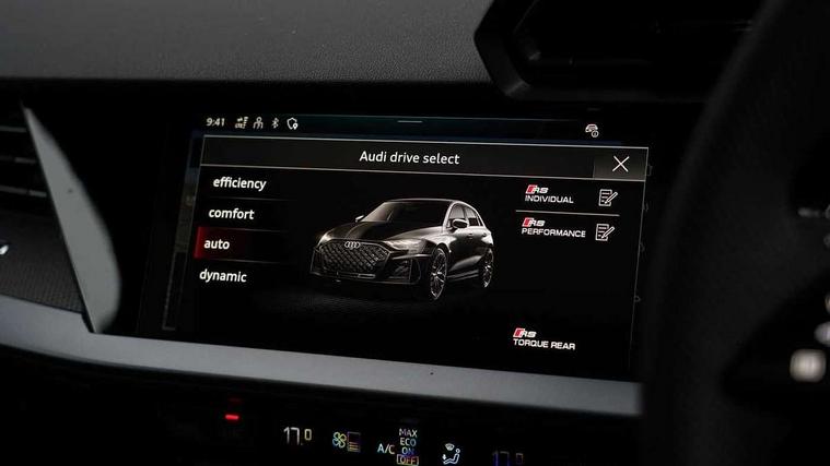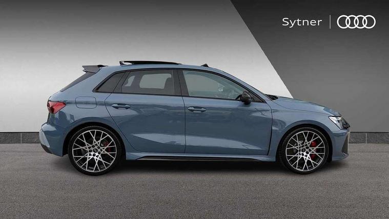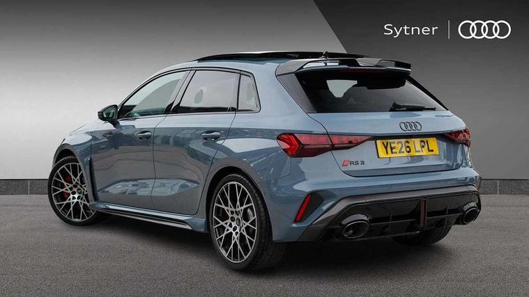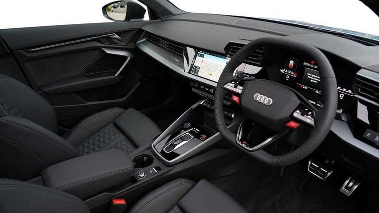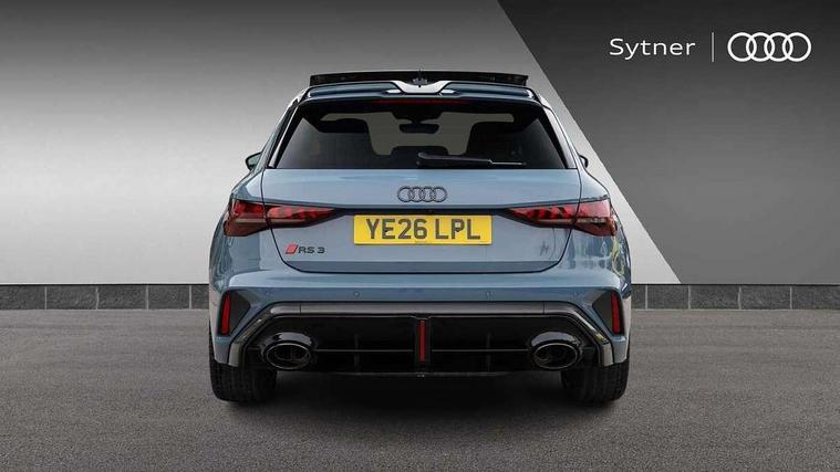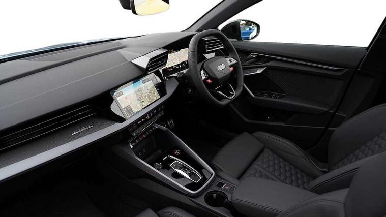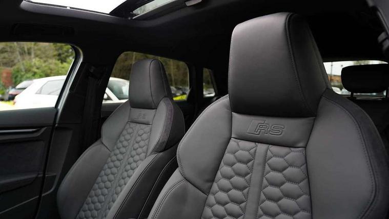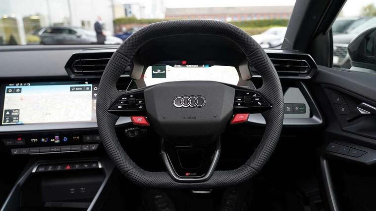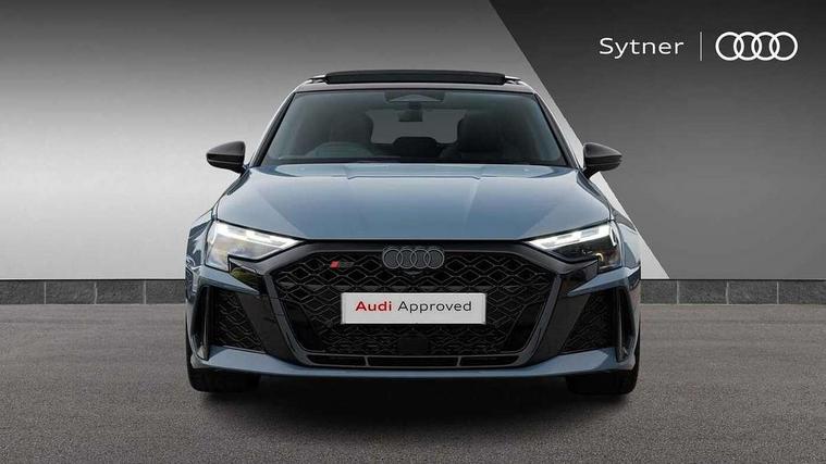 Adjustable speed limiter, Audi drive select comfort, auto, dynamic and efficiency, Audi virtual cockpit plus with RS specific design and 12.3" display with additional graphic display options, Automatic start/stop system with recuperation, Bluetooth interface, Camera based traffic sign recognition, Collision avoidance assistant, Driver attention and fatigue detection, e-Call (emergency call), MMI Navigation Plus with high resolution 10.1" colour touch screen display, Progressive steering, RS specific driving modes - RS Individual, RS Performance and RS Torque rear, Service indicator, Smartphone interface with app store includes wireless Apple carplay, Android auto and Amazon alexa integration, Trip computer, Voice control system with natural language interaction, Adaptive suspension, Increase of top speed to 174 mph, Quattro permanent four wheel drive, Audi Phonebox light with wireless charging, DAB Digital radio, USB ports with charging function in the rear, Audi beam LED projection of RS logo on ground as you exit, Auto dimming frameless rear view mirror, Carbon door mirror housings, Electrically adjustable/heated/folding/auto dimming door mirrors with integrated LED indications + kerb view function for passenger side, Engine compartment cover with carbon trim, Exterior model badging, Front electric windows, Heat insulating glass windscreen, LED 3rd brake light, Light and rain sensors, Privacy glass - dark tinted rear window, rear door and side windows, Rear electric windows, Rear side wing doors, Rear wiper, Roof edge spoiler in carbon, RS sport exhaust system - dual branch with flap control and gloss black oval tailpipe trims, 12V socket and storage compartment in front centre console, 3 seat bench in 2nd row, 3 Spoke flat top and bottomed black leather multi function steering and gear shift paddles, 3-zone deluxe automatic air conditioning, 40/20/40 split folding rear seat bench, Black cloth headlining, Black front and rear floor mats, Front and rear headrests, Front centre armrest, Front door sill trims with RS 3 logo, Heated front seats, Height and reach adjustable steering wheel, Manual boot compartment lid, Rear centre armrest with cupholder, Seat side bolsters, Single front passenger seat, Stainless steel pedals and front footrest in black, Vanadium look - Interior door handles, Door trim, power latching, Air vents, window controls, mirror adjust, rear door lock, Selector lever in centre console, Black Styling plus package - RS3, Extended ambient lighting package Pro with Multi-coloured contour lighting of instrument panel - RS3, RS exterior features pack in carbon and gloss black - RS3, Storage package - RS3 Sportback, 3x3 point rear seat belts, Driver and front passenger airbag with passenger airbag deactivation, Electronic Stabilisation Control (ESC) including ABS, ASR and EDL, First aid kit with warning triangle and 2 safety vests, Hill hold assist, Pre-sense front with pedestrian and cyclist detection, Seatbelt monitoring, Tyre pressure loss indicator, Anti theft alarm, Anti-theft wheel bolts, Electronically operated child locks, Immobiliser, Black dashboard, Inlays in carbon atlas structure, Tyre repair kit,