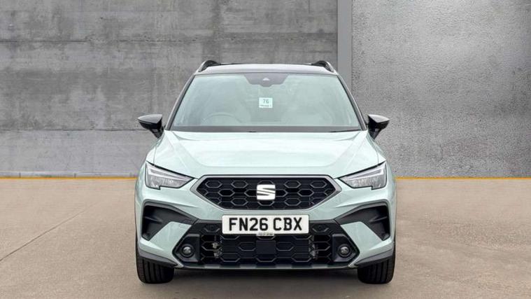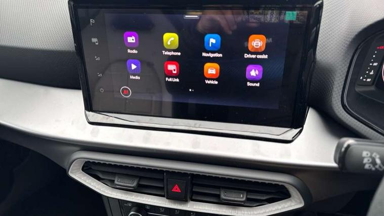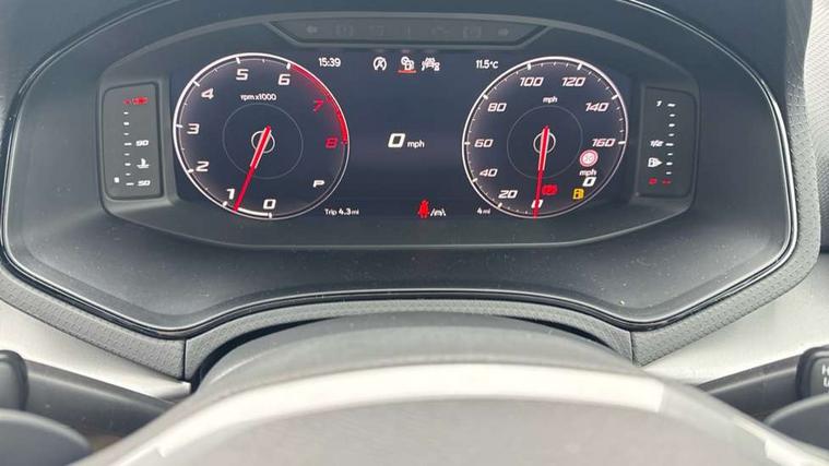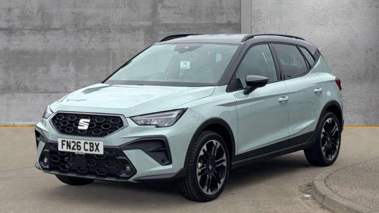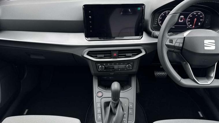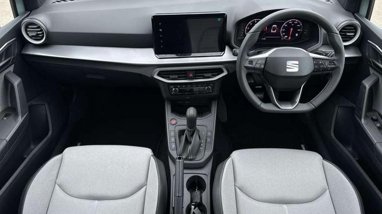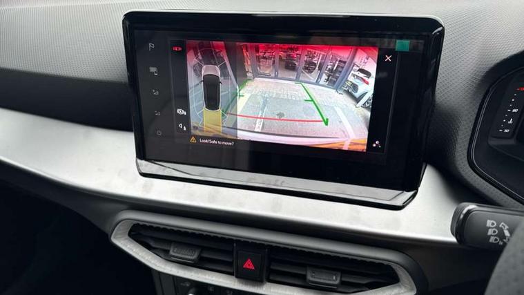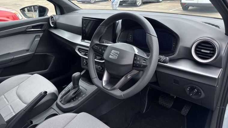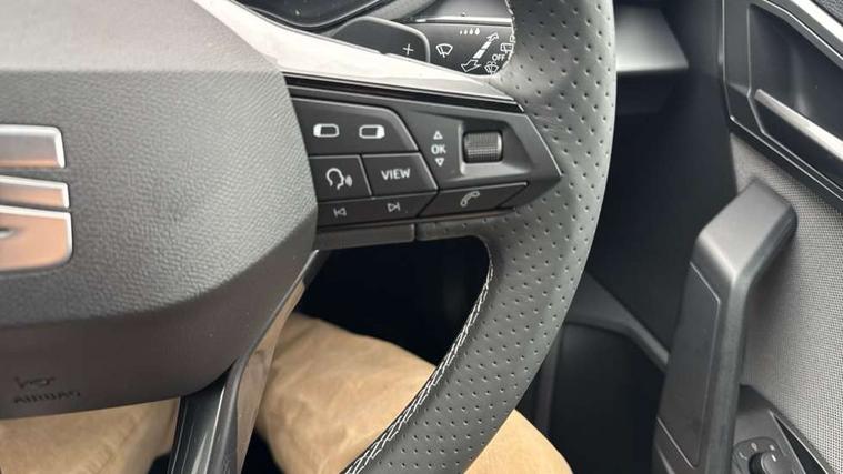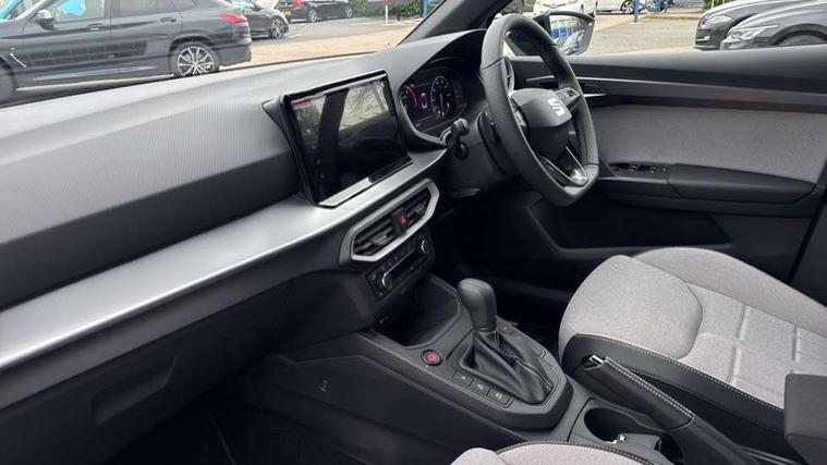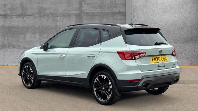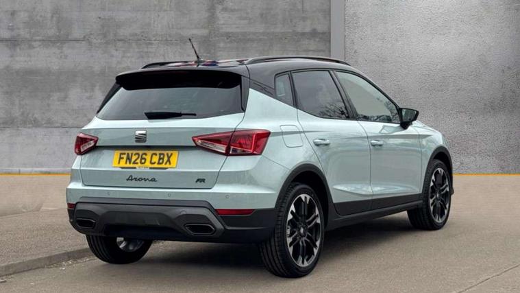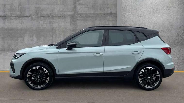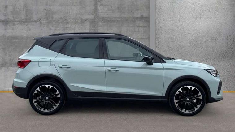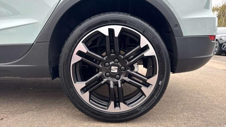 'Lights On' Reminder warning buzzer, 10" Digital cockpit, Digital clock, E-call, Electric speed sensitive power steering, Front parking sensors, Full link smartphone integration with mirror link, wireless apple carplay, Google android auto + USB Type C cable for apple and android devices, Low fuel warning light, Outside temperature display, Rear view camera, RPM counter, SEAT Drive profile - Four different models normal-sport-eco-individual, steering response, throttle response and gear shifts mode, Trip computer, Wireless phone charger, 9.2" colour touchscreen with navigation system, voice control and USB port (type c), Bluetooth interface for hands free and audio streaming, DAB digital radio and AM/FM radio, Steering wheel mounted audio controls, Anti theft roof antenna, Auto dimming interior rear view mirror, Automatic activation of hazard warning lights, Black roof rails and window surrounds, Body coloured bumpers, Body coloured door handle inserts, Dark tinted rear windows, Electric front/rear windows, Electrically adjustable, heated and folding door mirrors, Front fog lights with cornering function and rear fog light, LED 3rd brake light, LED daytime running lights, LED rear tail lights and licence plate lights, Protective side mouldings, Rain sensing wipers, Rear side wing doors, Rear spoiler, Rear window wash/wipe, Roof colour door mirrors, SEAT design Full LED automatic headlamps with dynamic headlight range control, coming and leaving home feature, Twin exhaust pipe styling with double flow exhaust pipe, Visible VIN plate, 2 cupholders, 3 seat bench in 2nd row, 60/40 split folding rear seat, Aircare filter, Black headliner, Cloth upholstery with embossed textile/Sport bucket seats, Double boot floor, Driver sunvisor with covered mirror + card holder, Dual zone climate control, Front courtesy light with front reading lights, Front seat back storage pockets, Heated front seats, Height adjustable front seats, Height/reach adjustable steering column, Illuminated air vent surrounds, Interior ambient lighting, Interior light in footwell, central console and door panel, ISOFIX points in outer rear seats with top tether anchorage points, Passenger sunvisor with vanity mirror, Perforated flat bottomed leather steering wheel/gear knob/handbrake with red stitching and FR logo, Red coloured interior air vents, Single front passenger seat, Steering wheel mounted gearshift paddles, Two front and three rear height adjustable headrests, Interior chrome pack - Arona, Safe and driving pack (S) - Arona, Storage pack - Arona, 3 point seatbelts on all rear seats, ABS, Active front headrests, Child locks on rear doors, Driver and front passenger airbags with front passenger airbag de activation, front side and curtain airbags, Emergency Brake Assist (EBA) and front assist, Front and rear seatbelt reminder, Hill hold control, Multi-Collision braking, Tiredness recognition system, Traction control, Tyre pressure monitoring system, Anti-theft alarm (perimeter and interior monitoring) with backup horn and towing protection, Central locking with radio remote control, interior controls and SAFELOCK, Deadlock, Electronic engine immobiliser, KESSY Keyless entry and go, Locking wheel bolts, 18" Performance machined alloy wheels in black,