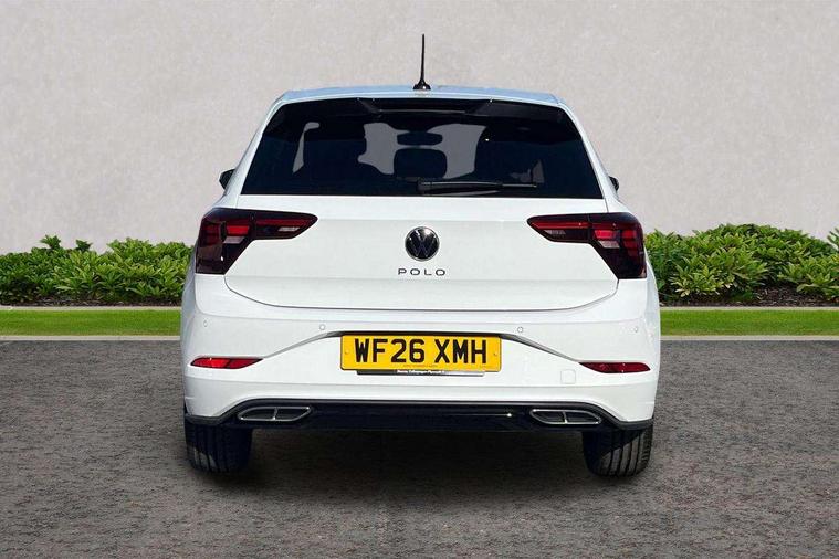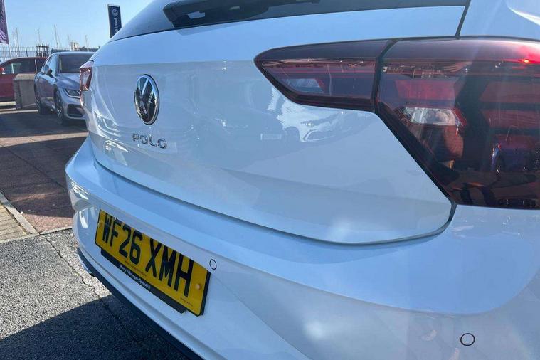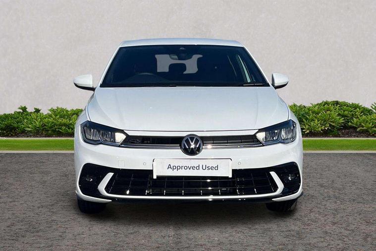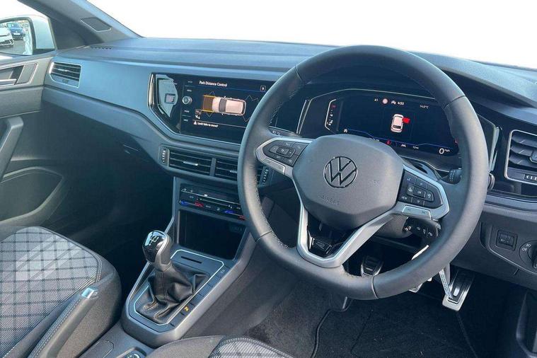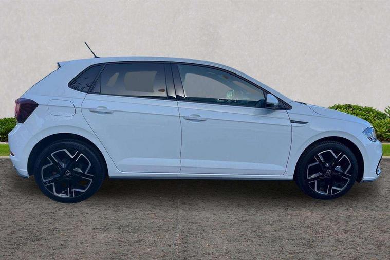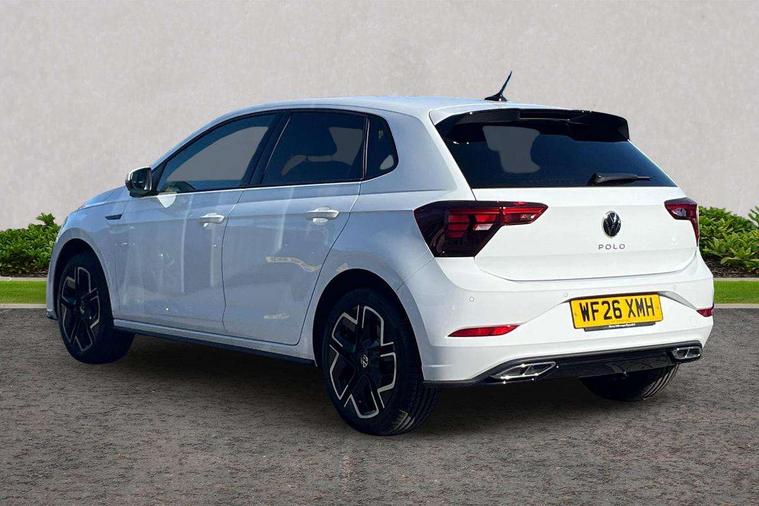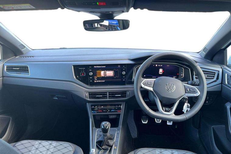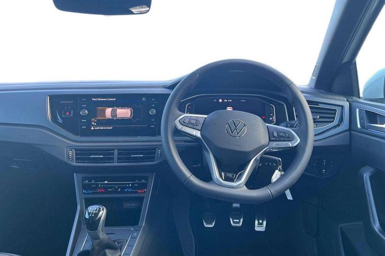 Bluetooth mobile phone interface, Digital Cockpit Pro with 10.25" Display, Driver attention monitor driver alert system, Dynamic road sign display, Emergency call service, Mobile phone preparation with inductive charging function, Multifunction front facing camera for distance control, Park distance control, Power assisted speed sensitive steering, Predictive adaptive cruise control, Preparation for We connect and We connect plus, Speedo and rev counter, electronic odometer, trip, service interval display and exterior temperature gauge, Standard rear axle, Travel Assist - Lane keeping system and traffic jam assist, Travel assist including emergency assist, Trip computer, Warning signal and warning light for front and rear seatbelts not fastened, Washer fluid level indicator, Wireless app connect, Front wheel drive, Rear shock absorpion, Start-stop system with battery regeneration (recuperation - energy recovery during braking), DAB Digital radio, Diversity antenna for FM reception, Body colour bumpers, Body colour door handles, Electric front windows, Front door sill protectors with R-Line logo, Front fog lights with static cornering function, Front scuff plates with R-Line logo, Heat insulating and laminated safety glass windshield, LED 3rd brake light, Power folding adjustable/heated exterior mirrors and front passenger exterior mirror lowering function, Rear electric windows, Rear fog light, Rear side wing doors, Rear windscreen washer and wiper with interval delay, 12V power socket in centre console, 2 USB-C ports in the front, 2 USB-C charging sockets on the center console in the rear, 3 rear head restraints, 60/40 split folding rear seat and rear seat bench not split, Air care climatronic air conditoning system with active combination filter and 2-zone temperature control, Black roof lining, Carpet mats, front and rear, Chrome plated mirror adjustment switch, electric window button and front vents on driver and passenger side, Door and side trim panel, Driver and front passenger seat height adjustment, Driver/passenger sunvisors with illuminated vanity mirrors, Front centre armrest, Front footwell illumination, Front seat backrest storage pockets, Front sports comfort seats, Handbrake lever handle in leather, Headliner in recycled material, Interior ambient lighting and surround lighting, Isofix child seat preparation easy-fit (for two outer rear seats, and front passenger seat) compatible with I-size, Karoso artvelours cloth upholstery, Leather trimmed gear knob, LED interior light with switch off delay and dimmer, 2 reading lights front and rear, Luggage compartment floor, Luggage compartment lighting, Lumbar adjustment for front seats, Removable luggage compartment cover, Single front passenger seat, Stainless steel pedals, Standard pedal cluster, Three spoke leather wrapped multifunction steering wheel, Carpet mats pack - Polo, Light and vision pack - Polo, 3 point height adj front seatbelts + pretensioners, 3 point seat belt for centre rear seat, 3 point seatbelts, outer rear with ECE lable, ABS, Driver and front passenger airbag with front passenger airbag deactivation, Drivers and front passengers safety optimised head restraints, ESC (Electronic stability control) + EDL (Electronic Differntial lock) and ASR (Traction control), Extended and predictive pedestrian/ cyclist protection, Front assist with autonomous emergency braking (for Adaptive Cruise Control ACC up to 130 mph), Front curtain and side airbags with center airbag, Front/rear disc brakes, Hill start assist, Manual child lock in rear doors, Single tone horn, Tyre pressure loss indicator, Alarm with interior protection, Anti-theft alarm system with interior monitoring, backup horn, and towing protection, Anti-theft wheel bolts, Electronic engine immobiliser, Dark grey anodised matt decorative inserts in dash and front door panels,