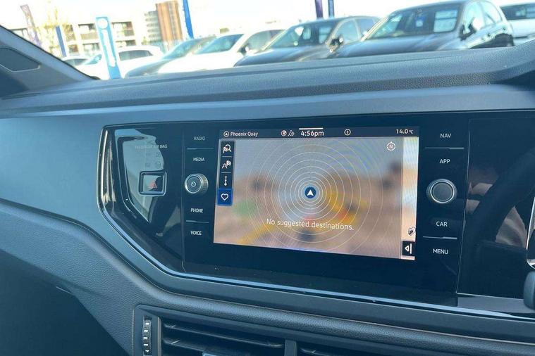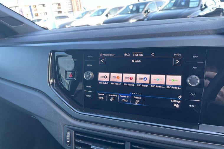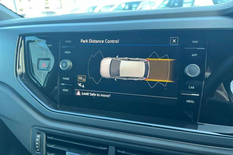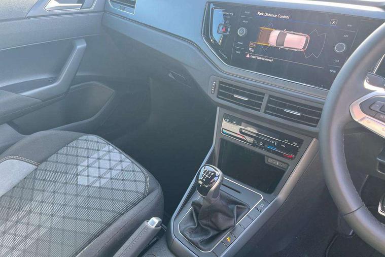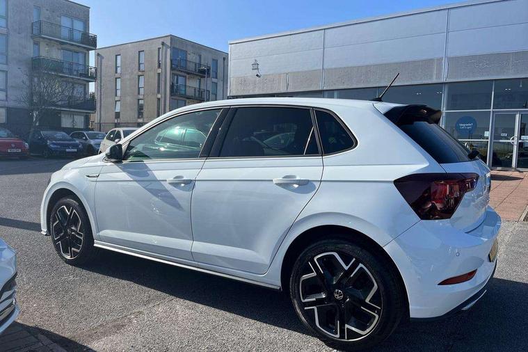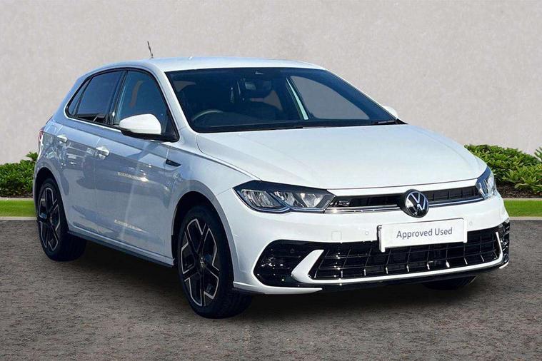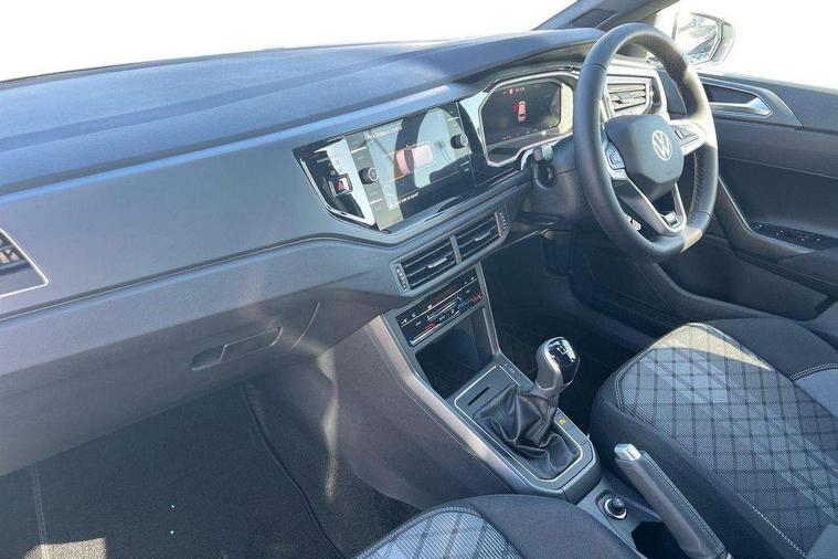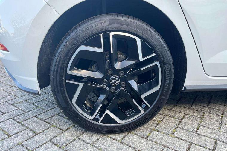 Bluetooth mobile phone interface, Digital Cockpit Pro with 10.25" Display, Driver attention monitor driver alert system, Dynamic road sign display, Emergency call service, Mobile phone preparation with inductive charging function, Multifunction front facing camera for distance control, Park distance control, Power assisted speed sensitive steering, Predictive adaptive cruise control, Preparation for We connect and We connect plus, Speedo and rev counter, electronic odometer, trip, service interval display and exterior temperature gauge, Standard rear axle, Travel Assist - Lane keeping system and traffic jam assist, Travel assist including emergency assist, Trip computer, Warning signal and warning light for front and rear seatbelts not fastened, Washer fluid level indicator, Wireless app connect, Front wheel drive, Rear shock absorpion, Start-stop system with battery regeneration (recuperation - energy recovery during braking), DAB Digital radio, Diversity antenna for FM reception, Body colour bumpers, Body colour door handles, Electric front windows, Front door sill protectors with R-Line logo, Front fog lights with static cornering function, Front scuff plates with R-Line logo, Heat insulating and laminated safety glass windshield, LED 3rd brake light, Power folding adjustable/heated exterior mirrors and front passenger exterior mirror lowering function, Rear electric windows, Rear fog light, Rear side wing doors, Rear windscreen washer and wiper with interval delay, 12V power socket in centre console, 2 USB-C ports in the front, 2 USB-C charging sockets on the center console in the rear, 3 rear head restraints, 60/40 split folding rear seat and rear seat bench not split, Air care climatronic air conditoning system with active combination filter and 2-zone temperature control, Black roof lining, Carpet mats, front and rear, Chrome plated mirror adjustment switch, electric window button and front vents on driver and passenger side, Door and side trim panel, Driver and front passenger seat height adjustment, Driver/passenger sunvisors with illuminated vanity mirrors, Front centre armrest, Front footwell illumination, Front seat backrest storage pockets, Front sports comfort seats, Handbrake lever handle in leather, Headliner in recycled material, Interior ambient lighting and surround lighting, Isofix child seat preparation easy-fit (for two outer rear seats, and front passenger seat) compatible with I-size, Karoso artvelours cloth upholstery, Leather trimmed gear knob, LED interior light with switch off delay and dimmer, 2 reading lights front and rear, Luggage compartment floor, Luggage compartment lighting, Lumbar adjustment for front seats, Removable luggage compartment cover, Single front passenger seat, Stainless steel pedals, Standard pedal cluster, Three spoke leather wrapped multifunction steering wheel, Carpet mats pack - Polo, Light and vision pack - Polo, 3 point height adj front seatbelts + pretensioners, 3 point seat belt for centre rear seat, 3 point seatbelts, outer rear with ECE lable, ABS, Driver and front passenger airbag with front passenger airbag deactivation, Drivers and front passengers safety optimised head restraints, ESC (Electronic stability control) + EDL (Electronic Differntial lock) and ASR (Traction control), Extended and predictive pedestrian/ cyclist protection, Front assist with autonomous emergency braking (for Adaptive Cruise Control ACC up to 130 mph), Front curtain and side airbags with center airbag, Front/rear disc brakes, Hill start assist, Manual child lock in rear doors, Single tone horn, Tyre pressure loss indicator, Alarm with interior protection, Anti-theft alarm system with interior monitoring, backup horn, and towing protection, Anti-theft wheel bolts, Electronic engine immobiliser, Dark grey anodised matt decorative inserts in dash and front door panels,