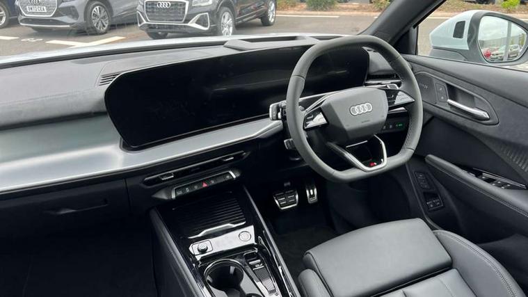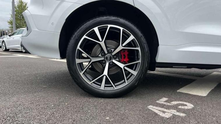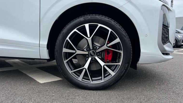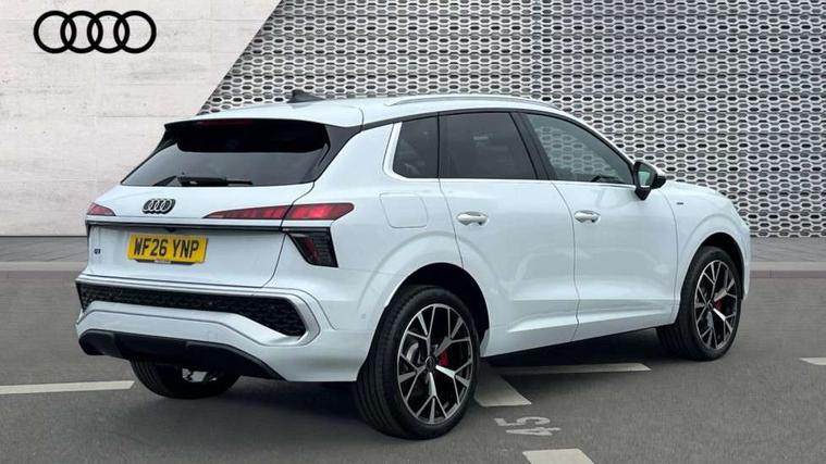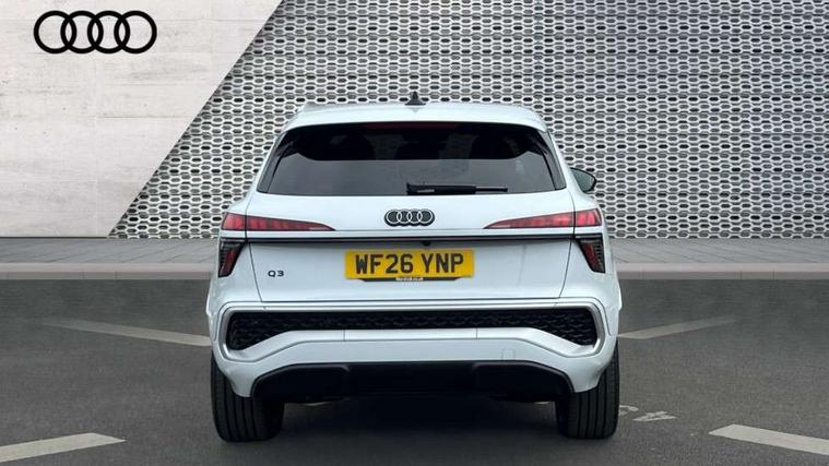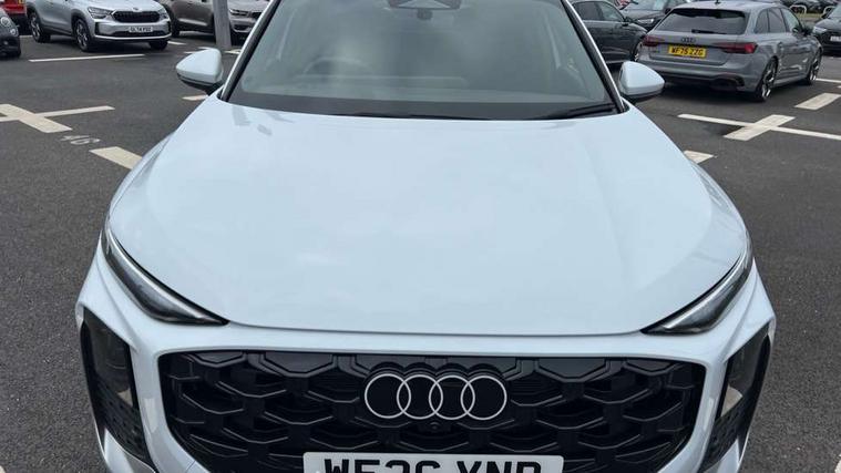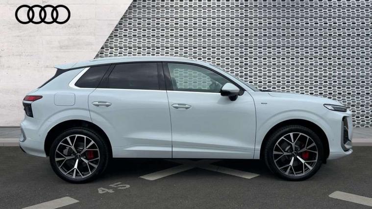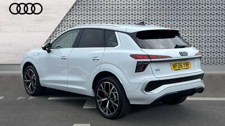 Adaptive cruise control, Audi connect emergency call and service, Audi connect remote and controls, Audi drive select (Balanced/Individual, effeciency, comfort and dynamic), Audi virtual cockpit plus - 11.9" display, Bluetooth interface, Camera based traffic sign recognition, Driver attention and fatigue monitor with driver monitoring, Front cross traffic assist, Lane departure warning with emergency assist, Panoramic curved display with 12.8" MMI navigation plus and MMI touch, Park assist plus with parking system and 360 display, Phonebox light with wireless charging, Reversing camera, Smartphone interface includes wireless Apple carplay/Android Auto, Start/stop system, Swerve assist and turn assist, Traffic sign based speed limiter, Voice control system with natural language interaction, 3 pin 10 amp domestic charging cable, Charging socket CCS type 2, Comfort suspension, Compact charging system, Industrial connector CEE 32A, 230V, Mode 3 charging cable for public charging, 22 KW (AC), Petrol Particulate Filter, 2 USB-C ports with charge and data functions, Audi sound system with 10 loudspeakers, subwoofer, 8 channel amplifier with 260 watts, DAB digital radio module, Acoustic glass for front door windows, Acoustic windscreen, Aluminium roof rails, Aluminium window trim, Audi Q3 lettering on the B-pillars, Auto dimming door mirrors, Auto dimming rear view mirror, Body colour door mirrors, Contrasting finish in volcano grey, Electrically folding, adjustable and heated door mirrors with integrated LED side indicators and kerb view function for passenger side, Full paint finish, Illuminated door sills with aluminium inserts at the front with S logo, LED daytime running lights, LED headlights plus with LED rear lights pro with continous light strip, illuminated Audi rings, rear, LED third brake light, Loading sill protector in stainless steel, Main beam assist, Privacy glass - dark tinted rear window, rear door and side windows, Projection light in the exterior mirrors - Projects a graphic element onto the ground, Q3 badging on the rear, Rain and light sensors, Rear side wing doors, Rear window, rear door windows and rear side windows in clear glass, Rear wiper, Sports bumpers, 3 seat bench in 2nd row, 3 spoke flat top and bottomed leather multi function sport steering wheel with gear shift paddles and "S" badging, 3-zone deluxe automatic air conditioning, 4 way lumbar support for the front seats - electric with horizontal and vertical adjustment in four directions, Black cloth headlining, Convenience auxiliary air conditioning, Front and rear floor mats, Front and rear headrests, Front centre armrest, Heated front seats, Height and reach adjustable steering wheel, Interior storage compartment, Leather/artificial leather upholstery combination with S emblem + front sports seats, Luggage compartment lid, electrically opening and closing, Manual front seats with height adjustment, Rear seat bench plus with split folded 40:20:40, Single front passenger seat, Stainless steel pedals, Steering wheel operating unit, gloss black, Storage compartment in front centre console, Ambient lighting package pro - Q3, S line exterior styling pack - Q3, 3x3 point rear seatbelts, Acoustic vehicle alerting system, Convenience key with safelock, Driver and front passenger airbag with passenger airbag deactivation, Electromechanical parking brake, Electronic stabilisation control including ABS, ASR and EDL, First aid kit with warning triangle and high visibility vests, Front emergency brake assist, Hill hold assist, i - Size child seat mounting on the front passenger side and i - Size and top tether on the outer rear seats, Power operated child locks, Seatbelt monitoring, Three point automatic belts with belt tensioner and height adjustment, Tyre pressure loss indicator, Anti theft wheel bolts, Remote central locking, Thatcham approved category 1 anti theft alarm, Dark aluminium divergence inlay, Interior elements in dinamica microfibre, Interior trims in aluminium look, Tool kit and Jack, Tyre repair kit,