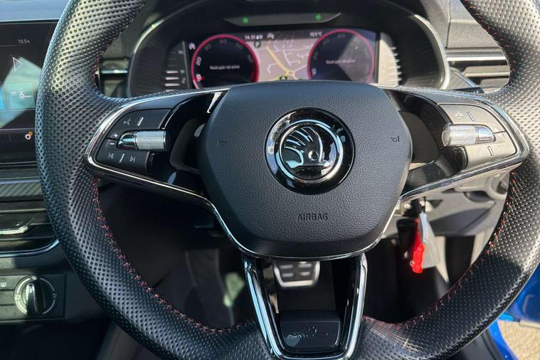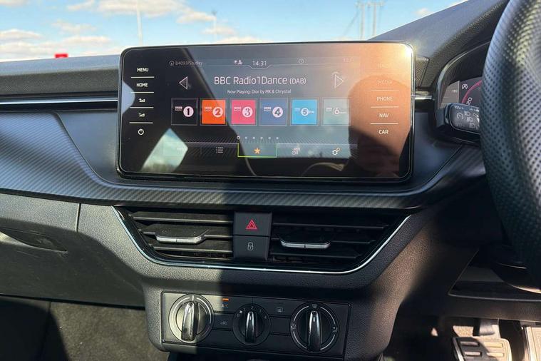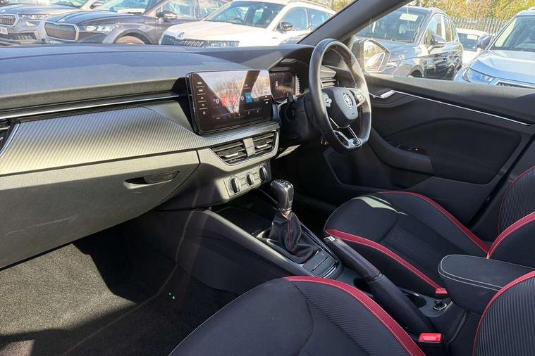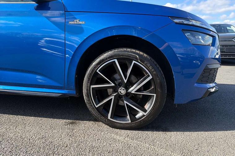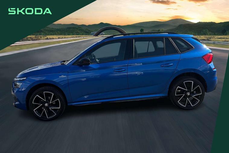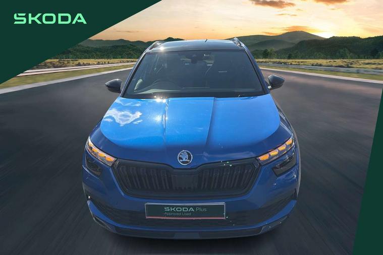Amundsen satellite navigation with 9.2" touchscreen display, voice control, virtual cockpit and web radio, Bluetooth system, E-call, Front assist system, Gesture control, PAS, Service indicator, Speed limiter, Virtual cockpit with 10.25" display, Wireless SmartLink for apple car play, android auto and mirrorlink, 8 Speakers, Auxiliary input socket, DAB Digital radio, Black door mirrors, Black radiator grille, Black rear diffuser, Body colour bumpers, Body colour door handles, Body colour roof spoiler, Boot lettering in black, Chrome grille surround, Dimming rear view mirror with black surround, Electrically adjustable and heated door mirrors, Fixed panoramic sunroof with black roof rails, Front and rear electric windows, Front sport bumper, Full LED headlights with adaptive front light system, dynamic indicators, cornering function and fog lights, Headlight range control, Heated rear window, High functionality rear led lights with dynamic indicators, KAMIQ Door sills, Light sensors, Monte carlo plaque, Privacy glass, Rear fog lights, Rear side wing doors, Rear wiper, 12V Accessory socket in centre console, 3 seat bench in 2nd row, Aluminium pedals, Black ceiling for black/beige interior, Chrome inner door handles, Cloth upholstery, Front head restraints, Glove compartment with illumination, Ice scraper, Isofix child seat fittings on outer rear seats, ISOFIX on front passenger seat, Leather gear lever, Manual lumbar support for front seats, Rake/reach adjustable steering wheel, Reading lights, Single front passenger seat, Sports seats, Sun visors with illumination on front passenger, Textile floor mats, Third rear headrest, Top tether for front passenger seat, Umbrella in driver's door, 3x3 point rear seatbelts, Airbags - driver and front passenger, ESP, Front passenger airbag deactivation switch, Front side airbags with curtain airbags, Hill hold control, Manual parking brake, Manual rear child locks, One tone horn, Rear disc brakes, Seatbelt reminder for driver an co-driver, Traction control, Tyre pressure monitor, Anti-theft alarm system with interior monitoring, backup horn, towing protection and remote central locking with SAFE system, Anti-theft wheel bolts, Electronic engine immobilizer, Chrome air vent surrounds, 18" Vega alloy wheels in black,