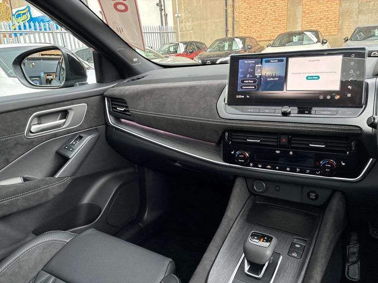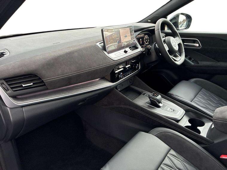 360 degree Intelligent around view monitor with moving object detection, Advanced windscreen head up display, Blind spot warning, Drive assist custom mode, Drive modes (sport, normal, eco), Driver drowsiness and attention warning, Electric speed sensitive power steering, Emergency and breakdown call, Emergency lane keep assist, Emergency Stop Signal (ESS), Engine start/stop button, Event data recorder, Front and rear parking sensors, Full Digital 12.3" TFT Digital Combimeter, Google virtual personal assistance, Hands free power tailgate, Idle stop/start system, In-car WIFI hotspot, Intelligent Cruise control (ICC), Intelligent driver alert system, Intelligent forward collision warning, Intelligent lane intervention, Intelligent speed assist, Lane departure warning system, Nissan connect 12.3 inch touchscreen infotainment system, Nissan connect navigation with google maps, Nissan connect services 2.0 (Google Automotive System), Outside temperature sensor, Propilot assist with Navi-Link, Rear cross traffic alert, Remote control services - door locks, lights, horn and car locator, Reversing detection, Traffic jam pilot, Traffic sign recognition with legal speed adjustment, Trip computer, Wireless Apple CarPlay/Android Auto, Wireless charging pad, Limited slip differential, Multi link suspension, 10 Bose speakers - 2 tweeters, 6 high and medium frequency door speakers and 2 in subwoofer, 2 front USB-C ports, 2 rear USB-C ports, AM/FM audio system with DAB, Bluetooth audio streaming, Bose acoustimass bass box, Digital amplifier, Auto dimming frameless rear view mirror, Auto rear wiper when reversing, Body coloured door handles, Bodyside mouldings, Chrome side window finisher, Electric auto folding door mirrors, Electrically adjustable and heated door mirrors with LED turn indicator, Follow me home headlights, Gloss black mirror caps, Glossy black bumper inserts and fenders, High beam assist, Intelligent auto headlights, LED 3rd brake light, LED daytime running lights, LED headlights with adaptive driving beam, LED rear lights, LED sequential turn lights, One touch front and rear electric windows with remote opening and closing, One touch passenger window, Rain sensing wipers, Rear privacy glass, Rear roof spoiler, Rear side wing doors, Rear styling plate, Reverse tilting door mirrors, Shark fin antenna, Silver roof rails, Splash free rain sensing wipers, Super RED rear LED lights, Super UV and infrared cut glass, Thermaclear heated windscreen, 12v power socket in dashboard and luggage, 3 bench rear seats in 2nd row, 3 rear headrests, 60/40 split folding rear seat bench, Chrome interior door handles, Driver and passenger sunvisors with illuminated vanity mirrors, Driver seat back pocket, Dual zone automatic climate control with pollen filter, Electric 4-way lumbar support for front seats, Electrically adjustable driver seat with massage and memory functions, Fixed Glass roof with electric sunshade, Front centre console and armrest, Front cupholders, Front door with bottle holders, Heated front seats, Heated steering wheel, Height adjustable front headrests, Height adjustable passenger seat, Luggage board system, Luggage space lighting, Multifunction steering wheel, Passenger seat back pocket, Quilted premium leather upholstery, Rear door bottle holders, Rear seat armrest with 2 cupholders, RGB ambient light (Partial area coverage), Single front passenger seat, Smooth leather steering wheel, Steering wheel gearshift paddles, Tilt/telescopic adjustable steering wheel, Two rear isofix child seat anchorage points with top tether, 3x3 point rear seatbelt pretensioners + load limiters, ABS with EBD and brake assist, Autonomous emergency braking, Child locks on rear doors, Curtain and front side, far side airbags, Driver and passenger airbags, Driver, passenger and 2nd row rear seat belt reminder, Electric handbrake with auto hold function, Front seatbelt pretensioners + load limiters, Height adjustable front seatbelts, Hill start assist, Intelligent blind spot intervention, intelligent front emergency braking, Intelligent rear automatic braking, Tyre pressure monitoring system, Vehicle dynamic control, Engine immobiliser, Intelligent key with walk away lock and approach unlock functions, Remote central door locking with deadlocking, Thatcham alarm, 20" N-Design diamond cut alloy wheels, Tyre puncture repair kit,