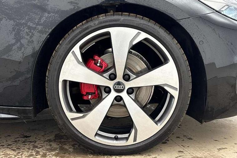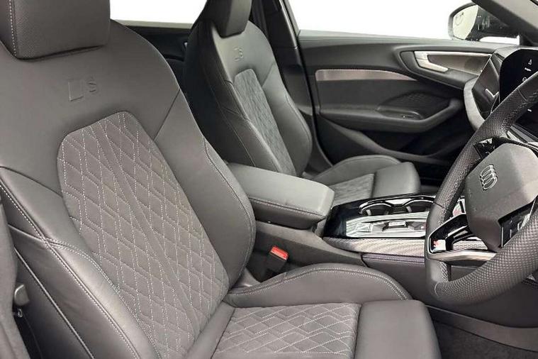 Adaptive cruise control, Advanced driver attention and fatigue montior, Audi application store, Audi assistant, Audi connect emergency call and service, Audi drive select, Audi virtual cockpit plus with 11.9" OLED colour display, Automatic start/stop system with coasting functionality, Camera based traffic sign recognition, Intersection assist, Lane change assistant with exit warning system, rear cross traffic alert and rear turn assist, Lane departure warning with emergency assist, MMI 10.9" front passenger touch display, MMI navigation plus with high resolution 14.5" OLED touchscreen colour display, Park assist plus, Parking system plus with 360 display, Progressive steering with servotronic, Smartphone interface, Swerve assist and turn assist, Top view camera, Traffic sign based speed limiter, Sports suspension lowered by 20mm, 2 USB-C ports in both the front and rear, Audi sound system impressive sound with 8 loudspeakers including centre speaker and subwoofer, 6-channel amplifier with a total output of 180 watts, DAB digital radio reception, Smartphone compartment with wireless charging, Aluminium window trims, Auto dimming rear view mirror, Black door handles, Black roof rails, Dark chrome-plated tailpipe trims, Door mirrors - electrically adjustable, heated, folding and auto dimming on both sides, Front and rear electric windows, Front door sill trims with aluminium inlays, illuminated with 'S' logo, Headlight cleaning system, High beam assist, LED daytime running lights, LED rear lights pro incl. dynamic rear indicators and illuminated light strip with animated coming and leaving home function, LED third brake light, Matrix LED headlights with eight light signatures selectable via the MMI or the myAudi app, Privacy glass, Rear and side windows with heat insulating glass, Rear side wing doors, Rear wash/wipe, S Line badges on the front wings, S line bumpers, radiator grille and diffuser in phantom black and diffuser insert in matt anthracite, White rhombus logo projection light in exterior mirrors, Windscreen with acoustic glazing, 3 rear headrests, 3 seat rear bench, 3 spoke leather steering wheel with multi-function buttons with touch control, flattened on top and bottom, with S badging and contrast stitching, 3-zone automatic climate control, 40:20:40 split folding rear seat bench with centre armrest and cup holders, Comfort front centre armrest, Electrically adjustable front seats, Front and rear floor mats, Front sport seats with integrated headrest and S embossed logo, Headlining in black cloth, Heated front seats, i-Size child seat mounting on the front passenger side and outer rear seats, i-Size and top tether on the outer rear seats, Luggage compartment lid, electrically opening and closing, Manual steering column height and depth adjustment, Memory function for driver seat, Single front passenger seat, Stainless steel pedals and footrest, Steering wheel grips in perforated leather and shift paddles, Ambient lighting package plus - A5, Black styling package plus - A5, 3x3 point rear seat belts, Acoustic vehicle alerting system, Convenience key with safelock, Driver airbag, Electric child safety locks, First aid kit with warning triangle and vests, Front emergency brake assist, Front passenger airbag, Front passenger airbag deactivation, Hill hold assist, Occupant detection in rear seat area, Proactive passenger protection system for front, sides and rear, Red brake calipers, Seat belt monitoring with rear seat occupant reminder, Side airbags in front and rear with head airbag system and front interaction airbag, Tyre pressure loss indicator, Anti theft alarm, Anti-theft wheel bolts, Keyless Go, Accent surfaces and control buttons in gloss black, Black dashboard with contrast stitching, Softwrap in Dinamica with contrast stitching, Upper and lower interior elements in dinamica microfiber, 20" 5 arm fold design Audi sport alloy wheels in silk matt grey and gloss turned finish, Tyre repair kit,