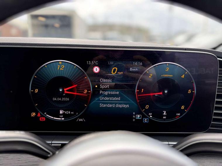 12.3" digital instrument cluster display, Attention assist, Brake wear warning display, Direct steer speed sensitive steering, DYNAMIC SELECT with a choice of driving modes (ECO, Comfort, Sport, Sport+ and Individual), Easy-pack tailgate - Powered opening/closing automatically, ECO start/stop function, Geofencing, Hey Mercedes Voice activation, High resolution 12.3" multimedia colour display, Mercedes me connect including emergency call system, accident recovery, breakdown and maintenance management, Mercedes-Benz emergency call, Outside temperature display, Remote boot release, Service indicator (ASSYST), Status display for rear seat belts in instrument cluster, Traffic Sign Assist, Traffic sign recognition including wrong way warning function and display of posted speed limits in the instrument cluster, Trip computer in multifunction display showing current fuel consumption, Widescreen cockpit, Wireless charging system for mobile devices, 85 litre fuel tank, Agility control lowered suspension with selective damping system, Diesel particulate filter (DPF), Incorrect fuelling protection, DAB Digital radio, Dual bluetooth interface, 2 USB ports (type C), MBUX multimedia system with DAB digital radio and touchpad including satellite navigation, Adaptive brake lights, Adaptive high beam assist, Aerial for GPS, Aluminium look, illuminated running boards with rubber studs, AMG bodystyling front and rear aprons and side skirts in polished aluminium, Body colour door mirrors, Body coloured bumpers, Electric windows with one touch opening/closing and obstruction sensors, Exterior mirrors heated and electronically adjustable, Front green tinted glass, LED high performance headlamps, LED rear lights, Multi beam LED headlights, Privacy glass - heat insulating dark tinted glass, Radiator grille with integrated star and single louvre in matt iridium silver with chrome trim, Radio aerial integrated into rear window, Rain sensing windscreen wipers, Rear wiper, Roof rail system, Top surround of side windows in polished aluminium, Visible twin pipe exhaust system integrated into bumper, Waistline in polished aluminium, 3 spoke AMG multifunction steering wheel with touch control buttons, trimmed in black nappa leather with flattened bottom section, 4 way lumbar support, 40:20:40 split folding rear seats, AMG brushed stainless steel sports pedals with rubber studs, AMG floor mats with AMG lettering, Artico man-made leather upper dashboard with contrast topstitching, Automatic child seat recognition sensor, Black roof liner, Central stowage compartment with 12 V socket in centre console, Chrome door pins, Courtesy lights in rear grab handles with reading light functionality, Dual zone climate control, Four way fully front electric seat adjustment, Front centre armrest with stowage compartment and illuminated grab handles, Front/rear adjustable head restraints, Glasses compartment in overhead control panel, Glove compartment - lockable, air conditioned and illuminated, Heated front seats, Interior lighting - 64 colour Ambient lighting, Nappa leather upholstery, Seat occupancy sensor for front passenger seat, Steering column manually adjustable for height and reach, Steering wheel multifunction with gearshift paddles, Sunvisors with illuminated vanity mirrors, Touchpad, Anti theft Protection package - GLE, Memory package - GLE, Mirror package - GLE, Parking package with 360 camera - GLE, Active bonnet, Adaptive brake system with HOLD function and brake drying in the wet, Airbags - driver and front passenger, with extended adaptivity for front passenger airbag, Airbags - sidebag for driver and front passenger with combined thorax/pelvis bag, Airbags - windowbags, Anti-lock braking system (ABS), Childproof locks manually operated for rear doors and electrically operated for rear power windows, Drivers knee airbag, Electronic parking brake, Electronic Stability Programme (ESP), ISOFIX child seat attachment points two outer rear seats, Matt surround electronic key, Perforated front brake discs and brake calipers with Mercedes-Benz lettering, Pre-Safe anticipatory safety system, Three point rear seat belts, Tyre pressure monitoring system, Warning triangle and first aid kit, Alarm system/interior protection/immobiliser, Central locking with interior switch, automatic locking and crash sensor with emergency opening function, Keyless entry go starting function, Dashboard and door, anthracite open pore oak wood trim, Trim - Centre console, anthracite open pore oak wood trim, 20" AMG 5 twin spoke alloy wheels painted in tremolite grey with high sheen finish, Summer tyres with noise reducing absorber, TIREFIT with tyre inflation compressor,