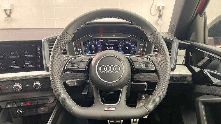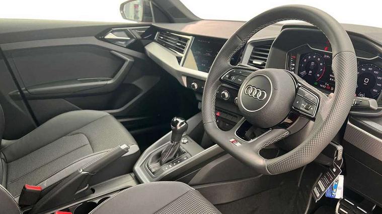 10.25" Digital instrument cluster display classis style instrument dials + speed, odometer, time, outside temperature, telephone menu + fuel level warning, Advanced driver attention and drowsiness monitor, Audi connect emergency call and service, Audi drive select, Audi remote connect and control, Bluetooth interface, Camera based traffic sign recognition, Cruise control, Driver's information system, Electromechanical power steering, Lane departure warning system, Rear parking sensor, Service interval indicator, Smartphone interface, Speed limiter, Start stop system with recuperation, Voice control system, Washer fluid level indicator, Sports suspension, 2 x USB type C connection points, 6 loudspeakers, DAB Digital radio, MMI radio plus with 10.1" colour MMI display screen and MMI touch, Auto dimming rear view mirror, Black door mirror housings, Black side skirts, Body coloured bumpers, Door sill trims with aluminium inlays and logo, Electric front and rear windows, Electrically adjustable, heated, folding door mirrors with integrated LED side indicator, Front side air inlets in grained matt black and C frame in anthracite black, Front wing badges, Headlight cleaning system, Heat insulating glass windscreen and side windows, Heated rear windscreen, High level LED brake light, LED daytime running lights, LED headlights with range control LED rear lights + dynamic rear indicators, Light and rain sensors, Privacy glass, Radiator grille and rear diffuser in matt anthracite black, Radiator protective grille frame in matt aluminium silver, Rear fog lights, Rear side wing doors, Rear wiper, Side front spoiler lips in grained matt black, 12V socket in centre console with two cup holders, 3 rear seats with headrests, 3 seat bench in 2nd row, 3 spoke flat bottomed multi-function plus leather steering wheel with S badging, grips in preforated leather, contrast stitching and paddle shift, 40:60 Split folding rear seat or fully collapsed, Black carpets, Black cloth headlining, Front and rear velour black floor mats with contrast stitching in fine silver, Front head restraints, Front passenger seat, Height and reach adjustable steering wheel, Interior lighting includes roof module, front and rear reading lights and right luggage compartment lighting, ISOFIX child seat mounting for front passenger and outer rear seats including top tether attachment point of outer rear seats, Leather gear knob with aluminium trim, Leather handbrake grip, Manual air conditioning, Manual height adjustable for driver and front passenger seat, Manually adjustable lumbar support in front seats, Stainless steel pedals, Ambient lighting package - A1, Black styling pack - A1 Sportback Black Edition, Luggage compartment pack - A1, 3x3 point rear seatbelts, Audi pre-sense front with pedestrain and cyclist recognition, Brake assist function, Driver and front passenger airbag with front side and head airbags, Electronic Stability Control including ABS, EBD, ASR and EDL, Front passenger airbag deactivation switch, Hill hold assist, Manual rear child locks, Seatbelt height adjustment for front seats, Seatbelt monitoring, Tyre pressure loss indicator, Warning triangle and first aid kit, Anti theft alarm, Anti theft wheel bolts, Immobiliser, Remote control key with safelock, Aluminium trim for control switches, air vents and digital instrument cluster, Black dashboard, Silver grey inlays polygon structure in diamond paint finish, Structured grey accent surfaces insert of air vents, interior door handle recesses and centre console in quartz paint finish,