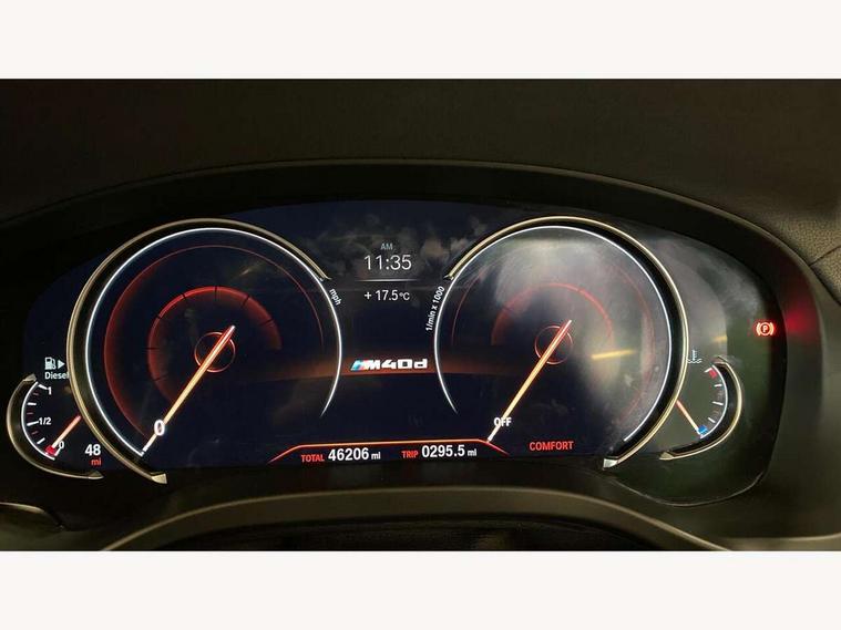 Active Guard incl speed limiting and lane departure functions with auto steering, and front collision warning with brake intervention, Attentiveness assist, Automatic tailgate operation, BMW Online services, BMW remote services, BMW Teleservices, Brake pad wear indicator in front and rear, Check Control warning system for monitoring of lights and door/luggage compartment open warning, Control display - 6.5" colour display screen, Front/rear Parking distance control, iDrive Controller with 8 favourite buttons, Instrument cluster with speedometer with mph readout, tachometer, fuel gauge and oil temperature gauge, Lights on warning by audio warning signal when ignition is switched off, Navigation system - BMW Professional multimedia with Hard disc drive (HDD) and 10.25" touch display, Oil sensor for level and grade, warning by check control system, On board computer - average speed+fuel consumption, service interval, clock/date, odometer/trip meter, outside temperature display and ice warning, Optimum shift indicator, Personal Profile - automatic lock when driving away selectable, Real time traffic information, Stop/start system, Variable sports power steering, Diesel particulate filter, Incorrect fuelling protection, M Sport differential, Multi-link rear suspension, Performance Control, Sport automatic transmission with gearshift paddles, Auxiliary socket for external MP3 player, BMW professional radio/CD/MP3, DAB Digital radio, Black finish on B pillars, BMW icon adaptive LED headlights, Body colour door handles, Body colour roof mouldings, Body coloured bumpers, Cerium grey air breather, Cerium grey air inlets, Cerium grey exterior mirror caps, Cerium grey frame and kidney grille with high gloss black vertical slats, Direction indicator, side repeaters, integrated in exterior mirrors, Dual black chrome quadrilateral exhaust tips, Dynamic brake lights, Electric adjustable heated door mirrors, Fingertip control / anti-trap function on electric window, Follow me home headlights, Front and rear bumper system with replaceable deformation elements, Front and rear electric windows, Green tinted heat insulating glass, Heated windscreen washer jets, Height adjustable headlamps, High beam assistant, High gloss black door sill finishers, High gloss black shadow line roof rails, High gloss shadow line exterior trim, High level 3rd brake light incorporating LED Technology, Interior rear view electrochromatic mirror with automatic anti dazzle function, LED daytime running lights, corona ring style, LED front fog lights, LED Indicators, LED tail lights, Lightweight engineering, M aerodynamic bodystyling, Rain sensor including auto headlights activation, Rear wiper, Shark fin antenna, Visible VIN plate, Welcome lighting, Windscreen wipers with adjustable interval, 12V socket in centre console and luggage area, 3 rear headrests, 3 zone automatic air conditioning, 4 lashing points to secure luggage, Ambient lighting, Anthracite headlining, Anthracite Velour floor mats, Driver/passenger sunvisors with ticket holders + illuminated vanity mirrors, Foldable boot floor with storage compartment, Four grab handles integrated in roof lining, Front and rear bottle holders integrated into door trim storage compartments, Front and rear side armrests integrated into door trim, Front centre armrest with storage compartment, Front footwell lights, Front/rear courtesy lights with soft on/off dimming, Front/rear reading lights, Height adjustable front/rear head restraints, Isofix rear child seat preparation, Leather gear knob, Luggage area underfloor compartment, Luggage compartment lighting, M Sport multifunction leather steering wheel, Parcel shelf removeable and storable under boot floor, Rake/reach adjustable steering wheel, Rear seat centre armrest with two cupholders, Removable / retractable luggage cover, Slope adjustable rear seats, Storage compartment in rear centre console, Through loading system with 40/20/40 split folding rear seat, Toolkit located in luggage compartment, Two front cupholders with removable oddments tray/lid, ABS/EBD, ADB - Automatic Differential Brake, Automatic Stability Control (ASC), Battery safety cut-off, BMW emergency call, Brake assist function, Brake drying, Brake energy regeneration, Braking pre-tensioning, Child locks on rear doors, Cornering brake control (CBC), Crash Sensor - activation of central locking release, hazard warning light and interior lighting, Deactivation of fuel pump in the event of a crash, Driver and front passenger front and side airbags with passenger deactivation and ITS front and rear head airbags, DSC+, Dynamic brake control, Dynamic Traction Control - DTC, Electromechanical parking brake, Front seat belts warning, Hill descent control, Hill start assist, M Sport braking system, Seatbelt security check for front seats, Side impact protection, Three point seatbelts to all seats with front and outer rear pyrotechnic belt tensioners and seat belt force limiters, Two tone horn, Tyre pressure monitoring system, Ventilated front and rear disc brakes, Warning triangle and first aid kit, Central locking switch for all doors, fuel filler cap and luggage compartment, Electronic engine immobiliser, Locking wheel nuts, Remote control including two integrated key - one button for open/close all lockable content, windows and separate button for open luggage compartment, Remote control Thatcham category 1 alarm, Start/stop button with Comfort Go keyless engine start and auto Start/stop deactivation button, Low rolling resistance tyres,