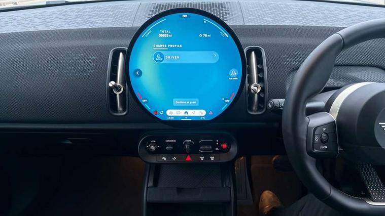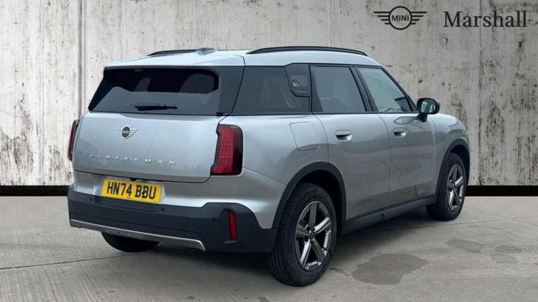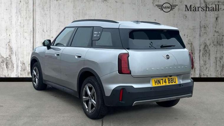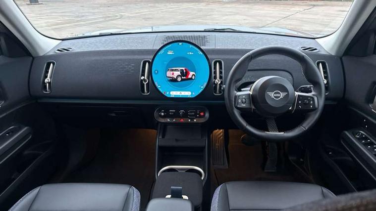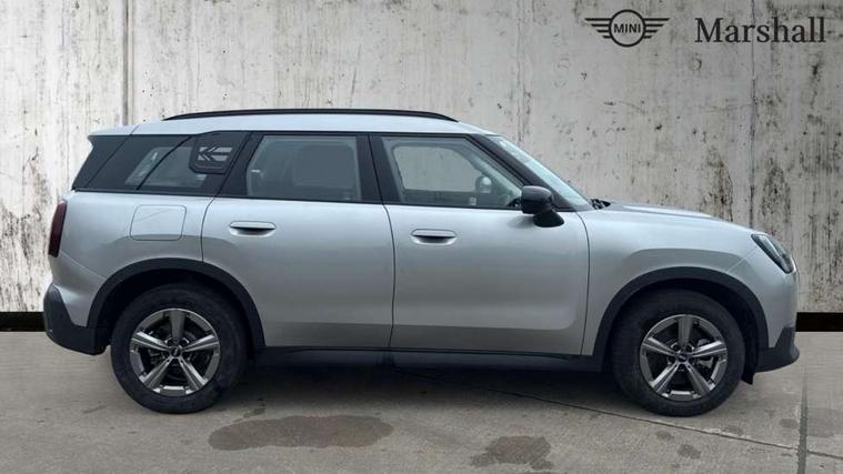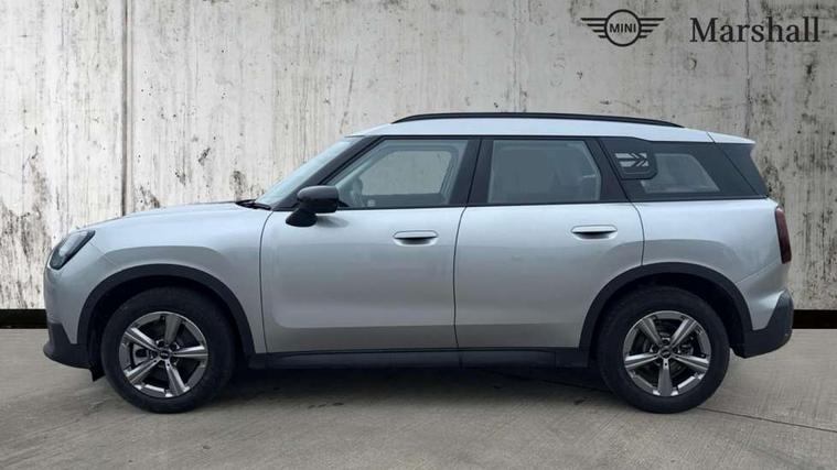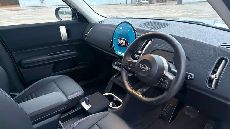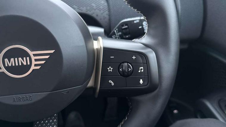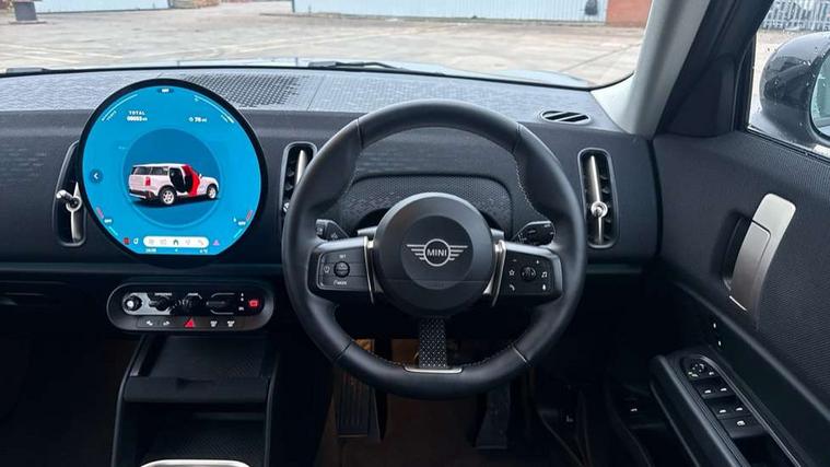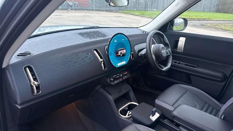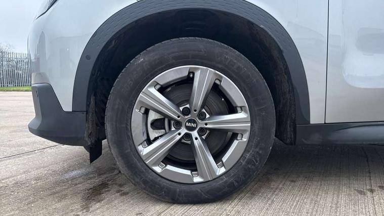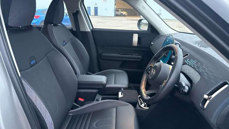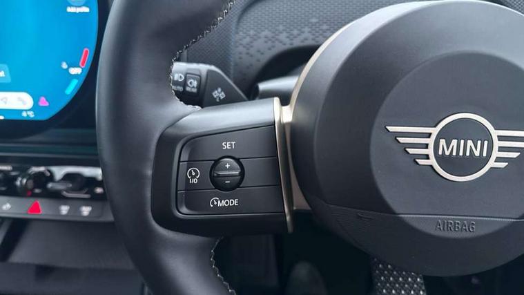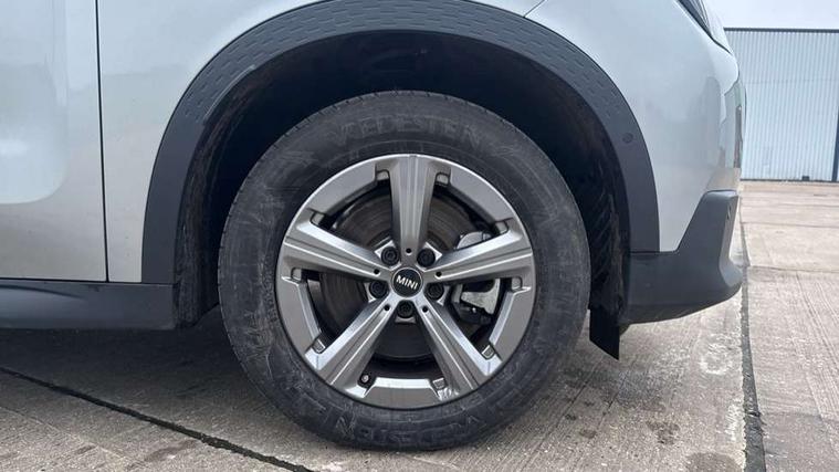 Bluetooth connection, Circular OLED Screen, Compatible mobile phone bluetooth with audio streaming, Cruise Control (DCC), Digital dashboard display, Driving assistant, E-call, Electro-mechanical speed dependant steering assistance, MINI Experience Modes, Mini navigation system, MINI TeleServices, Parking assistant in camera and ultrasound based assistance system, rear view camera, parking aid and distance control, Auto transmission with Paddles, Larger capacity fuel tank, 6 speakers, DAB Digital radio, Personal eSim, Auto tailgate, Electric adjustable heated door mirrors, Front and rear electric windows, Heated rear window, LED daytime running lights, LED Headlights, LED rear lights, LED third brake light, Rain sensor with auto headlights, Rear side wing doors, Rear window wiper, Roof rails, 3 seat bench in 2nd row, 60/40 split rear bench seat, Auto air conditioning, Floor mats, Front armrest, Front headrests, Heated steering wheel, Height and length steering column adjustment, Light headliner, Rear headrests, Single front passenger seat, Sport Vescin Steering Wheel, Sunvisors with vanity mirrors, Vescin/Cloth upholstery, 3x3 point rear seat belts, 6 Airbags - front, side, head and seat belt tensioners, ABS, DSC - Dynamic Stability Control, Electronic handbrake, Electronic Stability Programme (ESP), Front ISOFIX (iSize), Hill hold assist, Hill start assist, Manual rear child locks, Traction control, Tyre pressure monitoring system, Warning triangle, Alarm system with tilt sensor, monitoring doors, bonnet interior and tailgate, Auto drive away locking, Deadlocking function, Electronic vehicle immobiliser, Locking wheel bolts, Remote control locking, Start/stop toggle with keyless go, Black/Blue dashboard knit, MINI Mobility Kit,