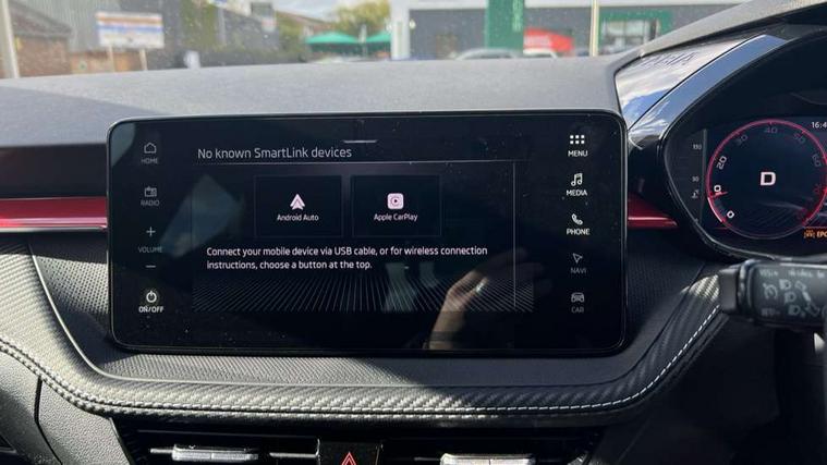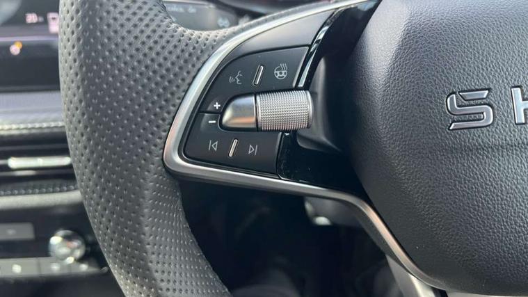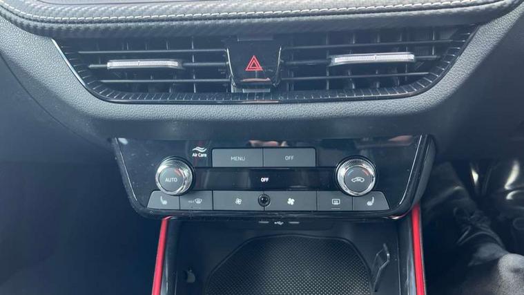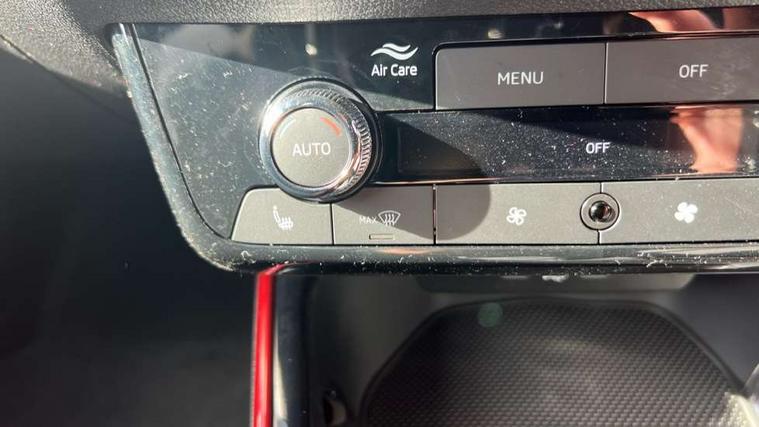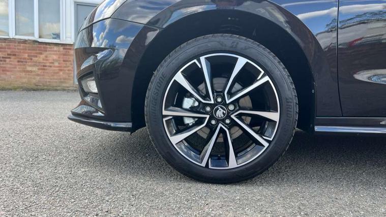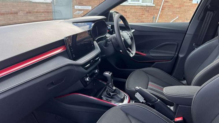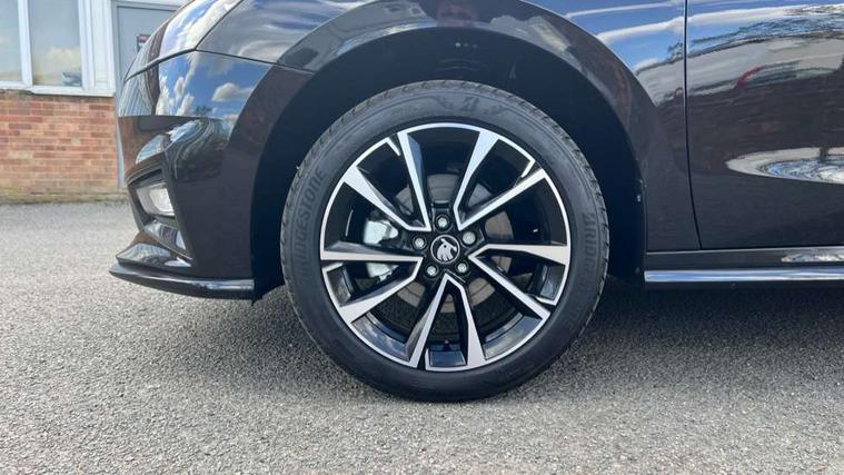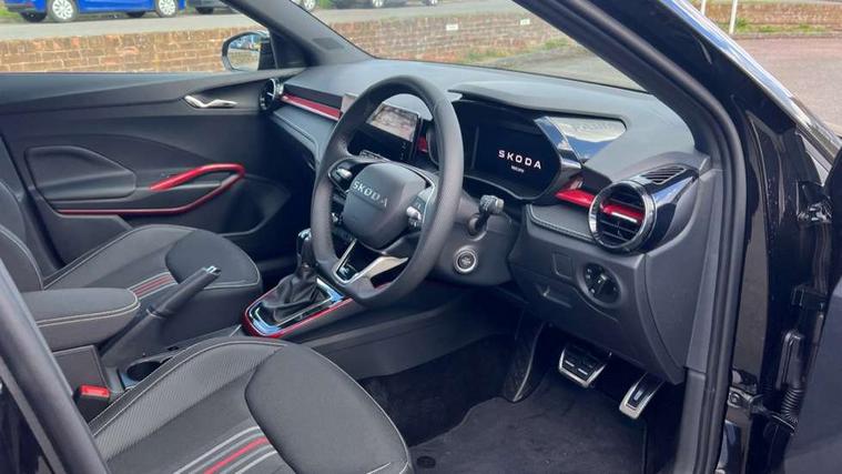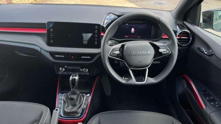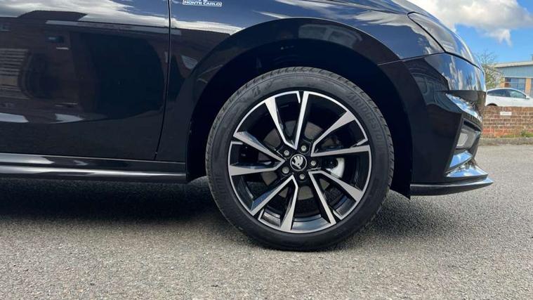 Advanced driver attention and drowsiness monitor, Bluetooth connection, Driver alert system, Electromechanical power steering, Exterior temperature gauge, Service interval indicator, Traffic sign recognition, Virtual cockpit with 10.25" colour display, Wireless SmartLink for Apple CarPlay and Android Auto, 9.2" colour display skoda navigation system with voice control and web radio, Auxiliary socket for external MP3 player, DAB digital radio reception, Auto dimming rear view mirror, Black radiator grille, Body coloured bumpers, Chrome window surround, Door mirror integrated indicators, Dynamic headlight range control, Front and rear electric windows, Front window wiper intermittent control, Ice scraper in fuel cap, LED 3rd brake light, LED daytime running lights with coming and leaving home feature, LED rear lights, Monte Carlo badging, Privacy glass, Rear LED fog light, Rear side wing doors, Rear window wiper with washing nozzles, Roof mounted spoiler, SKODA tailgate lettering in black, Sports bumpers, Unique dark chrome design logo on alloy wheels, 2 LED reading lights in front and rear, 3 rear headrests, Aluminium pedals, Backrest split and folding, Black headlining, Central console with fixed cup holder and storage box, Chrome handbrake release button, Door sills with fabia badging, Dual zone air conditioning with climatronic electronic control, Fabric/artificial leather upholstery, Front centre armrest, Front sports seats, Gearshift knob/handle in leather, Hand brake lever handle in leather, Height adjustable front headrests, Height adjustable front seats, Height adjustable steering wheel, ISOFIX and TopTether anchorage points to the outer rear seats, ISOFIX and TopTether on the front passenger seat, Luggage compartment lighting, Manually adjustable lumbar support in front seats, Metallic red interior door handles, Pollen filter, Rear seat bench unsplit, Single front passenger seat, Skoda lettering on steering wheel, Sun visors with mirror and airbag label on passenger side, Textile floor mats, Ticket holder, Umbrella in drivers door, Ambient lighting pack - Fabia Hatchback, Convenience pack - Fabia, Light and view pack plus - Fabia, 3-point height adjustable front seats belts with pretensioner and force limiter, Automatic warning lights in case of crash, Driver and passengers airbag with switch off function, e-Call+, ESC including ABS, MSR, ASR, EDS, HBA and XDS, Front and rear seat belt warning, FRONT ASSIST (AEB City and AEB Inter Urban), Front side airbags, Head airbags, Hill hold control, One tone horn, Pedestrian protection, Three rear 3-points safety seat belts with pretensioner and force limiter including stop function for outer rear seat belts, Tyre pressure monitoring system, Anti-theft alarm system including immobiliser, interior monitoring, backup horn, and towing protection, Central locking with radio remote control, interior controls, SAFE function and 2 foldable keys, Carbon effect door and side trim panels, Carbon effect lower decorative trim with white stitching, Grain satin black central console cover, Monte carlo air vents, Red metallic upper decorative trim, Anti-theft wheel bolts protection, Super-low rolling resistance tyres,