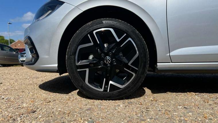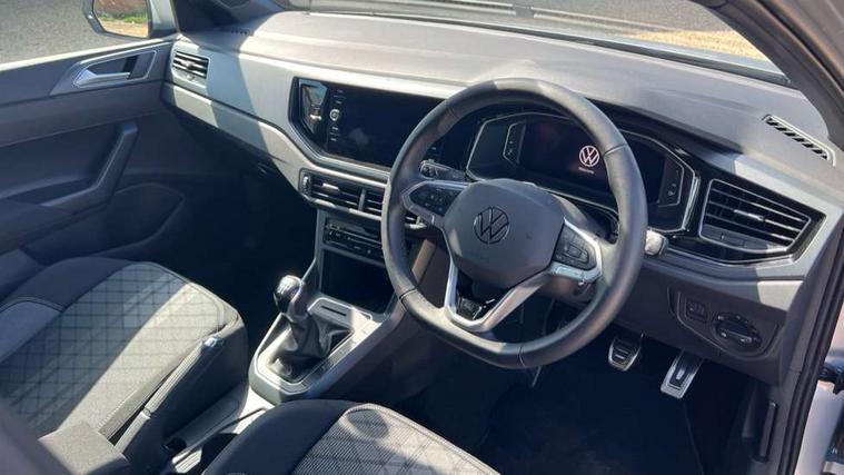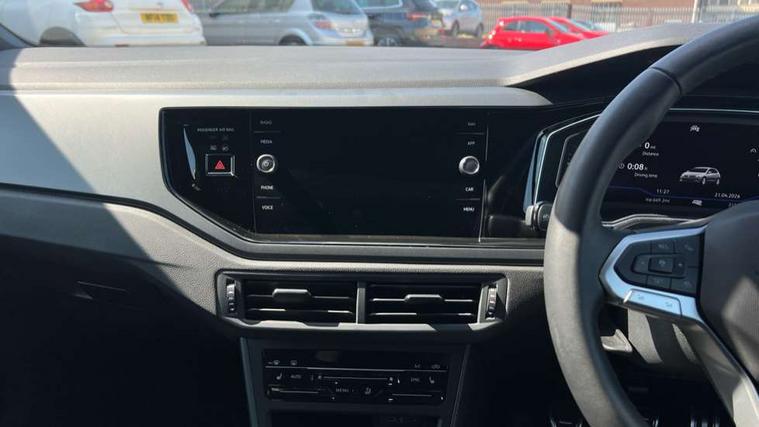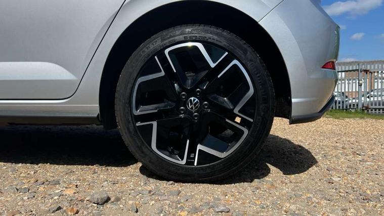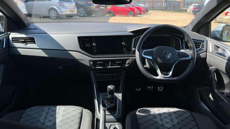Advanced driver attention and drowsiness monitor, Bluetooth mobile phone interface, Digital Cockpit Pro with 10.25" Display, Dynamic road sign display, Emergency call service, Mobile phone preparation with inductive charging function, Multifunction camera, Power assisted speed sensitive steering, Predictive adaptive cruise control without follow-to-stop and speed limiter, Preparation for We connect and We connect plus, Speedo and rev counter, electronic odometer, trip, service interval display and fuel gauge, Standard rear axle, Travel Assist - Lane keeping system and traffic jam assist, Travel assist including emergency assist, Trip computer, Warning signal and warning light for front and rear seatbelts not fastened, Washer fluid level indicator, Wireless app connect, Front wheel drive, Rear shock absorpion, Start-stop system with battery regeneration (recuperation - energy recovery during braking), DAB Digital radio, Diversity antenna for FM reception, Body colour bumpers, Body colour door handles, Electric front windows, Front scuff plates with R-Line logo, Heat insulating glass windscreen, Power folding adjustable/heated exterior mirrors and front passenger exterior mirror lowering function, Rear electric windows, Rear fog light, Rear side wing doors, Rear windscreen washer and wiper with interval delay, Third brake light, 12V power socket in centre console, 2 USB-C ports in the front, 2 USB-C charging sockets on the center console in the rear, 3 rear head restraints, 60/40 split folding rear seat and rear seat bench not split, Air care climatronic air conditoning system with active combination filter and 2-zone temperature control, Black roof lining, Carpet mats, front and rear, Chrome plated radiator grille inserts, air vent surrounds and light switch surrounds, Door and side trim panel, Driver and front passenger seat height adjustment, Driver/passenger sunvisors with illuminated vanity mirrors, Front centre armrest, Front footwell illumination, Front seat backrest storage pockets, Front sports comfort seats, Handbrake lever handle in leather, Headliner in recycled material, Isofix child seat preparation easy-fit (for two outer rear seats, and front passenger seat) compatible with I-size, Karoso artvelours cloth upholstery, Leather trimmed gear knob, LED interior light with switch off delay and dimmer, 2 reading lights front and rear, Luggage compartment cover, Luggage compartment floor, Luggage compartment lighting, Lumbar adjustment for front seats, Multifunction steering wheel, Single front passenger seat, Stainless steel pedals, Standard pedal cluster, Light and sight pack - Polo R-Line/Black Edition, 3 point height adj front seatbelts + pretensioners, 3x3 point rear seatbelts, ABS, Driver and front passenger airbag with front passenger airbag deactivation, Drivers and front passengers safety optimised head restraints, ESC (Electronic stability control) + EDL (Electronic Differntial lock) and ASR (Traction control), Extended and predictive pedestrian/ cyclist protection, Front curtain and side airbags with center airbag, Hill hold control, Manual child lock in rear doors, Single tone horn, Tyre pressure loss indicator, Alarm with interior protection, Anti-theft alarm system with interior monitoring, backup horn, and towing protection, Anti-theft wheel bolts, Electronic engine immobiliser, Chrome applications on rotary light, mirror adjustment, window regulator switches, outlet with frame in black, Dark grey anodised matt decorative inserts in dash and front door panels, 16" Coventry alloy wheels, Low rolling resistance tyres,