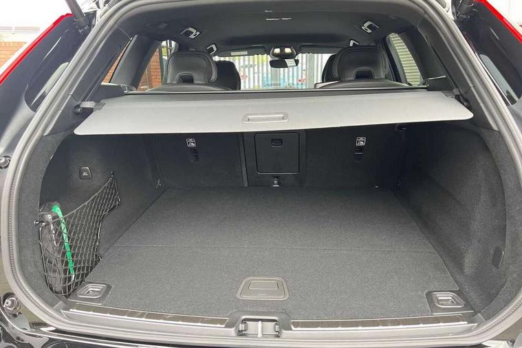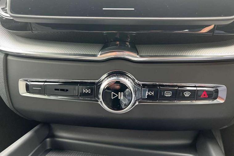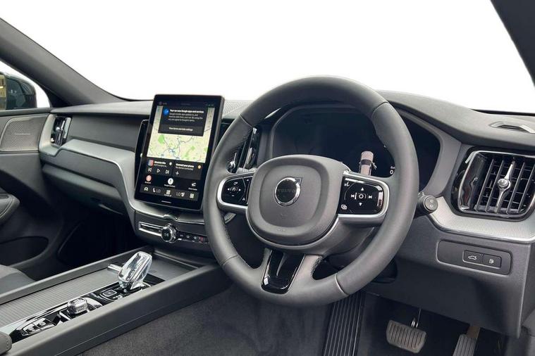 11.2" centre console touch screen, 12.3" Progressive Driver Display, 360 degree surround view parking camera with side proximity sensors, Adaptive cruise control, Adjustable steering wheel force, Android auto (Wired), Apple carplay (wired), Bluetooth handsfree system, Drive mode settings, Driver alert control with lane keeping aid, Driver understanding system, Emergency services call system, Front and rear park assist, Google Automotive Services, Intelligent speed assistance, Oncoming Lane Mitigation, PAS, Power operated tailgate with handsfree opening and closing, Service interval indicator, Speed limiter, Speed sensitive steering, Trip computer, Volvo cars services with app, Volvo on call with App, Wireless/Inductive Mobile Phone Charging, 2 phase on board charger 6.4kW (home charging limited to 3.7kW), 6m 3 phase 16amp Type 2 / mode 3 charge cable, 8 speed automatic transmission with start/stop + manual change functions, Electric rear axle drive, Recharging port located in nearside front wing, DAB Digital radio, Low speed exterior sound speaker, Premium Sound by Harman Kardon, dirac unison, dolby pro logic II surround sound, 13 speakers/600W output and fresh air subwoofer, Steering wheel remote infotainment controls, Adaptive brake lights with high level LED brake lights, Auto dimming interior + exterior mirrors, Automatic headlight levelling system, Automatic LED Headlights + Active high beam incorporating daytime running lights, Dark tinted windows for rear side windows and cargo area, Electric adjustable/heated/auto power folding door mirrors, Electric front+rear windows, Front aluminium tread plates, Heated front windscreen, High gloss black door mirrors and window surround, High gloss black front and rear bumper decoratives, High gloss black front grille, Surround, Strikethrough and Ironmark, High gloss black rear model, engine and volvo logo badges, Home safe and approach lighting, Integrated roof rails in high gloss black, Puddle lights, Rain sensor with automatic windscreen wiper activation, Rear side wing doors, Rear wiper, Roof antenna, Roof spoiler, Tinted windscreen, Visible VIN plate, 12V socket in front tunnel console and luggage compartment, 2 zone electronic climate control with Clean zone air quality system and pollen filter, 3 seat bench in 2nd row, 3 Spoke tailored steering wheel with chrome trim, A-pillar parking ticket holder, Air purifier particulate matter (PM) 2.5 filter, B Pillar ventilation, Bright metal luggage scuff plate, Centre console cupholders and storage, Charcoal floor mats, Contour sports seats with nappa soft leather/textile upholstery, Front and rear courtesy lights, Front and rear door pocket illumination, Front cupholder illumination, Front footwell illumination, Front reading lights, Front seat cushion extensions, Glovebox compartment with illumination, Head restraints for all seats, Heated front seats, Heated steering wheel, Height/reach adjustable steering column, Illuminated luggage compartment, Illuminated vanity mirrors + ticket holder, Inner door release handle illumination, ISOFIX attachment on outer rear seats, Load cover, Load protection net, Multi directional lumbar support, Power driver seat with memory + exterior mirrors memory, Power height adjustable passenger seat, Power passenger seat with memory, Rear armrest with cupholder, Rear footwell and front and rear side step illumination, Rear reading lights, Rear seat concealed storage, Single front passenger seat, Tailgate illumination and ambient door lighting, Underfloor stowage compartment, Versatile split folding rear seat - 60/40, Driver assist pack without Adaptive cruise control - XC60, 5 three point seatbelts, City safety with steering support with Pedestrian + cyclist + front collision warning with full auto brake and rear auto brake, Drivers knee airbag, Dual stage driver/passenger airbags, Electronic parking brake with auto hold, First aid kit, Front seats SIPS airbags, Hill descent control - Off-road drive mode, Hill start assist, IC (Inflatable Curtains) - Full Length, Passenger airbag cut-off device, Power child locks on rear doors, Road sign information display, Run off Road Mitigation, Run off Road Protection, Seatbelt reminder and pretensioners, SIPS (Side Impact Protection System), Slippery road and hazard light alert, Stability and Traction Control with Spin control, Engine Drag Control and Corner Traction Control, Tyre pressure monitoring system, Vehicle deceleration control with Anti-lock Brake System, Electronic Brake Distribution and Emergency Brake Assist, Warning triangle, WHIPS whiplash protection system - front, Anti-theft alarm including immobiliser/volume sensor + level sensor, Key integrated remote control central locking + fuel flap with deadlocking system and auto open/close power windows, Keyless Drive (includes Keyless Entry and Keyless Start), Locking wheel nuts, Private locking for tailgate, 21" 5 Double spoke high gloss black alloy wheels, Summer tyres, Tyre sealant kit + 12v compressor,