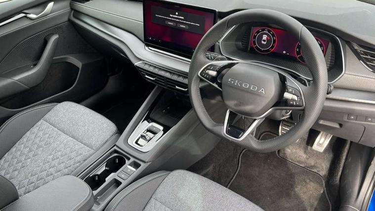 1x USB Typc C port in rear view mirror, 4x USB Type C ports - 2x in front centre console and 2x in rear (45W), Drive mode selection, Driver fatigue sensor, eCall emergency system, Front assist system, Front cross traffic assist, Progressive dynamic steering, Traffic sign recognition, Turn Assist, Virtual Cockpit - 10.25" digital display, Voice control system, Wireless charging (15W) with cooling function, Wireless SmartLink for Apple CarPlay and Android Auto, Sports suspension with 15mm lower, 13" touchscreen display with navigation, DAB Digital radio, Aero front windscreen wipers with intermittent function, Auto dimming rear view mirror, Body colour bumpers, Body colour door handles, Chrome strip in lower front bumper, Electric front and rear windows, Exterior gloss black sports styling including front grille, window surrounds, door mirrors and badging, Gloss black diffuser, Gloss black spoiler, Heated rear windscreen, High beam control, High level third brake light, Ice scraper in fuel cap, LED daytime running lights, Logo projection in front doors, Rain and light sensors, Rear fog light on both side and reversing lights on both sides, Rear privacy glass, Rear side wing doors, 12 volt socket in boot, 3 rear headrests, 3 seat bench in 2nd row, 4 foldable roof handles, Aluminium pedals, Boot net programme, Front head restraints, Front sport seats, Heated front seats, Illuminated glovebox, Interior door handles in dark chrome, Jumbo Box storage, Luggage compartment lighting x2 lights, Mechanical rear seat release from boot, Parcel shelf - folding, Single front passenger seat, Steering wheel in black leather with black stitching, Storage compartments in left and right of boot, Sun visors with mirrors, Sunglasses storage, Three spoke leather sports multifunction steering wheel with paddles, Ticket holder, Umbrella in door panel, Unsplit rear bench seat, split folding backrest with centre armrest with cupholder, SportLine Design Selection pack - Octavia, 3x3 point rear seat belts, Alarm with interior monitoring, tilt sensor and back up horn, Curtain airbags and front side airbags, Driver and front passenger airbags, Drivers knee airbag, Electronic parking brake, ESC including ABS, EBV, MSR, ASR, EDS, HBA, DSR, Front central airbag, Hill hold assist, ISOFIX on front passenger seat and outer rear seats, Passenger airbag deactivate switch, Three point seat belts in front and rear, Two tone horn, Tyre pressure monitor, Visual and acoustic seat belt reminder, Warning reflectors in front door, Anti-theft wheel bolts, Keyless entry and start/stop, Remote central locking, Gloss black air vent surrounds,