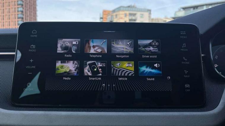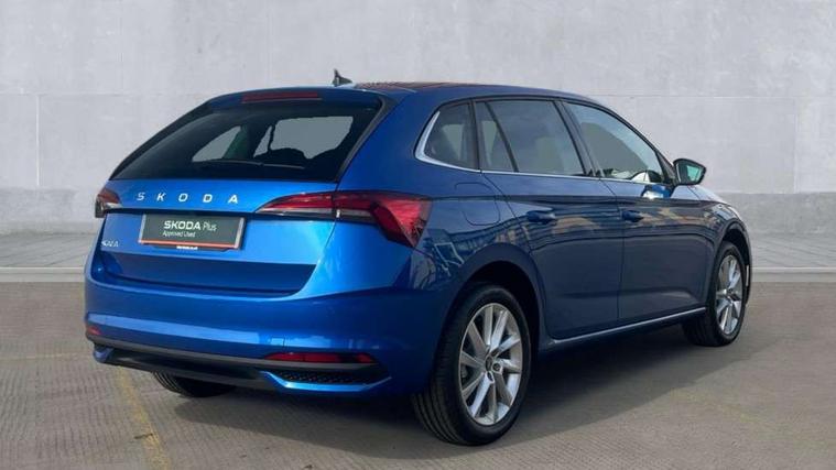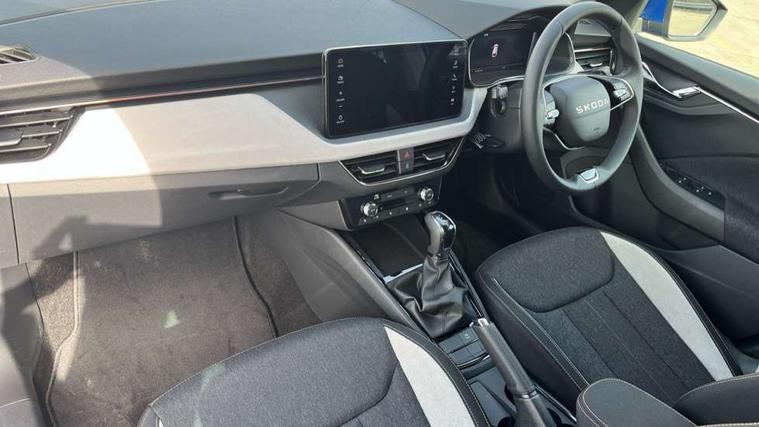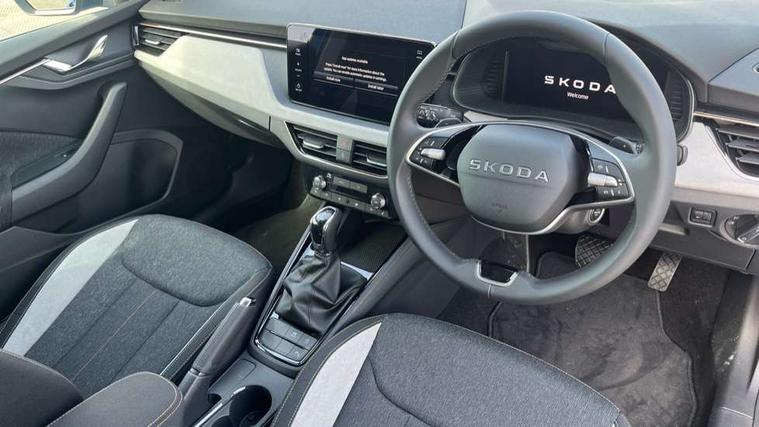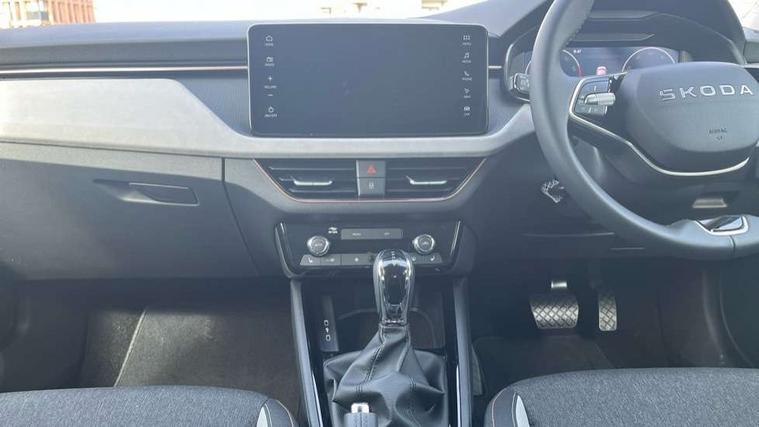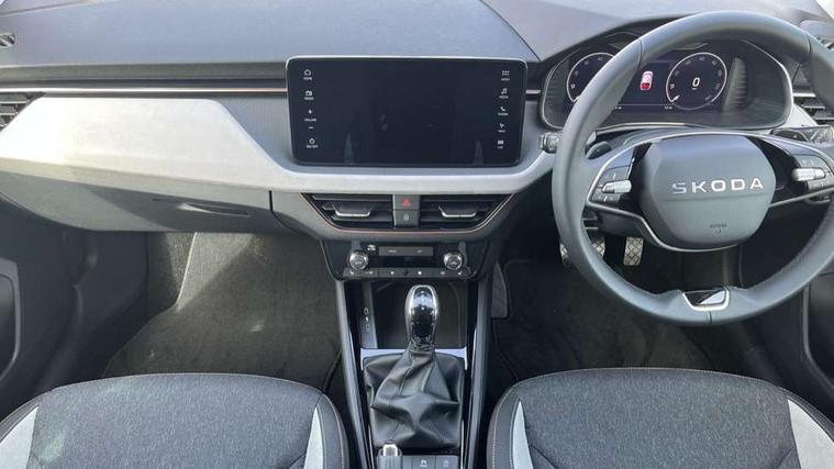Advanced driver attention and drowsiness monitor, Bluetooth, e-Call (emergency call), Front assist system, PAS, Rear parking sensors, Rear view camera, Speed limiter, Tailgate, Traffic sign recognition, Virtual Cockpit - 10.25" digital display, Voice control system, Wireless smartlink, 4 USB C ports, 9.2" Skoda navigation display, DAB radio, Auto dimming rear view mirror, Automatic headlight control with manual coming and leaving home feature, Automatic intermittent wipers, Body colour bumpers, Body colour door mirrors and handles, Chrome moulding around grille, Chrome window frames, Front and rear electric windows, Heated rear window, LED 3rd brake light, LED daytime running lights, LED high beam, LED low beam, Light sensors, Privacy glass, Rear LED fog light, Rear side wing doors, Rear wiper, Tinted windows, Unique dark chrome design logo on alloy wheels, 12V socket in luggage compartment, 3 seat bench in 2nd row, Ambient lighting in white/red, Black / Copper armrest stitching, Cargo elements, Chrome inner door handles, Copper hotstamping, Door inserts in accent black, Driver and passenger sun visors with vanity mirror, Dual zone climate control, Front and rear roof lights, Front centre armrest, Front head restraints, Glasses storage in roof liner, Height adjustable driver seat, Height adjustable passenger seat, Ice scraper, Illuminated glove compartment, Inner circulation control with pollen filter, ISOFIX for front passenger seat, Isofix preparation for back seats, Leather gearknob and handbrake lever, Lodge cloth upholstery, Luggage net under rear parcel shelf, Manual lumbar support for front seats, Net package and top tether hooks in boot space, Pocket on the back of both front seats, incl. mobile phone pockets, Rear centre armrest, Single front passenger seat, Skoda lettering on steering wheel, Textile floor mats, Third rear headrest, Ticket holder, Top tether for front passenger seat, Umbrella in driver's door, Convenience pack without rear camera - Scala, 3x3 point rear seatbelts, ABS, Child locks, Curtain airbags and front side airbags, Disc brakes, Driver and front passenger airbags, ESP, Hill hold control, Manual leather parking brake, One tone horn, Passenger airbag switch off function, Seatbelt reminder for driver and front passenger, Tyre pressure monitoring system, Anti theft alarm system with interior monitoring, backup horn and towing protection, Anti-theft wheel bolts, Remote central locking with 2 remote folding keys, SAFE function for remote central locking, Decorative inserts,