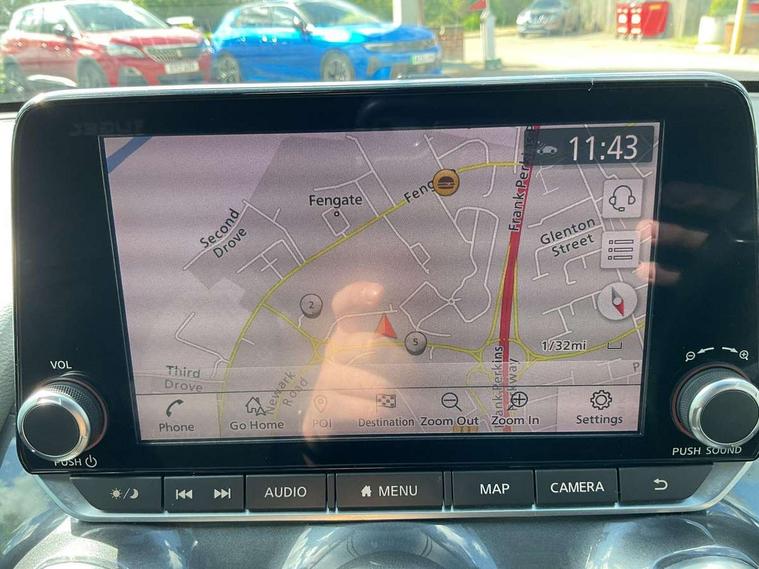 7" full colour TFT screen combimeter, 8" infotainment colour display with touch screen, Apple CarPlay and Google Android auto, Drive modes select (Eco, normal and sport), Emergency and breakdown call, Front parking sensor, Idle start/stop system, Intelligent lane intervention, Lane departure warning system, Nissan connect nav with TomTom traffic, Nissan connect services and Wifi connection, Outside temperature sensor, Power Steering, Rear parking sensor, Traffic sign recognition, Trip computer, Gasoline particulate filter, 6 speakers, Bluetooth system, USB, Aux-in and 12V socket, DAB Digital radio, Rear console USB port, Auto dimming interior rear view mirror, Automatic hazard signal with emergency stop signal, Body colour bumpers, Body colour door handles, Electrically adjustable door mirrors with integrated indicators, Follow me home headlights, Front and rear electric window with one touch driver and passenger window, Heated and auto folding door mirrors, High beam assist, LED daytime running lights, LED front fog lights, LED headlamps, LED rear fog lamp, LED rear lamps, Rain sensor windscreen wipers, Rear privacy glass, Rear spoiler, Rear wiper, Three blink turn signal, 3 height adjustable rear headrests, 60/40 split folding rear seat, Automatic climate control, Card holder on driver sunvisor, Cloth upholstery, Door ambient lighting, Driver and passenger sliding and reclining seats, Driver seat back pocket, Driver side rear coat hanger, Driver/passenger sunvisors and illuminated vanity mirrors, Front and rear cabin lights, Front armrest, Front door pockets with bottle holders, Front head restraints, Front/rear passenger grab handles, Gear console ambient circle lighting, Grey synthetic leather kneepad, Height adjustable driver's seat, Internal chrome door handles, Leather gearshift knob, Leather steering wheel, Luggage board, Luggage space lighting, Monoform sporty seats, Multifunction steering wheel, Passenger seat back pocket, Rear door bottle holders, Steering wheel mounted gearshift paddles, Telescopic steering wheel adjustment, Two cupholders in front centre console, Two rear isofix child seat anchorage points with top tether, Voice recognition switch on steering wheel, Welcome light and console tray ambient lighting, ABS with EBD and brake assist, Active ride control, Active Trace Control, Driver and passenger airbags, Driver and passenger side airbags, Electric handbrake with auto hold function, Electronic Stability Programme (ESP), Front and rear curtain airbags, Height adjustable seatbelts, Hill start assist, Intelligent emergency braking with pedestrian and cyclist recognition, Seatbelt reminder for driver/front passenger and rear seats, Single tone horn, Three 3 point rear seatbelts, Traction control, Tyre pressure monitoring system, VDC Dynamic Vehicle Control, Ventilated rear brake discs, Alarm, Immobiliser, Intelligent Key with push button starter, Remote central locking,