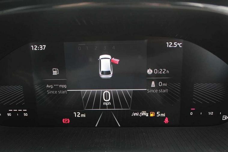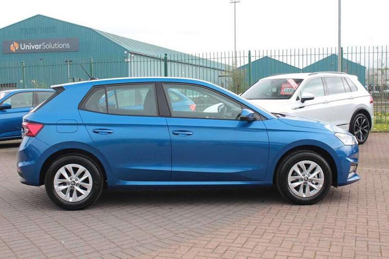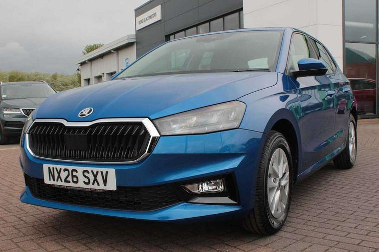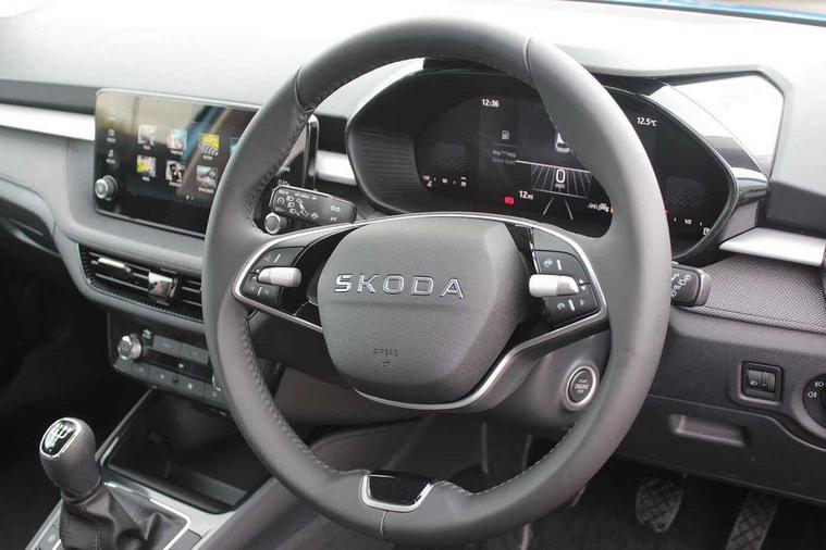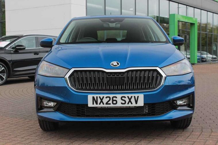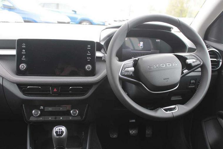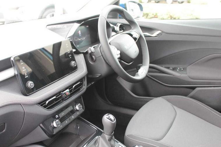 8" Digital instrument display, Advanced driver attention and drowsiness monitor, Bluetooth connection, Driver alert system, Electromechanical power steering, Exterior temperature gauge, Rear parking sensors, Service interval indicator, Traffic sign recognition, Wireless SmartLink for Apple CarPlay and Android Auto, 6 Speakers (4 in front and 2 in rear), 8.25" Skoda infotainment touchscreen display, Auxiliary socket for external MP3 player, DAB digital radio reception, Auto dimming rear view mirror, Body colour door mirrors, Body coloured bumpers, Door mirror integrated indicators, Front and rear electric windows, Front window wiper intermittent control, Headlight range control - Automatic, LED 3rd brake light, LED daytime running lights with coming and leaving home feature, LED rear lights, Rear LED fog light, Rear side wing doors, Rear window wiper with washing nozzles, Roof mounted spoiler, SKODA tailgate lettering in chrome, Unique dark chrome design logo on alloy wheels, 2 reading lights in front and 2 reading lights in rear, 3 rear headrests, Backrest split and folding, Central console with removable cup holder and storage box, Chrome handbrake release button, Dual zone air conditioning with climatronic electronic control, Fabric upholstery, Front centre armrest, Gearshift knob/handle in leather, Grain satin black interior door handles, Hand brake lever handle in leather, Height adjustable front headrests, Height adjustable front seats, Height adjustable steering wheel, ISOFIX and TopTether anchorage points to the outer rear seats, ISOFIX and TopTether on the front passenger seat, Luggage compartment lighting, Manually adjustable lumbar support in front seats, Pollen filter, Rear seat bench unsplit, Single front passenger seat, Skoda lettering on steering wheel, Storm grey headlining, Sun visors with mirror and airbag label on passenger side, Textile floor mats, Ambient lighting pack - Fabia Hatchback, 3-point height adjustable front seats belts with pretensioner and force limiter, Automatic warning lights in case of crash, Driver and passengers airbag with switch off function, e-Call+, ESC including ABS, MSR, ASR, EDS, HBA and XDS, Front and rear seat belt warning, FRONT ASSIST (AEB City and AEB Inter Urban), Front side airbags, Head airbags, One tone horn, Pedestrian protection, Three rear 3-points safety seat belts with pretensioner and force limiter including stop function for outer rear seat belts, Tyre pressure monitoring system, Anti-theft alarm system including immobiliser, interior monitoring, backup horn, and towing protection, Central locking with radio remote control, interior controls, SAFE function and 2 foldable keys, KESSY - Keyless engine start/stop, Black painted air vents, Grain satin black central console cover, Metallic grey upper decorative trim, Satin black door and side trim panel in front, Textile Kota grey lower decorative inserts, Anti-theft wheel bolts protection, Super-low rolling resistance tyres,