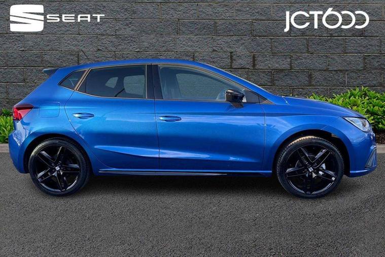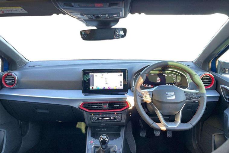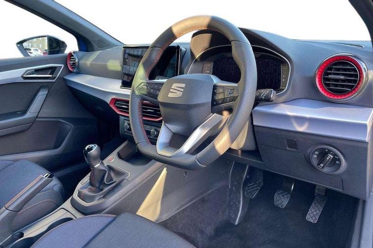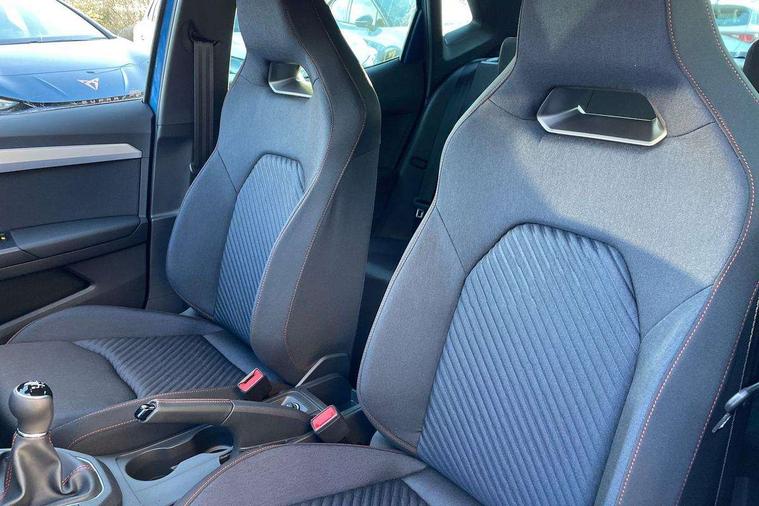 'Lights On' Reminder warning buzzer, 10" Digital cockpit, 9.2" touchscreen navigation system with type C USB socket, Voice control and DAB/AM/FM radio, Auto start and stop system, Bluetooth audio streaming with handsfree system, Digital clock, E-call, Full link smartphone integration with mirror link, wireless apple carplay, Google android auto + USB Type C cable for apple and android devices, Lane assist, Low fuel warning light, Outside temperature gauge, Power Steering, Rear parking sensor, Seat connect plus with safety, service, remote and online, SEAT logo boot release, Speed limiter, Traffic sign recognition, Trip computer, Sports suspension, Auxiliary input socket, Radio/MP3 player, SD card slot, Steering wheel mounted controls, Anti theft roof antenna, Auto dimming rear view mirror, Automatic rain sensing wipers, Black door mirror caps, Black roof spoiler, Black side skirts, Body colour bumpers, Body colour door handles, Brilliant black window surrounds, Dark tinted rear windows, Electric adjustable/heated/folding door mirrors, Electric front windows, Electric headlight adjustment, Electric panoramic sunroof, Electric rear windows, Front/rear fog lights, FULL LED automatic headlights with dynamic headlight range control, coming and leaving home, LED daytime running lights, LED 3rd brake light, LED tail lights, Rear roof spoiler with FR twin exhausts, Rear side wing doors, Rear wiper, 3 seat bench in 2nd row, 60/40 split folding rear seat, Ambient interior lighting, Chrome detailing and black headlining, Dual zone climate control with combination filter, Front courtesy lights, Front cupholders x 2, Front reading lights, Front sport bucket seats, Gear shift indicator, Glovebox, Heated front seats, Height adjustable front and rear headrests (five), Height adjustable front seats, Height/reach adjust steering wheel, Illuminated air vent surrounds, Illuminated boot, Instrument lighting with brightness control, Isofix, Leather multifunction flat bottomed sports steering wheel, Microsuede cloth upholstery, Passenger sunvisor, Single front passenger seat, Storage pockets on back of front seats, Sunvisors with mirror and driver side card holder, Safety and driving pack (S) - Ibiza, 3 point seatbelts on all 3 rear seats, ABS, Active front headrests, Child locks on rear doors, Electronic stability control, Energy recovery system, Front driver and passenger side airbags with curtain airbag and front passenger airbag deactivation, Hill hold control, Multi-Collision braking, Seat belt reminder for front and rear seats, Tiredness recognition system, Tyre pressure monitoring system, KESSY Keyless entry and go, Locking wheel bolts, Perimeter alarm and interior monitoring with backup horn and tow away protection, Remote central locking + deadlocks, 18" Performance alloy wheels in glossy black,
