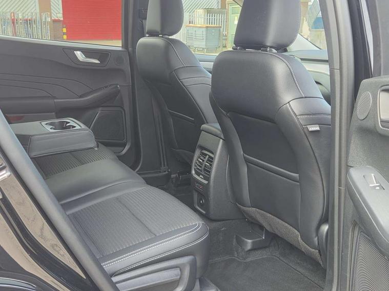 12.3" digital colour instrument cluster, Ford easy fuel, Ford SYNC 3 with 8" TFT LCD touchscreen, App Link, andriod auto/apple carPlay, emergency assistance and navigation with Ford pass connect, Front and rear parking sensors, Hands free power tailgate, Lane keeping aid with lane departure warning, Power assist steering, Rear view camera, Selectable drive modes, Service interval indicator, Standard suspension, Twist beam rear suspension, B&O premium audio system with 10 speakers and subwoofer, 2 USB ports, DAB radio/CD, Auto dimming rear view mirror, Auto headlamps with high and low beam, Auto wipers, Front LED fog lamps, LED daytime running lights, LED rear lights, Power folding heated door mirrors with puddle lights, Power front/rear windows with global close, Privacy glass, Quickclear heated windscreen, Rear side wing doors, Rear spoiler, Rear wiper, Silver roof rails, Third brake light, Twin exhausts, 10 way power adjustable drivers seat, 2nd row sliding seats with 60:40 split, 8 way manual passenger seat including lumbar support and height adjust, Ambient lighting, Centre console with electronic parking brake, Electronic automatic temperature control (EATC), Front and rear floor mats, Front and rear head restraints, Partial premium touch sensico leather upholstery with black cloth inserts, Rear charging point, Single front passenger seat, Sports seats, 3x3 point rear seatbelts, Airbags - front driver/passenger, front and rear curtain, Drivers knee airbag, Electronic stability control (ESC) and ABS, Ford MyKey Gen 2 safety system, Manual child proof rear door locks, Post collision braking, Pre collision assist with autonomous emergency braking, Rear seat Occupancy alert, Tyre pressure monitoring system, Engine immobiliser, Keyless entry and Ford power start button (Keyless start), Locking wheel nuts, Remote powered central double locking doors, Thatcham category 1 alarm, 18" 5x2 spoke magnetic and machined finish alloy wheels,
