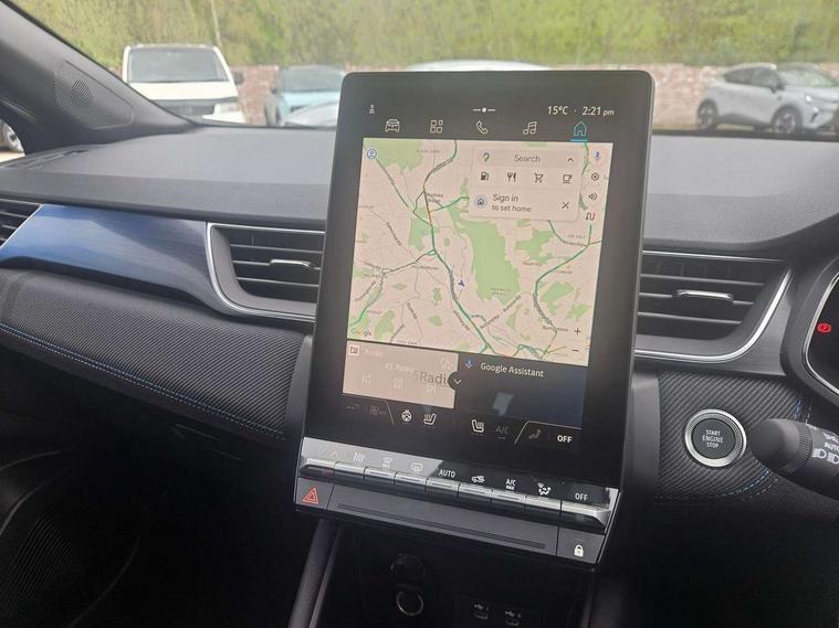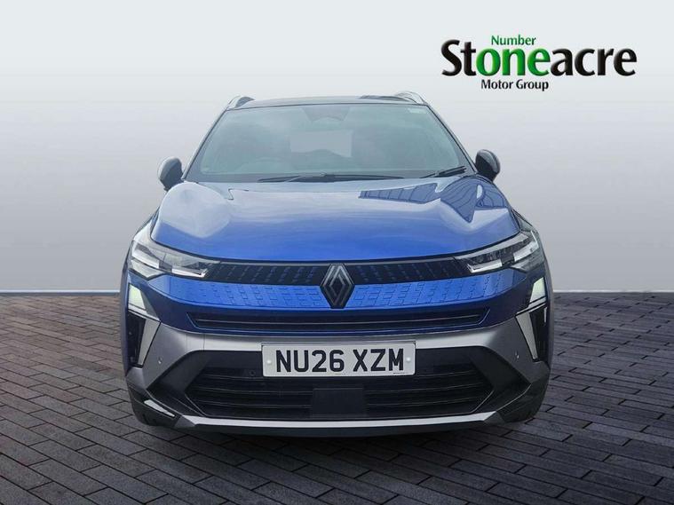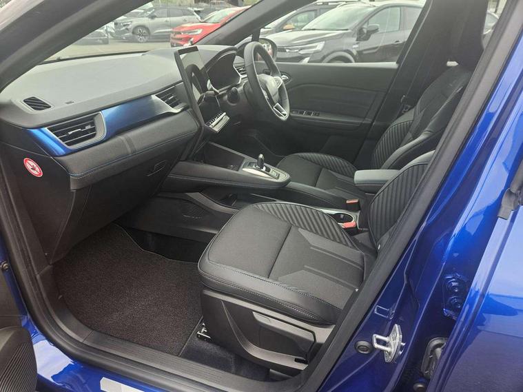 10.25" digital driver display, 10.4" OpenR link touchscreen with with built in Google Automotive Services and navigation, Active driver assist including intelligent contextual adaptive cruise control + lane centering, Blind spot recognition and rear detection, Driver attention alert system, Driver drowsiness alert system, e-Call automatic emergency assist, Emergency lane keep assist including solid line, oncoming traffic and road edge detection, Engine start button, Front and rear parking distance sensors, Front safe stopping distance warning, Intelligent speed assistance include traffic sign recognition with speed alert, Lane departure warning system, Multisense with 4 driving modes and upto 48 ambient lighting colours, Navigation system with built in google maps, Outside temperature display, Performance mode selector - multisense 4 driving modes (sport, comfort, perso and eco), Power assisted steering, QR code fireman access for technical information, Rear cross traffic alert with rear active emergency braking system, Rear view camera, Service interval indicator, Side parking sensors, Trip computer, Voice control for navigation system with built in google assistant, Wifi smartphone integration compatible with Apple CarPlay and Android Auto, Wireless phone charger, Speed limiter 111mph, 2 front USB-C ports, 2 rear USB-C ports, 6 speakers inc 2 boomer + 2 tweeter + 2 bicone, DAB radio with Bluetooth, 2 reversing lights, Auto dimming rear view mirror with light and rain sensor - frameless, Automatic front wipers with rain sensors, Automatic headlights, Automatic high/low beam, Body colour door handles, Body coloured bumpers, Body coloured door mirrors, Chrome around front air deflectors, on front wing deco element and window lining, Dark tinted glass in rear windows and tailgate, Diamond black contrasting roof, Drivers one touch window with anti-pinch feature, Electrically folding door mirrors, Flush and longitudinal roof bars, Front and rear electric windows, Full LED front and signature rear lights, Gloss black window frame, Heated door mirrors, Heated rear windscreen, LED daytime running lights, LED high level brake lights, LED rear fog lights, LED turn indicators on door mirrors, Matt grey F1 blade, Radiator grille with 3D graphic black upper part with body tone graphics, Rear side wing doors, Rear wiper, Shark fin antenna, 12v power outlet - front, 2 front roof LED lights and central rear roof light with 3 reading LED lights, 3 bench rear seats in 2nd row, Aluminium sports pedals, Automatic air conditioning with one touch demist function and air quality regulator, Driver and front passenger seat with electric height adjustment, Esprit alpine interior styling, Flying console with central storage, sliding armrest and 2 rear air vents, Front head restraints, Glovebox, Heated front seats, Heated steering wheel, Heating system with pollen filter, Height/reach adjust steering wheel, ISOFIX child seat fixing points on rear outermost seats, Jacquard Madama fabric upholstery, Modular boot floor, Multifunctional steering wheel, Rear head restraints, Rear seats - 1/3:2/3 foldable sliding bench, Single front passenger seat, Sunvisor with mirror and light, Synthetic leather steering wheel, 3 rear seatbelts, ABS+EBA, Active emergency braking system - Urban, pedestrian/cyclist with junction function, Blue trim seatbelts on front seats and outermost rear, Collision avoidance braking, Distance warning alert, Driver and front passenger airbags, Driver and front passenger and 3 rear passengers seatbelt reminder, Driver height adjustable seat belt, Electric parking brake with auto hold function, Electronic stability control, Front dash warning indicator in case of heavy braking, Front driver and passenger side airbag deactivation, Hill start assist, Manual passenger airbag deactivation function, My safety shield - ability to personalise ADAS features at press of a button, Occupant safe exit, Outer rear safety seat belts, Rear door and window child locking function for rear door, Side airbags, Tyre pressure warning light, Vehicle sound for pedestrians, Alarm, Hands free keycard with Keyless access and start, Immobiliser, Locking fuel cap, Locking wheel nuts, RAID (Renault Anti-Intruder Device) automatic door locking, Remote central locking, Superlocking, Black soft touch dashboard, Brushed blue decorative upper strip, Lower textile strip on dashboard with red, white and blue flag, 19" esprit Alpine Elixir alloy wheels,