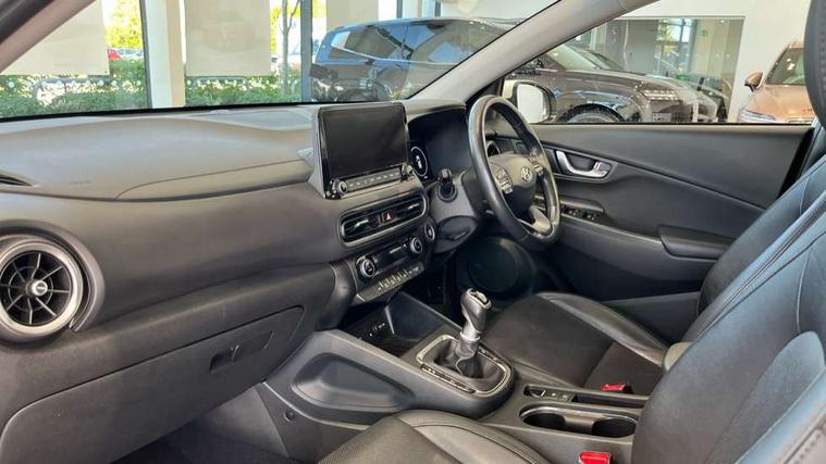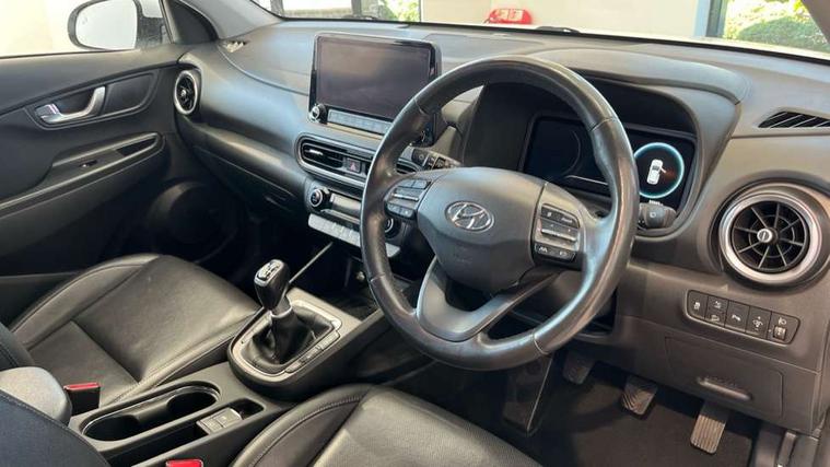Trailer wiring package - Kona, 18" alloy wheels, Alarm/immobiliser, Deadlocks, Folding key, Locking wheel nuts, Remote central locking, Smart key with keyless entry and engine start/stop button, Front and rear USB ports, Krell premium audio system with 8 speakers including external amplifier and subwoofer, RDS and Digital DAB, Steering wheel mounted audio/phone controls, Airbags - front, front side and curtain airbags, Anti-lock brake system, Childproof rear door locks, Downhill brake control, EBD + Brake Assist, Electric parking brake, Electronic stability control, Fasten seatbelt reminder, Fixed 3 point for second row centre passenger seatbelt, Front seatbelt pretensioners, Height adjustable front seatbelts, Hill start assist control (HAC), Passenger airbag deactivate switch, Rear seat alert, Traction control, Tyre pressure monitoring system, Auto dimming rear view mirror, Automatic headlights with dusk sensor, Automatic windscreen wipers with rain sensor, Body colour door mirrors and handles, Door mirror integrated indicators, Electric front/rear windows with drivers one touch/anti-trap, Electric tilt/slide glass sunroof, Electrically adjustable and heated door mirrors, Front fog lights, LED daytime running lights, LED Headlights, LED rear lights, Painted anthracite body garnish, Positioning Lights - LED, Power folding door mirrors, Privacy glass - Rear windows and tailgate, Rear skid plate - silver, Rear spoiler with integrated LED brake light, Rear wiper, Roof rails, Solar glass with front door glass and windscreen shade band, Windscreen auto defog function, 12V power outlet in front console, 60/40 split folding rear seat, Adjustable head restraints, Air conditioning climate control, Ambient lighting, Centre interior light, Door scuff plate, Driver and passenger front seat pockets, Driver's seat electric adjustments, Driver's seat electric lumbar support, Driver/passenger sunvisors and illuminated vanity mirrors, Front interior light, Front passenger's seat electric adjustments, Heated front seats, Heated rear seats, Heated steering wheel, Height/reach adjustable steering column, Isofix rear child seat fastenings, Leather upholstery, Leather wrapped steering wheel and gear knob, Luggage compartment lighting, Luggage hooks, Luggage net, Metal paint effect interior door handles, Parcel shelf, Rear centre armrest, Rear centre console with air vents, Sunglasses holder, Ventilated front seats, Vertical adjustment rear head restraints, 10.25" touchscreen centre console display satellite navigation with live services and mapcare, Blind spot Collision Warning (BCW), Bluetooth connectivity, Cruise control + speed limiter, Digital clock, Driver attention warning, Driver supervision instrument cluster with 10.25" LCD display, eCall emergency call system, Forward collision avoidance assist with pedestrian detection, Front parking sensor, Head up Display, Intelligent speed limit warning, Lane follow assist, Lane keep assist, Leading vehicle departure alert (LVDA), Parking system with rear camera and guidance system, PAS, Phone connection with apple carPlay and android auto, Rear cross traffic collision warning (RCCW), Rear parking sensor, Roadside assistance, Safe exit warning (SEW), Windscreen washer fluid sensor and warning indicator, Wireless phone charging pad, 6 speed intelligent manual transmission,