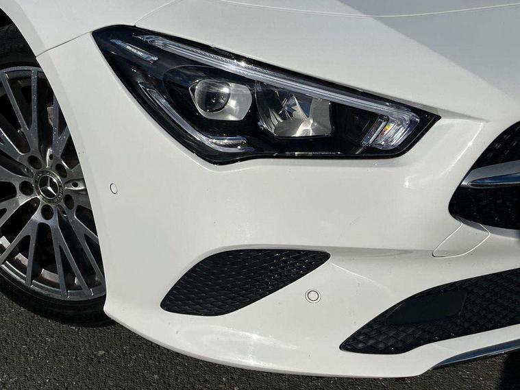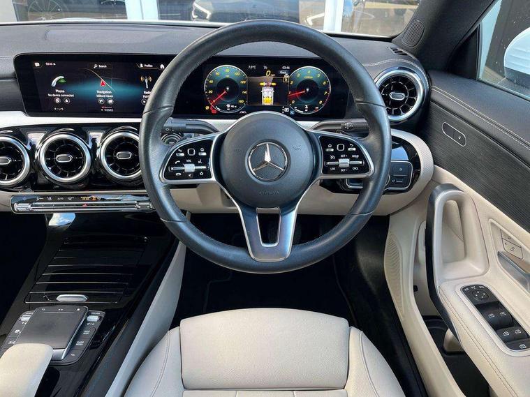 10.25 inch Instrument display with digital cockpit, 10.25 inch touchscreen central media display, Active lane keeping assist, Attention assist - Monitors steering behaviour and long journey fatigue, Bluetooth connection, Car wash mode, Cruise control with limiter, Direct steer system with speed sensitive power steering, DYNAMIC SELECT with a choice of driving modes (ECO, Comfort, Sport and Individual), ECO start/stop function, Fluid level warning indicator for fuel, oil, coolant and washer fluid, Hard-disk navigation, Hey Mercedes Voice activation, Lamp failure indicator, Mercedes me connect including emergency call system, accident recovery, breakdown and maintenance management, Mercedes me remote services, Outside temperature gauge, Owners manual and service booklet in English, Pre-installation of private car share, Preinstallation for Mercedes Benz link, Radio aerial integrated into front and rear windshields, Service indicator (ASSYST), Smartphone integration with Apple CarPlay and Android auto, Speed limit assist, Trip computer in multifunction display with current consumption indicator, Lowered comfort suspension, Rear axle multi-link, DAB digital radio tuner, MBUX multimedia system, Mercedes Benz sound system (100 W) with 6 speakers, USB (type C) ports (2) in stowage compartment and 1 in front of centre console, Adaptive brake lights, AMG bodystyling side skirts, Body colour bumpers, Body colour door handles, Chrome beltline strips, Diamond radiator grille pins in chrome, Electric windows, Electrically adjustable and heated door mirrors with integrated LED indicators, Exhaust system with 2 Visible tailpipe trim elements and rear apron with trim in chrome, Headlamp assist automatic headlamp activation, Heated glass rear windscreen + timer control, High level LED third brake light, Interior mirror with black reading lamps and frameless, LED high performance headlamps with integrated LED daytime running lights, LED tail lamp, Privacy glass with dark tinting on rear side windows and rear window, Progressive body-styling - Front apron with trim strip in chrome, visible tailpipe trim elements and rear apron with trim strip in chrome, Rain sensing windscreen wipers with two sensitivity settings, Rear boot, Rear fog lamp, Rear side wing doors, Variable front intermittent wipers, Window line trim strip in chrome, 3 seat bench in 2nd row, 40:20:40 split folding rear seat backrests, Air condition air vents with surround in silver chrome, Air conditioning - Two zone thermotronic luxury automatic climate control with display, Artico man-made leather upholstery, Automatic child seat recognition sensor, Black roof lining, Brushed stainless steel sports pedals with rubber studs, Comfort seats, Front centre armrest with stowage, Front head restraints, Heated front seats, Illuminated glove compartment stowage, Leather multifunction sports steering wheel with black topstitching and bezel in silver chrome, Luggage net on driver/front passenger seat backrest, Manually adjustable front seats, Manually height and reach adjustable steering column, Rear head restraints, Single front passenger seat, Steering wheel gearshift paddles, Stowage compartment in centre console with retractable cover, Sunvisors with illuminated vanity mirrors, Touchpad on center console, Twin front cupholders, Two outer rear seat isofix and top tether child seat fixing points, Velour floor mats, Light and sight pack - CLA, Mirror pack - CLA, Parking package - CLA, Seat comfort pack - CLA, Active bonnet pedestrain safety measure which detects an impact and raises bonnet by 65mm, Active brake assist includes forward collision warning system with autonomous braking, Adaptive brake assist with hold function and hill start assist, Anti lock braking system (ABS) with brake assist, Black seat belts, Bonnet with power domes, Brake pad wear warning indicator, Childproof locks manually operated for rear doors and electrically operated for rear power windows, Crash responsive emergency lighting, Driver and front passenger head and sidebags, Driver and front passenger windowbags, Drivers knee airbag, Dual stage driver and front passenger airbags, Electric parking brake, Electronic stability programme with acceleration skid control, ESP curve dynamic assist, Front and rear seatbelt reminder, Front passenger seat occupancy sensor, Three point rear seat belts, Tyre pressure monitoring system, Warning triangle and first aid kit, Guard 360 degree guard vehicle protection system with immobiliser and interior protection, Keyless Go starting function, Remote central locking and crash sensor with emergency opening function, Black open-pore linden wood trim, 18" multi-spoke himalayas grey painted light alloy wheels with high sheen rim finish, Sport tyres, Tirefit tyre sealant kit,