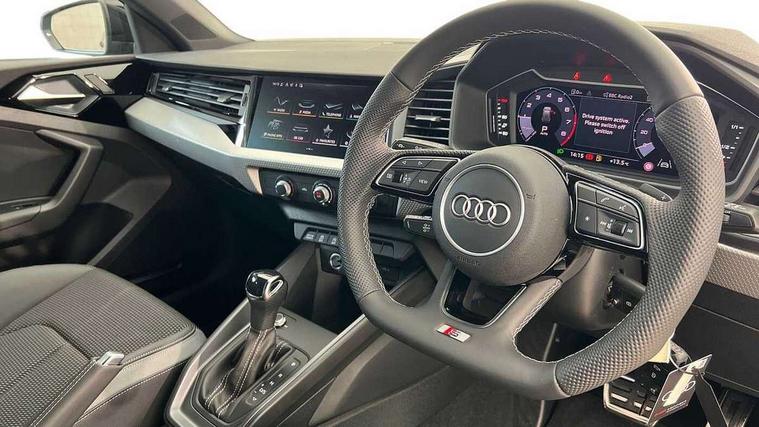 10.25" Digital instrument cluster display classis style instrument dials + speed, odometer, time, outside temperature, telephone menu + fuel level warning, Advanced driver attention and drowsiness monitor, Audi connect emergency call and service, Audi drive select, Audi remote connect and control, Bluetooth interface, Camera based traffic sign recognition, Cruise control, Driver's information system, Electromechanical power steering, Lane departure warning system, Rear parking sensor, Service interval indicator, Smartphone interface, Speed limiter, Start stop system with recuperation, Voice control system, Washer fluid level indicator, Sports suspension, 2 x USB type C connection points, 6 loudspeakers, DAB Digital radio, MMI radio plus with 10.1" colour MMI display screen and MMI touch, Auto dimming rear view mirror, Black door mirror housings, Black side skirts, Body coloured bumpers, Door sill trims with aluminium inlays and logo, Electric front and rear windows, Electrically adjustable, heated, folding door mirrors with integrated LED side indicator, Front side air inlets in grained matt black and C frame in anthracite black, Front wing badges, Headlight cleaning system, Heat insulating glass windscreen and side windows, Heated rear windscreen, High level LED brake light, LED daytime running lights, LED headlights with range control LED rear lights + dynamic rear indicators, Light and rain sensors, Privacy glass, Radiator grille and rear diffuser in matt anthracite black, Radiator protective grille frame in matt aluminium silver, Rear fog lights, Rear side wing doors, Rear wiper, Side front spoiler lips in grained matt black, 12V socket in centre console with two cup holders, 3 rear seats with headrests, 3 seat bench in 2nd row, 3 spoke flat bottomed multi-function plus leather steering wheel with S badging, grips in preforated leather, contrast stitching and paddle shift, 40:60 Split folding rear seat or fully collapsed, Black carpets, Black cloth headlining, Front and rear velour black floor mats with contrast stitching in fine silver, Front head restraints, Front passenger seat, Height and reach adjustable steering wheel, Interior lighting includes roof module, front and rear reading lights and right luggage compartment lighting, ISOFIX child seat mounting for front passenger and outer rear seats including top tether attachment point of outer rear seats, Leather gear knob with aluminium trim, Leather handbrake grip, Manual air conditioning, Manual height adjustable for driver and front passenger seat, Manually adjustable lumbar support in front seats, Stainless steel pedals, Ambient lighting package - A1, Black styling pack - A1 Sportback Black Edition, Luggage compartment pack - A1, 3x3 point rear seatbelts, Audi pre-sense front with pedestrain and cyclist recognition, Brake assist function, Driver and front passenger airbag with front side and head airbags, Electronic Stability Control including ABS, EBD, ASR and EDL, Front passenger airbag deactivation switch, Hill hold assist, Manual rear child locks, Seatbelt height adjustment for front seats, Seatbelt monitoring, Tyre pressure loss indicator, Warning triangle and first aid kit, Anti theft alarm, Anti theft wheel bolts, Immobiliser, Remote control key with safelock, Aluminium trim for control switches, air vents and digital instrument cluster, Black dashboard, Silver grey inlays polygon structure in diamond paint finish, Structured grey accent surfaces insert of air vents, interior door handle recesses and centre console in quartz paint finish,