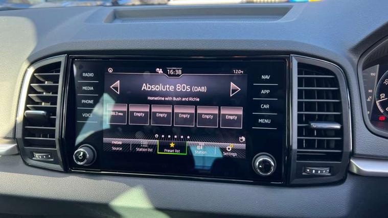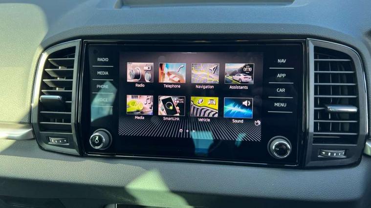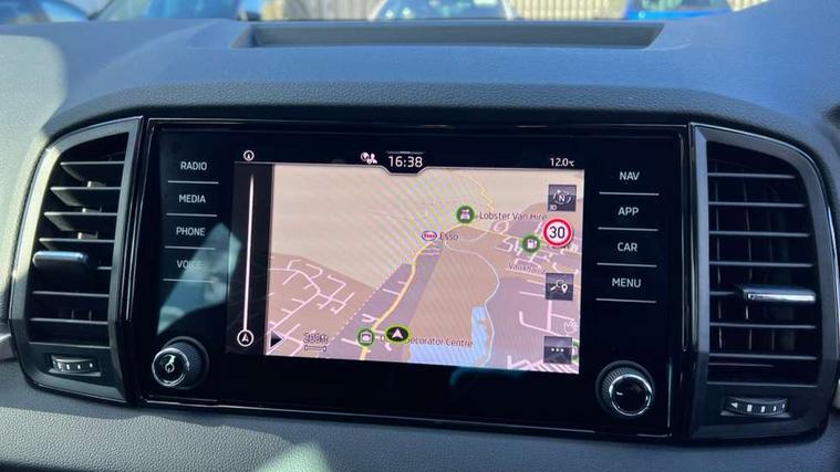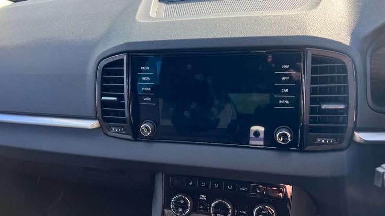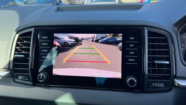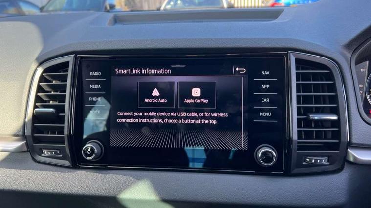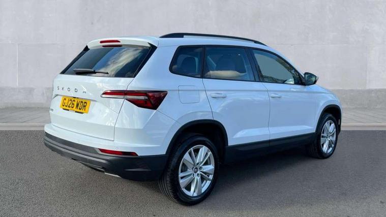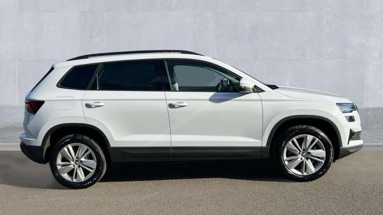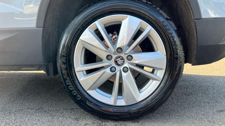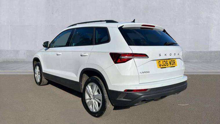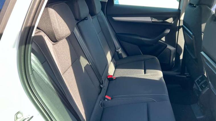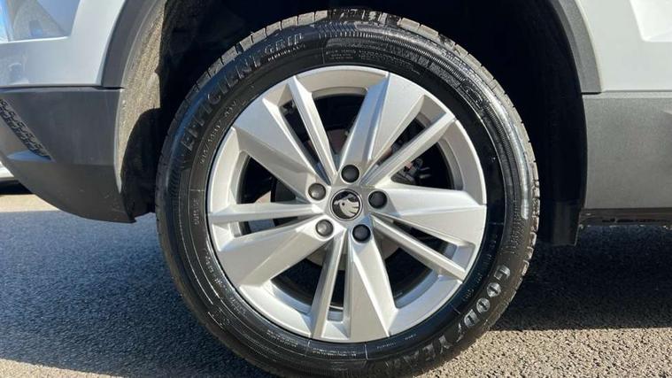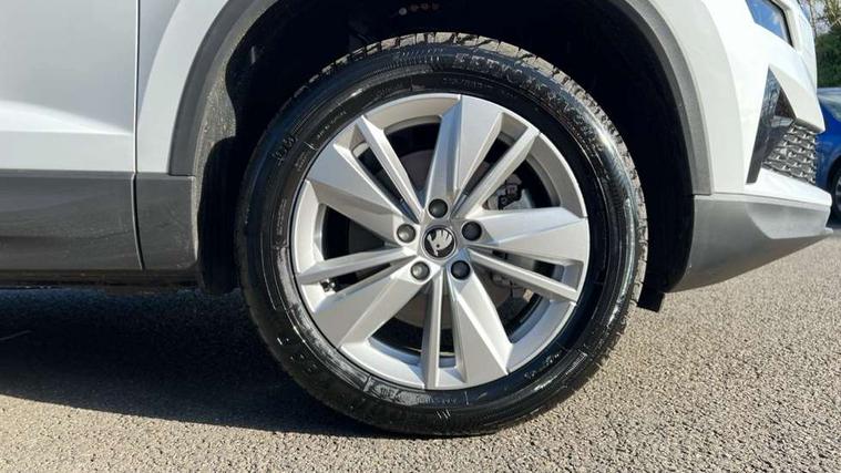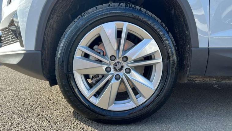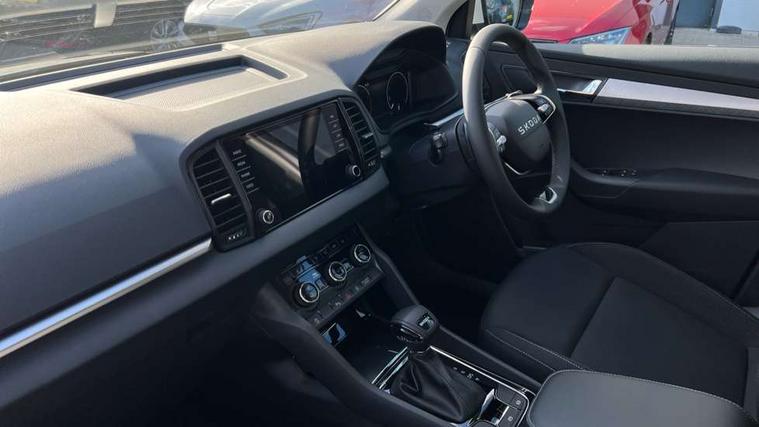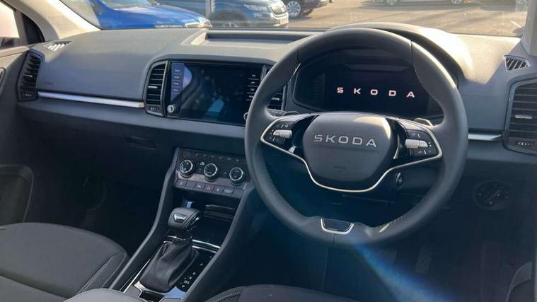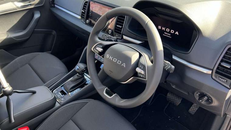 Amundsen navigation system with 8" touchscreen display and integrated WLAN and web radio, Electro-mechanical PAS, Emergency services call system, Interior driver monitoring camera, Lane assist, Multifunction camera for driver assistance system, Outside temperature gauge, Sensor for driver assistance systems, Service interval indicator, SmartLink wireless for Apple and wired for Android, Start/stop system with regenerative braking, Traffic sign recognition, USB C Port x 2 in front centre console, Virtual Cockpit - 10.25" digital display, Wireless smartphone charging, 8 Speakers, DAB radio with Bluetooth, USB connection, Acoustic glass, Aero front windscreen wipers with intermittent function, Auto dimming rear view mirror with light and rain sensors, Black electric window control buttons, Body colour door mirrors and handles, Electric front and rear windows with child proof lock, Electrically adjustable heated folding and auto dimming door mirrors, Front fog lights, Headlight range control, Heated rear windscreen, LED daytime running lights, LED Headlights, LED rear lights with high functionality welcome effect and dynamic indicators, Light assistant (coming/leaving home/tunnel light), Plastic scuff plates in door apertures, Privacy glass, Rear side wing doors, Rear window wiper with washer system and intermittent control, Safety reflectors on front doors, Third brake light, Unique dark chrome design logo on alloy wheels, 1.5 litre bottle holders in driver and front passenger door panels, 12V socket in boot, 12v socket in front centre armrest with storage compartment and rear air vents, 2 spoke leather heated multifunction steering wheel with DSG paddles, 2 x Tablet holder, 3 rear height adjustable headrests, 3 seat bench in 2nd row, 4 foldable roof handles with rear coat hooks, Black floor carpet, Cargo elements in boot, Chrome inner door handles, Driver/front passenger reading lights, Foldable hooks in the boot, Folding tables on the front seat backrests, Front head restraints, Height adjustable driver and passenger seat, Height adjustable front three point seats belts with tensioners, Height/reach adjust steering wheel, Ice scraper, Illuminated glovebox, Illuminated luggage compartment, Interior noise suppression, Isofix child seat preparation for front passenger seat, Isofix child seat preparation outer rear, Loft fabric upholstery, Manual lumbar support for front seats, Pearl grey interior ceiling, Pen holder, Pollen filter, Rear backrest release from boot, Rear boot cover, Rear package tray, Rear reading lights, Rear seats fixed folding and divided 60:40, Rubbish bin door, Safety vest holder, Single front passenger seat, Skoda lettering on steering wheel, Storage box in upper central dashboard closed, Sunvisors with illuminated vanity mirrors, Textile floor mats, Ticket holder, Umbrella under passenger seat, Under passenger seat storage compartment, Non Smokers pack, Parking pack - Karoq, Winter pack with heated front seats - Karoq, Automatic door unlocking in case of crash, Automatic fuel cut off in case of crash, Driver airbag, Electronic parking brake with auto hold function, Emergency rear braking signal, ESC (incl. ABS+MSR+ASR+EDS+HBA+DSR+RBS+MKB), Front assist, Front side airbags, Head airbags, Hill hold control, Knee airbags, Passenger airbag with switch-off function, Pedestrian monitor, Power operated child safety locks, Seatbelt reminder signalisation and pretensioner for all seats, Three point seatbelts rear, Two tone horn, Tyre pressure monitor, Alarm with interior monitoring, back up horn and tilt sensor with safe function, Electronic engine immobiliser, Keyless entry and start/stop, Remote central locking with 2 remote folding keys, Anodized cross door decor, Black centre console, Chrome framed air vents, Satin black dashboard, Satin black door trim, Anti-theft wheel bolts protection, Breakdown and tool kit,