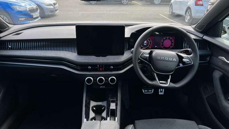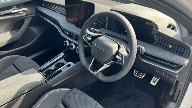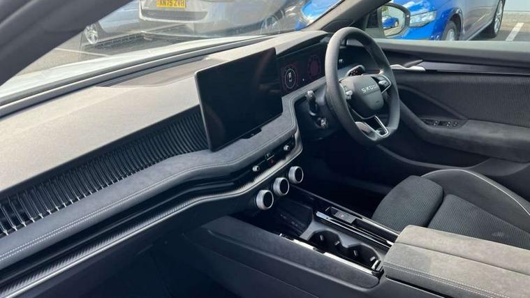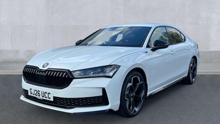 13" touchscreen display with satellite navigation, 4x USB-C ports (2x in front centre console and 2x in rear) (45W), Adaptive cruise control with speed assist, lane assist plus and traffic tram assist, Blind spot detection with door exit warning, Bluetooth system, CareConnect and Emergency Call, ChatGPT functionality, Driver fatigue sensor, Easy boot close funtion, Front assist with extended predictive pedestrian protection, Front cross traffic assist, PAS, Quick start all heating software functionality, Stop/start engine system, Traffic sign recognition, Turn assist with evasive assistance, Virtual Cockpit - 10.25" digital display, Voice control system, Washer for rear camera, Wireless charging for one smartphone (15W) with cooling function, Wireless smartlink apple carplay, SmartLink+ android auto, Dynamic chassis control plus with progressive dynamic steering, DAB Digital radio, Display cleaner, FM radio connection, Web radio connection, Acoustic side windows and interior noise suppression, Backdrop lighting, Black exterior styling window and grille surrounds, Body colour door handles, Dynamic range control with poor weather light and integrated fog light, Electrically adjustable, heated, folding and driver side auto-dimming door mirrors with memory function, integrated indicators and logo projection, Frameless auto-dimming rear view mirror with USB-C, Gloss black door mirrors, Ice scraper in fuel tank cap, LED 3rd brake light, Light assist with High beam control, Light assistant (coming/leaving home/tunnel light), Privacy glass, Rear fog lights (x2), Rear side wing doors, Skoda lettering in black, Sportline badging, Sports bumpers, Windscreen wipers with rain sensor, 12V socket 1x centre console 1x boot, 14-way electrically adjustable, memory, front seats with 4-way pneumatic lumbar support, and extendable thigh support with smart comfort entry aid, 2x cargo elements in boot, 2x light in boot, 3 seat bench in 2nd row, 60:40 Split folding rear seats, Aluminium pedals, Bottle holders in the front doors 1.5 litre bottle and rear 1.5 litre bottle, Cup holder in front with easy open mat, Front armrest with storage box, Front sports seats, Heated and ventilated front seats, Height adjustable front and rear head restraints, Illuminated glovebox, Interior lights with control switches, Isofix child seat fittings in outer rear and front passenger seats, LED front and rear reading lights, Single front passenger seat, Skoda lettering on steering wheel, Storage compartment with cover, Storage pockets on back of front seats, Sun visors with illuminated vanity mirrors, Ticket holder on A Pillar, Tri zone climate control, Umbrella in driver's door, Light and view package - Superb, Transport package - Superb Hatchback, 3 rear seatbelts, 8 Airbags - Front driver and passenger, front side driver and passenger, centre, curtain front and rear, drivers knee, Crew protect assist, Driver and passenger seatbelts with warning light, Electronic parking brake, ESC including ABS, EBV, MSR, ASR, EDS, HBA, DSR, RBS, CBC, multi-collision brake (MKB) and Auto hold, Hill hold assist, Power operated child lock in rear doors, Alarm with interior monitoring tilt sensor and back up horn, Backrest remote release from trunk, Electronic engine immobiliser, Keyless start/stop, Remote central locking with SAFE system, Third key, Walk away locking, Decorative front door sills, 19" Torcular polished black alloy wheels with anti theft wheel bolts,