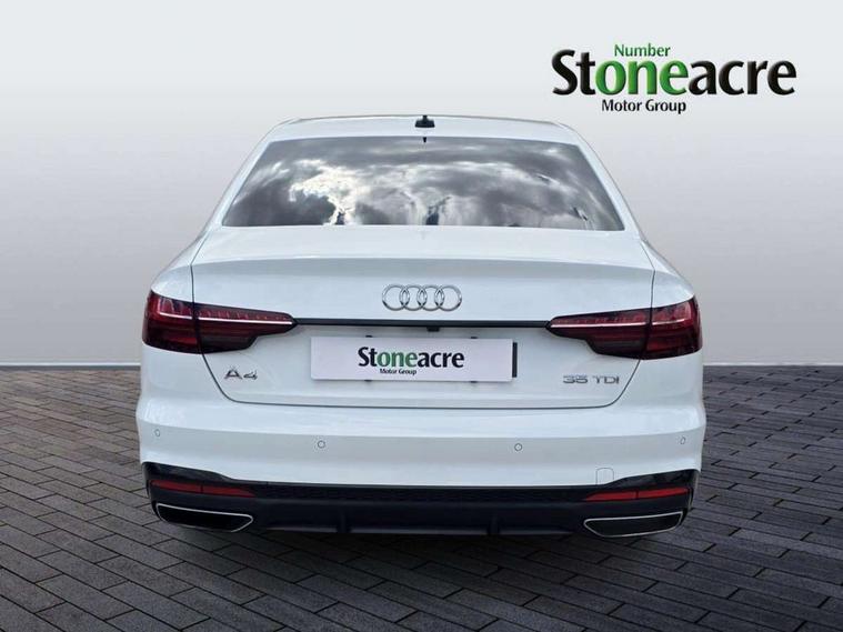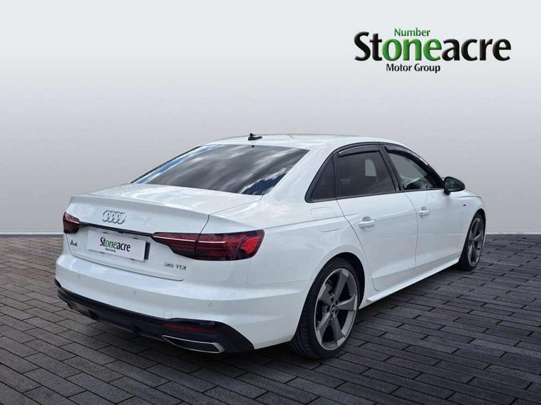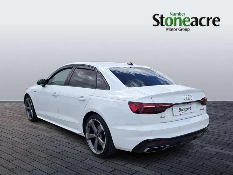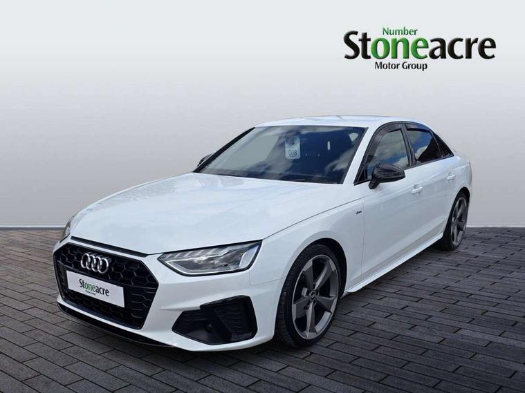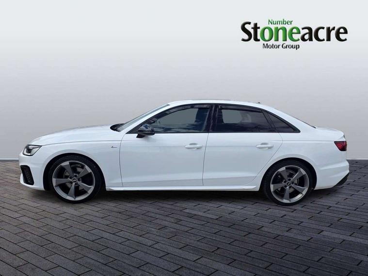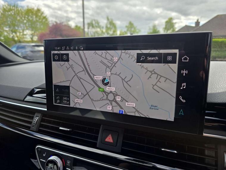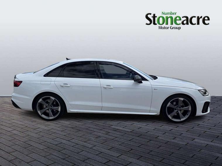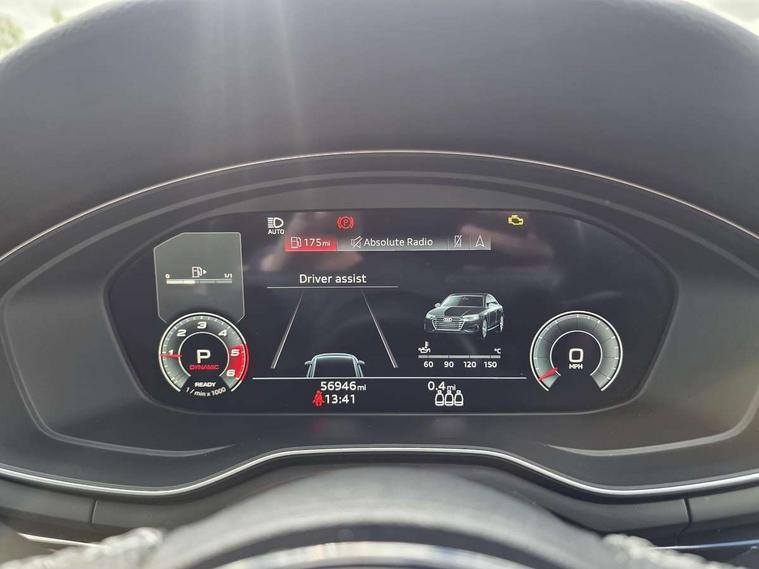 Audi connect safety and service (e-call), Audi drive select, Audi parking system plus with front and rear sensors, Audi smartphone interface, Audi virtual cockpit, Automatic start-stop system with coasting functionality and efficiency programme, Bluetooth interface, Electric boot lid release, Electromechanical power steering, MMI Navigation plus with MMI touch includes 10.1" high resolution colour MMI display, 3D map, Rear view camera, Voice control system, Sports suspension lowered by 23mm, 2 USB charging ports, 8 passive loudspeakers, DAB digital radio reception, Auto dimming rear view mirror, Body colour door handles, Body colour front spoiler lip, Body colour side sill trim, Electrically folding auto dimming/adjustable/heated door mirrors with LED side indicators and kerb view function for passenger side, Grained matt black side air inlets with matt aluminium silver inlay, High beam assistant, LED headlights with LED rear lights + dynamic rear indicators + headlight adjustment and high beam, turning light + LED daytime running lights, Matt aluminium silver tailpipe trim, Rain and light sensors, S Line badges on the front wings, S line front and rear bumpers with side skirts, S Line rear diffuser in matt titanium black with trim strip in matt aluminium silver, Windscreen with acoustic glazing, 4 way electric lumbar support for driver and front passenger, 40/20/40 split folding 3 rear seat bench in 3 parts with rear centre armrest, Black cloth headlining, Black perforated leather gearknob, Contrast stitching on seats, steering wheel and gear lever gaiter, Deluxe 3 zone electronic climate control, Door sill trims with aluminium inlay, Front and rear head restraints, Front centre armrest, Heated front seats, Illuminated door sill trims with S logo, ISOFIX child seat mounting and top tether, Manual seat adjustment, Stainless steel pedals and foot rest, Tool kit, LED Interior light pack - A4/S4, Titanium black styling pack - A4 Saloon, 3 rear seatbelts, 6 airbags - Driver, front passenger, curtain and side windows, Electronic Stabilisation Control (ESC) including ABS, ASR and EDL, Hill hold assist, Multi collision brake assist, Pop-up bonnet for pedestrian protection, Pre sense city, Seatbelt monitoring, Warning triangle and first aid kit, Anti theft alarm, Anti theft wheel bolts, Keyless Go, Piano black finish inlay, 19" 5 arm rotor design alloy wheels titanium matt look, Tyre repair kit,