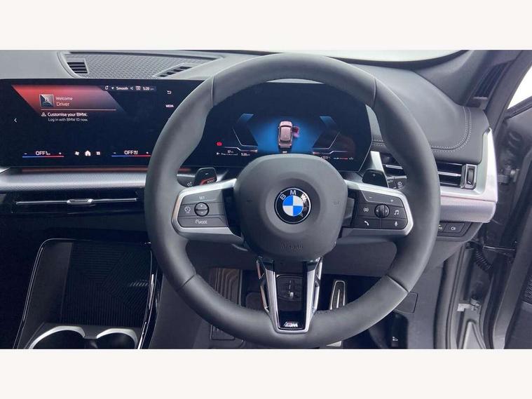 Attentiveness assist, Automatic start/stop function, BMW Live Cockpit Plus with 10.25" instrument cluster and 10.7" display, BMW Operating system 9 with BMW Maps, real-time traffic information, in-car experiences, remote services and smartphone integration, BMW Teleservices, Brake pad wear indicator, Condition based service, Connected eDrive Services, Drive off assistant, Electrically opening/closing tailgate with opening/closing with remote control and contactless opening and closing, Flat air vents on instrument panel in high gloss black, adjustable slats with elements in pearl chrome, iDrive controller, Language version English, My Modes, Parking Assistant with Reversing Assistant, active PDC, Lateral Parking Aid, Rear View Camera and Park Distance Control, Personal Profile - automatic lock when driving away selectable, Servotronic PAS, Tyre puncture warning system, Widescreen display, EU6 emissions management, Gear selector switch with toggle operation, Larger Fuel Tank, M Adaptive suspension, Performance Control, Petrol Particulate Filter, Steptronic transmission with double clutch and gear shift paddles, BMW Personal eSim, DAB Digital radio, Badge on engine compartment lid and tailgate, Body colour door mirrors, Dynamic brake lights, Electric adjustable heated door mirrors, Electric windows - front and rear, with open/close fingertip control, anti-trap facility and comfort closing, Exterior mirror including electric fold in function, Folding door handles integrated flush with surface, Follow me home headlights, Front and rear bumper panel with M specific design, in body colour with inserts in black high gloss, Front door exit lights, Heated rear window, High gloss shadowline, Invisible exhaust tailpipe, Key with M identification, LED 3rd brake light integrated in rear roof spoiler, LED daytime running lights, LED number plate light, M identification on the sides, M roof rails high gloss shadow line, M specific radiator grille in satinated aluminium, Matt black roof strips, Model inscription on right tailgate, Rain sensor including auto headlights activation, Rear side wing doors, Rear wiper, Sill cover in body colour, Trailer stabilisation logic, Window washer nozzle for rear view camera, Windscreen wipers front with heated washer nozzles, 12V - Power sockets with front centre console and luggage compartment, 2 bag hooks in luggage compartment, 2 cup holders in front, 2 front reading lights, 2 rear centre reading lights, 2 x USB Type C ports for charging in front centre console + 1 x USB Type C ports for charging in rear centre console, 3 rear headrests, 3 seat bench in 2nd row, 3 upper retaining strap clips integrated into rear panels of seat backrests, 4 grab handles, 40:20:40 split folding rear seats, Ambient interior lighting, Anthracite headlining, Anthracite Velour front and rear floormats, Bottle trays in all doors, Child seat ISOFIX attachment for two outer rear seats and front passenger seat with anchorage points, Clothes hook rear, Driver and front passenger heated seats, Dual zone automatic air conditioning, Footrest and pedals in black plastic, Front and rear door pockets, Front and rear footwell lighting, Front armrest with integrated control panel, Front centre console storage compartment, Front centre console trim in black high-gloss, Front/rear adjustable head restraints, Glove compartment, Interior door handle recess light on all doors, Light on right in luggage compartment, M sport leather steering wheel, Manual steering column height and depth adjustment, Middle centre console storage compartment, One piece parcel shelf opens together with tailgate and removable, Rear armrest in door trim panel, Single front passenger seat, Sport leather multifunction steering wheel with thumbrests and operation of instrument display, audio, telephone and driver assistance, Storage compartment lighting in centre console and storage tray in centre stack, Storage compartment net in left side trim panel, Storage compartment with folding cover under centre console armrest cushion, Storage tray in right side trim panel, Sun visors with illuminated vanity mirrors, Tilt adjustment incl. cargo function of 2nd row of seats, Vanity mirror lights, ABS/EBD, Automatic hold function, Automatic Stability Control (ASC), BMW emergency call, Braking readiness, Cornering brake control (CBC), Crash Sensor - activates hazard/interior lighting + unlocks doors, Driver/Front Passenger airbags, Driver/front passenger side airbags, Dry braking, Dynamic brake control, Dynamic stability control + (DSC+), Electromechanical parking brake, Energy recovery system, First aid kit, Front and rear brake discs, Front and rear head airbags, Front passenger airbag deactivation, Integrated brake system, PC iBrake PostCrash approach control warning with light braking function, Rear door child safety locks, Three point seat belts in all seats, Tyre pressure monitor, Warning triangle, Alarm system with tilt sensor, monitoring doors, bonnet interior and tailgate, Closing system with central locking, Locking wheel bolts, Luxury instrument panel, Tyre repair kit plus,
