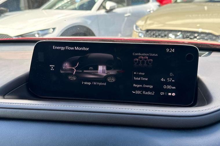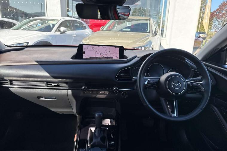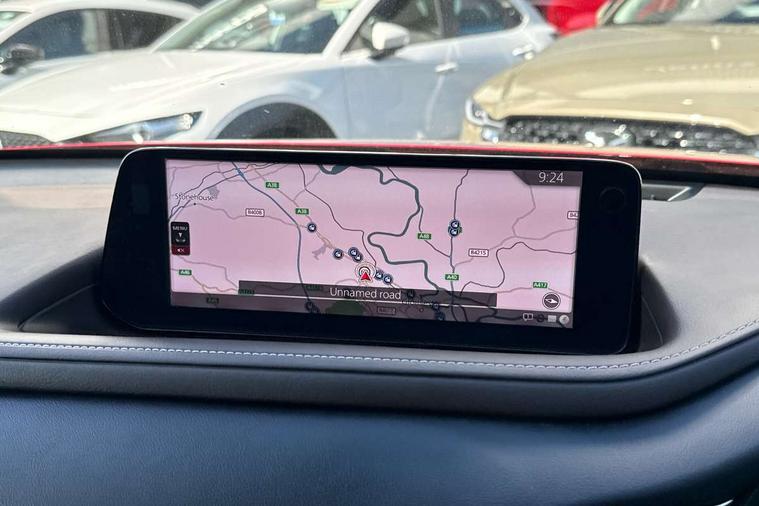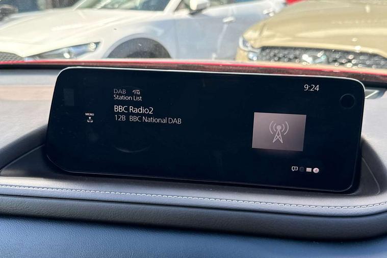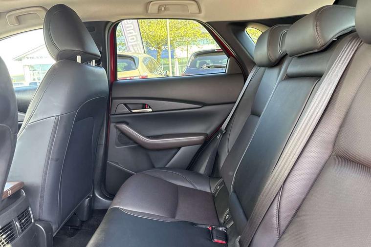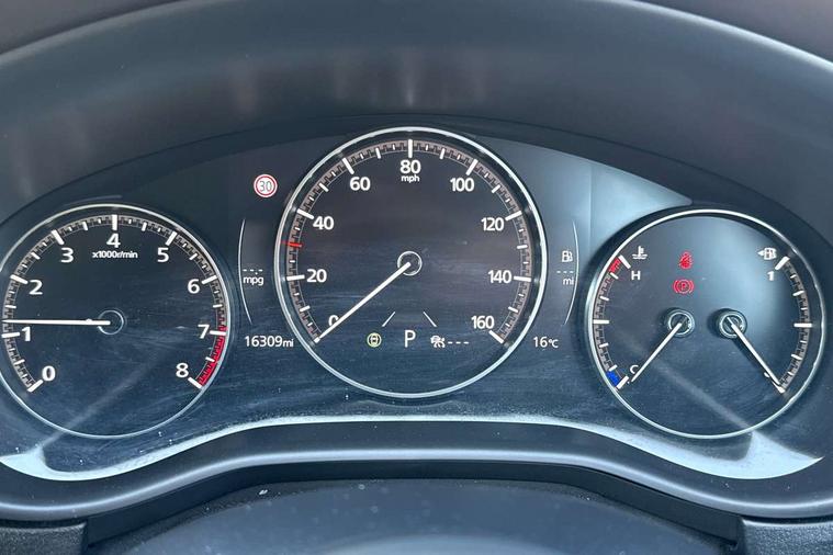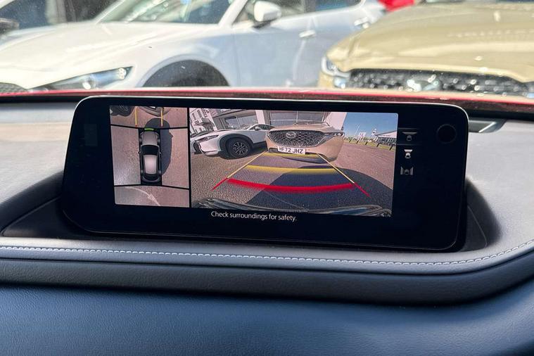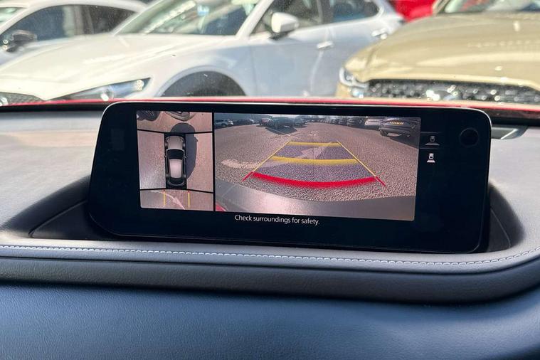 10.25" display with Mazda Connect infotainment, 360 View Monitor, 7" TFT Colour driver instrument panel display, Adaptive cruise control (Mazda radar cruise control) features stop and go, Blind spot monitoring with rear cross traffic alert, Cruising Traffic Support, Drive mode selector, Driver attention alert system, Driver monitoring system, E-call with GPS, Emergency stop signalling system, Engine start/stop button, Front and rear parking sensors, Front Cross Traffic Alert, Integrated bluetooth, Integrated Mazda navigation system, Intelligent speed assist, Lane keep assist system (LAS) with Lane departure warning system (LDWS), Mazda connected services, PAS, Power lift gate, Qi wireless charging, Service indicator, Tailgate, Traffic sign recognition, Trip computer, Windscreen projected colour active driving display (HUD), Wireless Apple CarPlay/Android Auto, i-stop, 2 USB charging ports in front inner central armrest, AM/FM and DAB radio, Bose surround sound system with 12 Speaker, Bose center point, Bass match and audio pilot technology, Multimedia Commander including separate volume dial, Steering wheel mounted audio/bluetooth controls, Adaptive LED Headlights, Auto dimming driver's door mirror, Auto headlight levelling, B-pillar and C-pillar garnishes in piano black finish, Body coloured, electrically adjustable, heated auto power folding door mirrors with integrated indicators, Chrome finish signature wing in front grille, Coming/leaving home lighting function, Door mirrors with adjustable memory and tilt-down function when reversing, Dual chrome exhaust, Dusk sensing headlights, Electric front/rear windows with one touch auto up/down, Frameless auto dimming interior rear view mirror, Front kodo turn signal, Front wiper de-icer, Gloss black front grille, Gloss black rear roof spoiler, High beam assist, LED signature daytime running lights, Power tilt/slide sunroof, Privacy glass (rear side windows and rear screen), Rain sensing front wipers with adjustable speed and intermittent wipe, Rear fog lights, Rear side wing doors, Rear wiper, Signature LED rear combination lights, Third brake light, 12V power outlet in centre console, 3 seat bench in 2nd row, 60/40 split fold down rear seats, Chrome interior trim accents with steering wheel centre bezel, surround of engine start / stop button and glove box handle, Dashboard, door cards and front centre armrest in rich brown leather, Driver and front passenger visors with covered vanity mirror and driver ticket holder, Driver's seat, power tilt, slide, recline, height and lumbar adjustment, Driver, front passenger and two rear door storage, Driver, Front passenger and two rear grab handles with coathooks, Dual zone climate control air conditioning with rear air vents, Folding rear centre armrest with two cup holders, Front and rear (x3) head restraints, Front and rear LED lighting, Front armrest, Front centre storage with two cupholders with lid, Front passenger seatback pockets, Front passengers seat manual slide, recline and height adjustment, Gear shift indicator, Glovebox illumination, Heated front seats with 3 stage setting, Heated steering wheel, ISOFIX child seat anchorage points attached on outer rear seats, Leather upholstery with interior accents, Leather wrapped gear shift knob, Leather wrapped steering wheel with telescopic and tilt adjustment, LED luggage compartment lighting, Light roof headlining and pillars, Paddle shift controls, Roof mounted sunglasses holder, Single front passenger seat, 3 point ELR front seat belts x2 with pretensioners, 3 point ELR rear seat belts, Anti-lock braking system (ABS), Drivers knee airbag, DSC - Dynamic Stability Control, Electronic parking brake with auto disengage function and auto hold function, Front and rear curtain airbags, Front and rear smart city brake support, Front dual stage driver and single stage front passenger airbags, Front passenger airbag cut-off switch, Front side airbags, G-Vectoring control plus, Hill launch assist, Manual child lock in rear doors, Mild Hybrid system with regenerative braking, Rear cross traffic braking, Seatbelt reminder for driver/front passenger and rear seats, Traction control system (TCS), Tyre pressure monitoring system (TPMS), Remote central locking with deadlocking and automatic door lock when driving, Smart keyless entry, Thatcham accredited alarm and immobiliser, Dark vinyl door panel inserts, 18" Bright silver metallic alloy wheels, Emergency tyre repair kit,