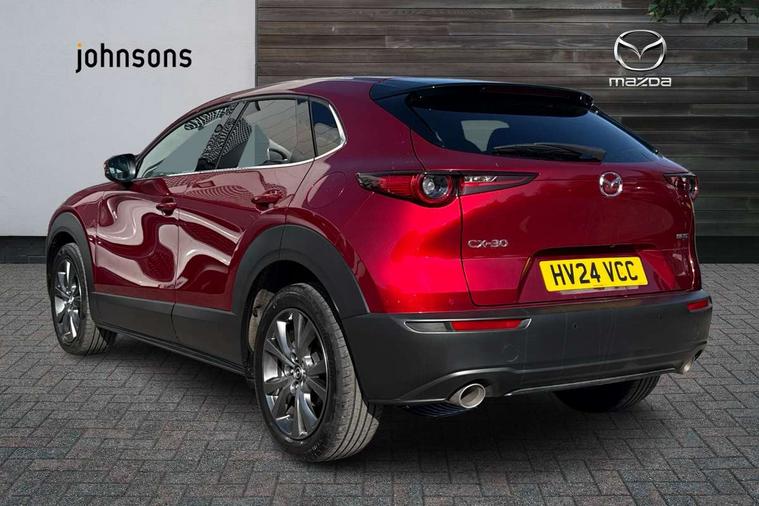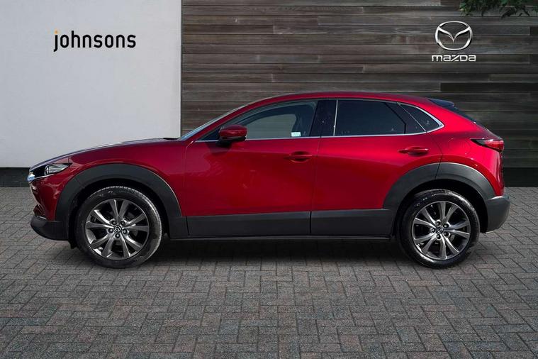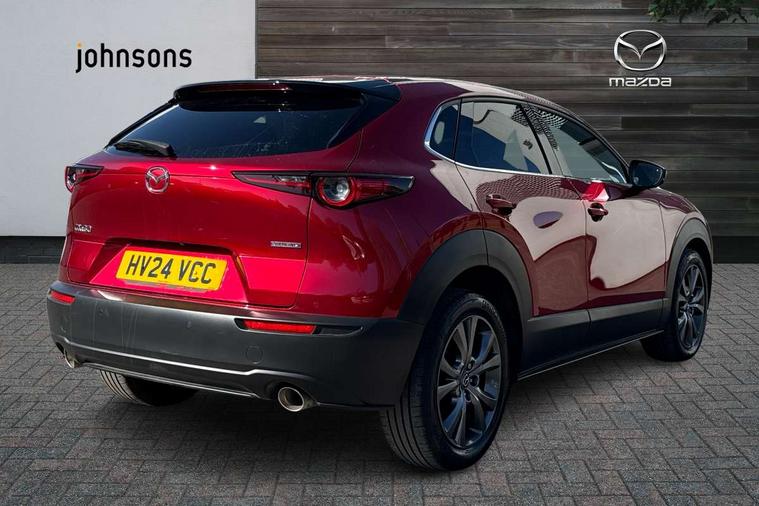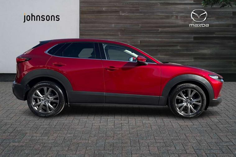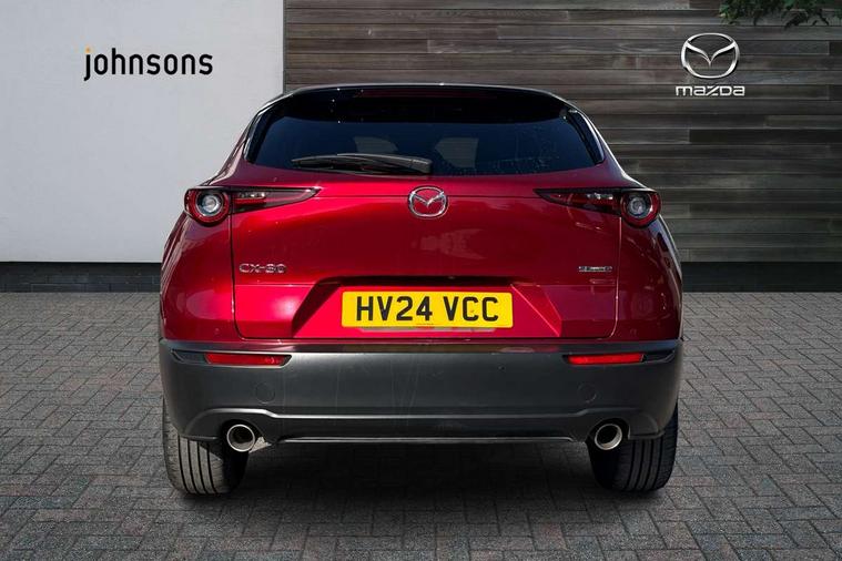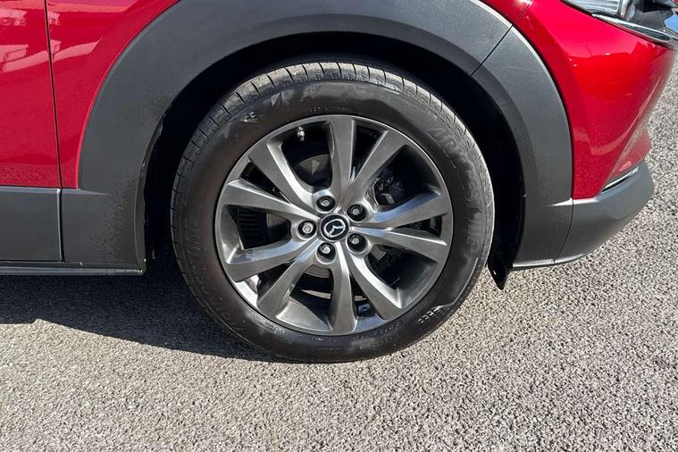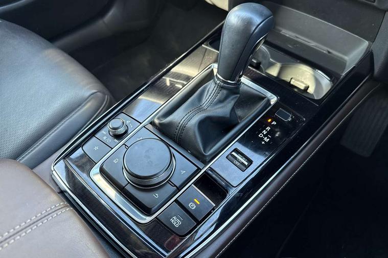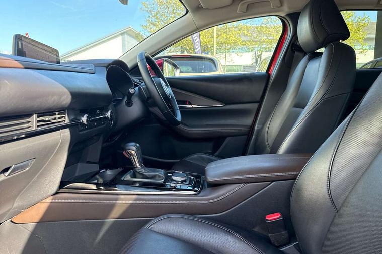10.25" display with Mazda Connect infotainment, 360 View Monitor, 7" TFT Colour driver instrument panel display, Adaptive cruise control (Mazda radar cruise control) features stop and go, Blind spot monitoring with rear cross traffic alert, Cruising Traffic Support, Drive mode selector, Driver attention alert system, Driver monitoring system, E-call with GPS, Emergency stop signalling system, Engine start/stop button, Front and rear parking sensors, Front Cross Traffic Alert, Integrated bluetooth, Integrated Mazda navigation system, Intelligent speed assist, Lane keep assist system (LAS) with Lane departure warning system (LDWS), Mazda connected services, PAS, Power lift gate, Qi wireless charging, Service indicator, Tailgate, Traffic sign recognition, Trip computer, Windscreen projected colour active driving display (HUD), Wireless Apple CarPlay/Android Auto, i-stop, 2 USB charging ports in front inner central armrest, AM/FM and DAB radio, Bose surround sound system with 12 Speaker, Bose center point, Bass match and audio pilot technology, Multimedia Commander including separate volume dial, Steering wheel mounted audio/bluetooth controls, Adaptive LED Headlights, Auto dimming driver's door mirror, Auto headlight levelling, B-pillar and C-pillar garnishes in piano black finish, Body coloured, electrically adjustable, heated auto power folding door mirrors with integrated indicators, Chrome finish signature wing in front grille, Coming/leaving home lighting function, Door mirrors with adjustable memory and tilt-down function when reversing, Dual chrome exhaust, Dusk sensing headlights, Electric front/rear windows with one touch auto up/down, Frameless auto dimming interior rear view mirror, Front kodo turn signal, Front wiper de-icer, Gloss black front grille, Gloss black rear roof spoiler, High beam assist, LED signature daytime running lights, Power tilt/slide sunroof, Privacy glass (rear side windows and rear screen), Rain sensing front wipers with adjustable speed and intermittent wipe, Rear fog lights, Rear side wing doors, Rear wiper, Signature LED rear combination lights, Third brake light, 12V power outlet in centre console, 3 seat bench in 2nd row, 60/40 split fold down rear seats, Chrome interior trim accents with steering wheel centre bezel, surround of engine start / stop button and glove box handle, Dashboard, door cards and front centre armrest in rich brown leather, Driver and front passenger visors with covered vanity mirror and driver ticket holder, Driver's seat, power tilt, slide, recline, height and lumbar adjustment, Driver, front passenger and two rear door storage, Driver, Front passenger and two rear grab handles with coathooks, Dual zone climate control air conditioning with rear air vents, Folding rear centre armrest with two cup holders, Front and rear (x3) head restraints, Front and rear LED lighting, Front armrest, Front centre storage with two cupholders with lid, Front passenger seatback pockets, Front passengers seat manual slide, recline and height adjustment, Gear shift indicator, Glovebox illumination, Heated front seats with 3 stage setting, Heated steering wheel, ISOFIX child seat anchorage points attached on outer rear seats, Leather upholstery with interior accents, Leather wrapped gear shift knob, Leather wrapped steering wheel with telescopic and tilt adjustment, LED luggage compartment lighting, Light roof headlining and pillars, Paddle shift controls, Roof mounted sunglasses holder, Single front passenger seat, 3 point ELR front seat belts x2 with pretensioners, 3 point ELR rear seat belts, Anti-lock braking system (ABS), Drivers knee airbag, DSC - Dynamic Stability Control, Electronic parking brake with auto disengage function and auto hold function, Front and rear curtain airbags, Front and rear smart city brake support, Front dual stage driver and single stage front passenger airbags, Front passenger airbag cut-off switch, Front side airbags, G-Vectoring control plus, Hill launch assist, Manual child lock in rear doors, Mild Hybrid system with regenerative braking, Rear cross traffic braking, Seatbelt reminder for driver/front passenger and rear seats, Traction control system (TCS), Tyre pressure monitoring system (TPMS), Remote central locking with deadlocking and automatic door lock when driving, Smart keyless entry, Thatcham accredited alarm and immobiliser, Dark vinyl door panel inserts, 18" Bright silver metallic alloy wheels, Emergency tyre repair kit,
