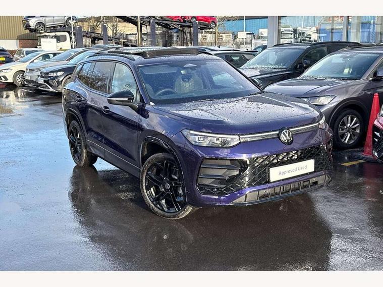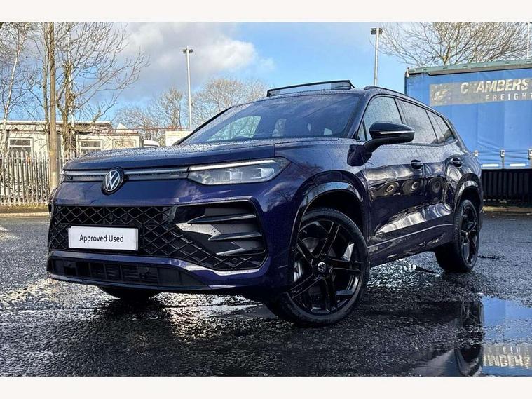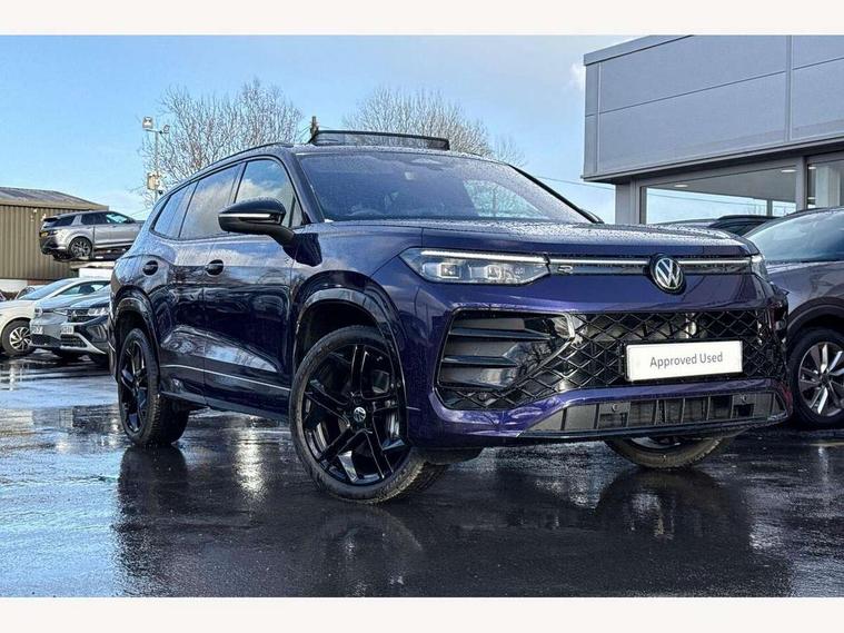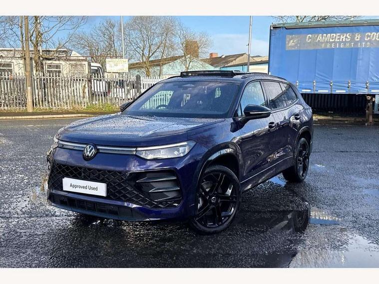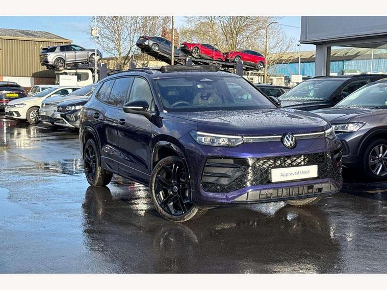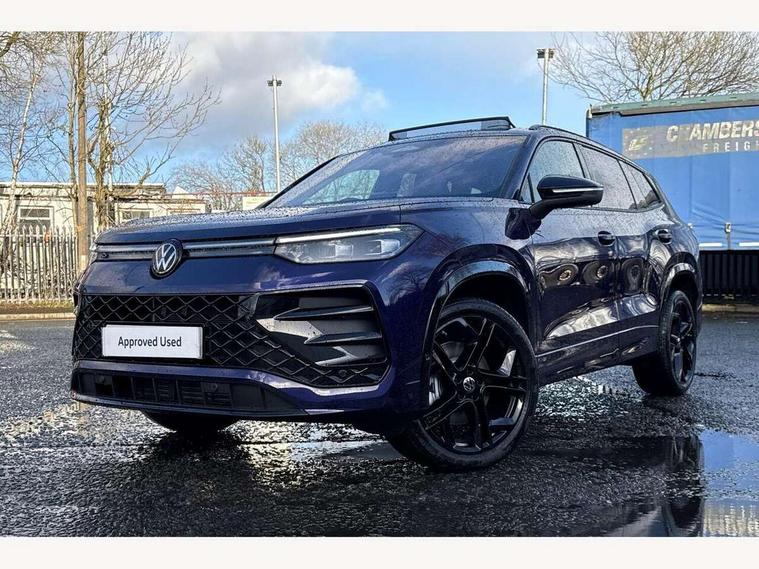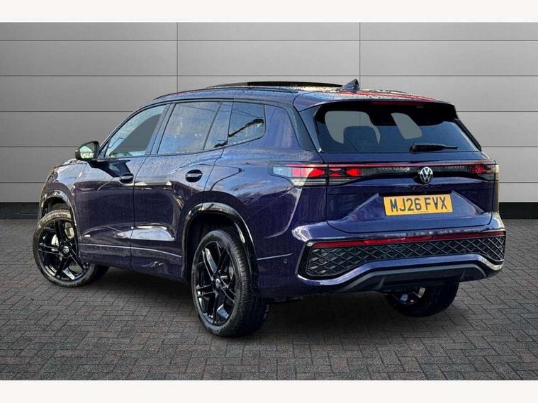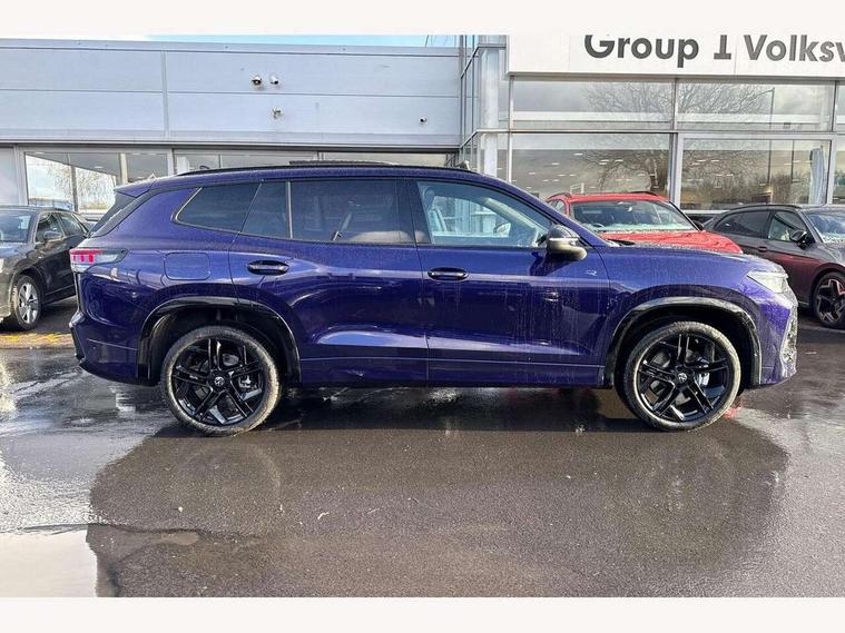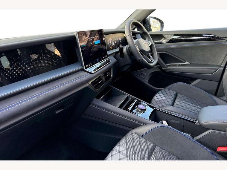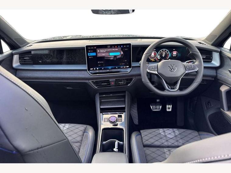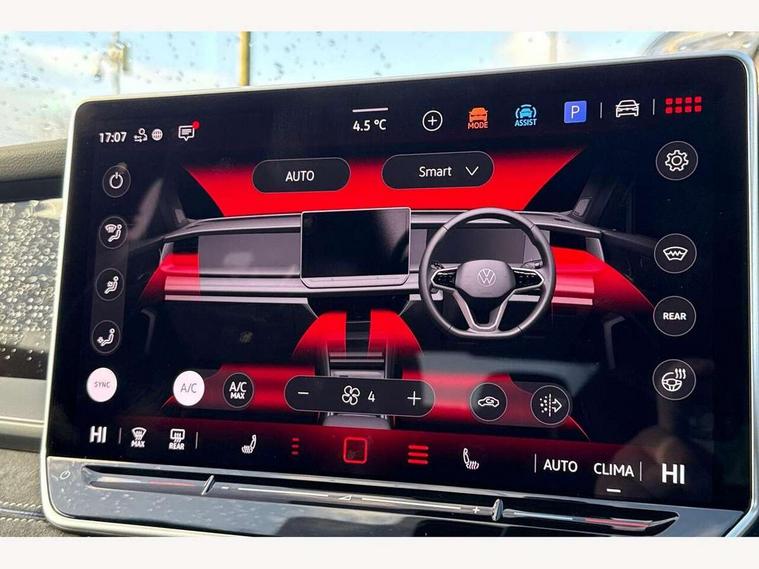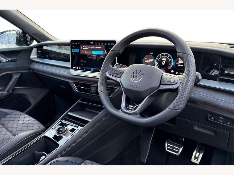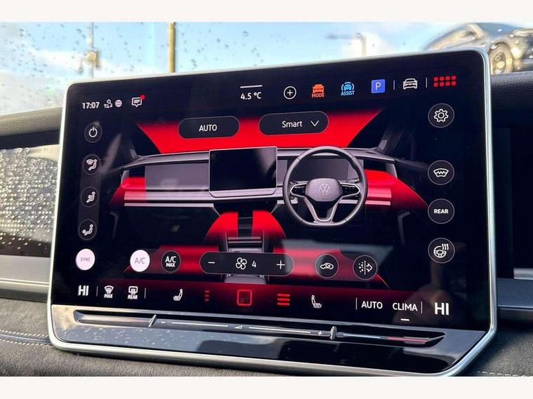 Adaptive cruise control (ACC), Digital Cockpit Pro - 10.25" high resolution dash display screen with customisable menus and information, Driver alert system, Driver attention monitoring system, Driving profile selection, Dynamic road sign display, E-Sim card for online connectivity, Easy Open and Close Electric tailgate with virtual pedal activation, eCall emergency call system, IDA voice assistance with ChatGPT, Lane change system, Side assist, Rear traffic alert and Exit warning system, Lane keeping system, Multifunction front facing camera, Navigation system, Oncoming vehicle braking when turning including swerve support, Park assist plus with park distance control, Power assisted steering with speed sensitive, Sports steering system, Start/stop system with regenerative braking, Voice activation spoken voice commands for telephone and navigation system, Warning signal and warning light for front and rear seatbelts not fastened, Wireless App-Connect, Front shock absorption G01, Front wheel drive, 12.9" infotainment display, Digital radio reception (DAB), Diversity antenna for FM reception, Air intake with Chrome trim, Auto dimming interior rear view mirror, Automatic headlight control system, Body colour door handles, Chrome moldings on the side windows, Coming/leaving home lighting function, Dynamic headlight range control with dynamic cornering light, Exterior mirrors convex on the left and aspherical on the right, Heat insulating glass in side and rear windows, High Beam Assist, automatic sensing for switching between dipped and main beam, Illuminated Volkswagen logo in front and rear, Laminated safety glass windshield, heat insulating, LED 3rd brake light, LED headlamps, LED separate signature day time running light, Poor weather light, Puddle lights, Rain sensor windscreen wipers, Rear combination lamps with special signal pattern, Rear fog light on one side, reversing light on both sides, Rear side wing doors, Rear wiper, Reverse activated passenger's door mirror, Sound insulating laminated safety glass from B-pillar backwards 90% tinted, Surround lighting with welcome light, Volkswagen logo in front, illuminated lighting animation with wake up/goodbye scenario and illuminated door handles, 12V outlet in center console rear and in luggage compartment, 12V socket in centre console, 2 USB-C ports in the front, 2 USB-C charging sockets on the centre console in rear, charging capacity up to 45 W, 230V socket in luggage compartment, 3 rear headrests, 3 rear seat bench in 2nd row, backrest split folding with centre armrest and 2 seats in 3rd row of seats, 3 zone air care climatronic with rear air conditioning control panel, 30 colours options interior ambient lighting, Art velours cloth upholstery, Black roof lining, Brushed stainless steel pedals, Carpet mats, front and rear, Centre console with illuminated storage compartment with sliding cover and two drinks holders, Chrome elements on the mirror switch and power window switches and door pulls, Door and side trim panel insert in Art velour, Drivers seat with manual adjustment of seat travel and height and backrest angle with thigh support longitudinally sliding, Flat luggage compartment floor, Front centre armrest, Front massage seats, Front scuff plates in aluminium, Inductive smartphone charging, ISOFIX anchors for child seats on outer rear seats and front passenger seat compatible with i-Size, Leather wrapped multifunction heated steering wheel with paddle shift, Manual height adjustable front passenger seat, Mechanical rear seat release, Power adjustable lumbar support in front, Safety optimised front integrated head restraints, Single front passenger seat, Sports comfort seats in front, Sun visors with illuminated vanity mirrors, Touch control steering wheel, 3 Point seat belts in front with pretensioners, 3 point seatbelts in outer rear with ECE label, Autonomous emergency braking front assist with pedestrian and cyclist monitoring, Driver and front passenger airbag with front passenger airbag deactivation, Electronic parking brake with auto hold, First aid kit with warning triangle and safety vest, Front and rear curtain airbags, Front and rear side airbags, Front centre airbag, Hill start assist, Manual rear child locks, Proactive passenger protection system, Two tone horn, Tyre pressure monitoring system, Alarm with interior protection, Central locking system keyless entry, Decorative material set R-Line, Interior door handle in matte chrome,