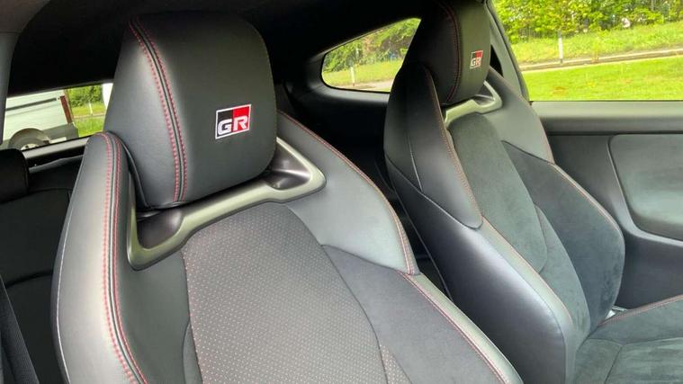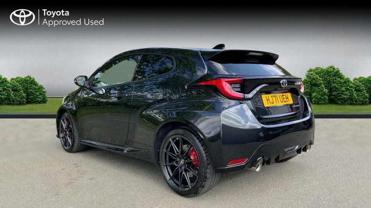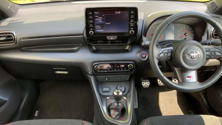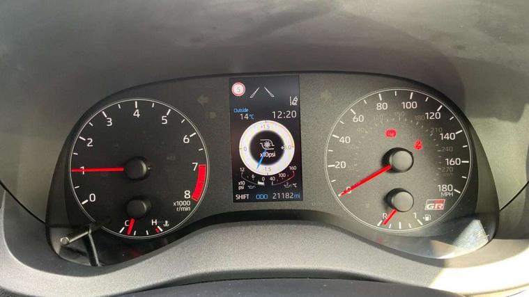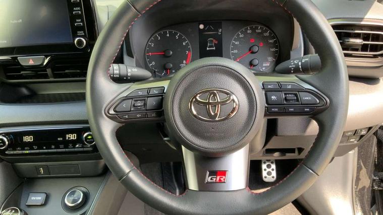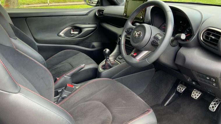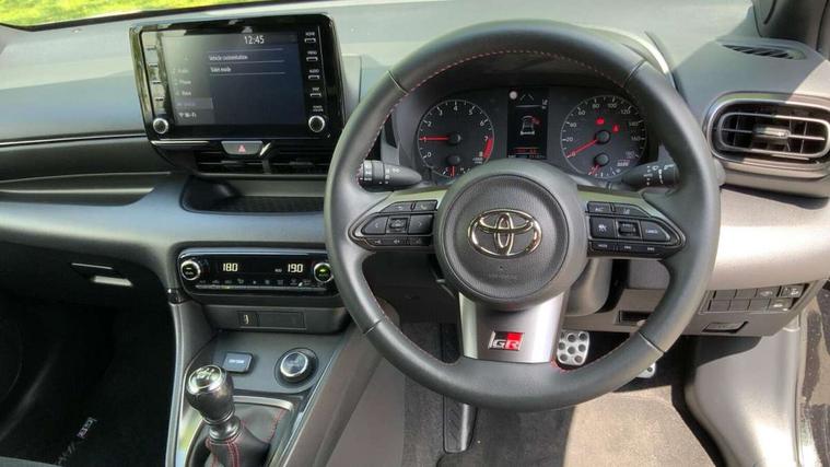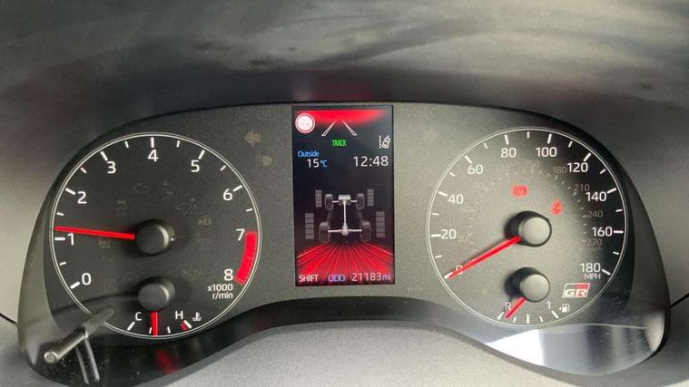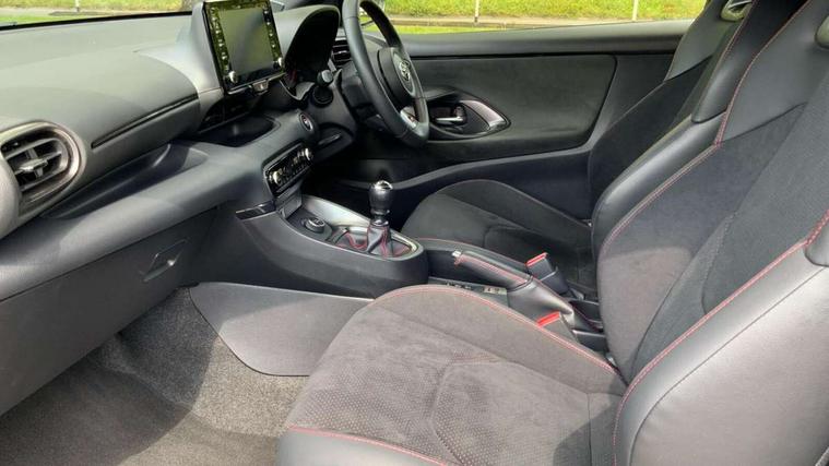 Apple car play/Android Auto, Coloured TFT multi informational display, eCall emergency system, Emergency steering assist, Intelligent adaptive cruise control, Lane Departure Alert (LDA) switch on steering wheel, Lane trace assist, Power Steering, Pre-collision system (PCS), Reversing camera, Road sign assist - RSA, Circuit tuned GR suspension, Double wishbone rear suspension, GR-Four AWD switch, MacPherson front suspension, Vehicle Stability Control (VSC), 6 speakers, 8" Multimedia display touch screen, DAB Digital radio, Toyota touch 2 multimedia system, USB connection, Adaptive high beam assist, Adaptive LED Headlights, Air intakes for brake cooling, Auto dimming eletrochromatic rear view mirror, Auto windscreen wipers, Automatic headlights, Automatic headlights cut-off, Automatically retractable door mirrors, Black contrasting colour door mirrors, Black rear spoiler, Body coloured door handles, Body coloured rear bumper, Carbon fibre roof wrap, Door scuff plates, Dual exhaust pipes, Electric adjustable heated door mirrors, Follow me home headlights, Front auto power windows with anti jam protection, Gloss black GR front bumper, GR badges 1 front, 1 rear and 2 sides, GR lower front grille, Integrated LED indicators in door mirrors, LED daytime running lights, LED fog lights, LED High mounted stop lamp, LED rear combination lights, Piano black side air vents, Privacy glass on rear and back windows, Rear auto power windows with anti jam protection, Rear window defogger, Shark fin antenna, 12V socket in front, 2 rear head restraints, 3 spoke leather sports steering wheel, 60/40 split folding rear seat, Aluminium pedals, Clean air filter, Driver and passenger headrests, Driver's sun visor with vanity mirror, Dual zone automatic air conditioning, Front bottle holders, Front cup holders, Front map light, Front sports seats, GR floor mats, GR logo on steering wheel, GR Ultrasuede leather upholstery, Height adjustable driver's seat, Isofix child rear seat restraints, Leather gearshift, Leather handbrake, Manual slide adjustable on driver's and passenger seats, Microphone on front personal light, Multimedia switch on steering wheel, Pollen filter, Red stitching on gearshift, Red stitching on handbrake lever, Satin chrome interior door handles, Soft tonneau cover, Ticket holder on driver's sun visor, Tilt/telescopic steering column, ABS with Brake Assist, Airbags - driver and front passenger, Driver and passenger side airbags, Emergency brake light system (EBS), Front passenger airbag on/off switch, Front seatbelt reminder, Hill start assist control (HAC), Rear passenger airbag, Rear seat belt reminder, Red brake callipers, Red sport front and rear brake pads, Start holding control, Torsen limited slip differentials x2, Tyre pressure warning system, Alarm/immobiliser, Keyless smart entry with push button start, 18" 10 spoke forged alloy wheels with Michelin pilot sport, Tyre repair kit,