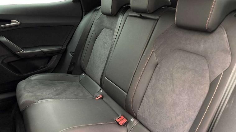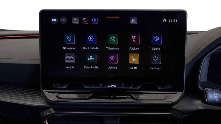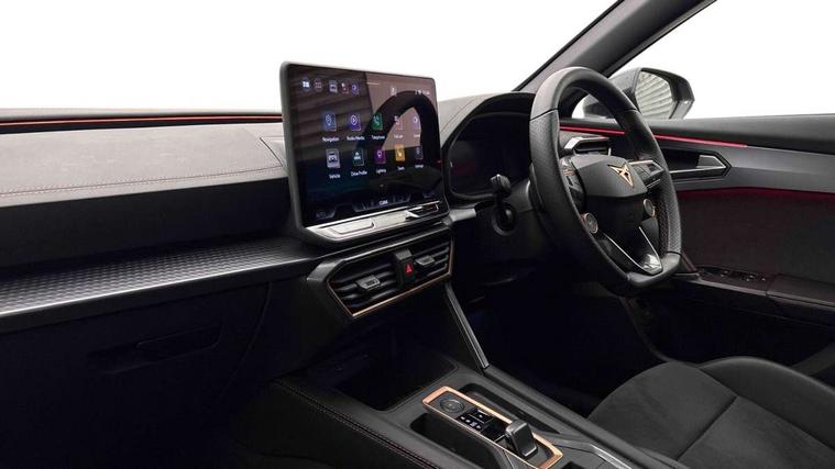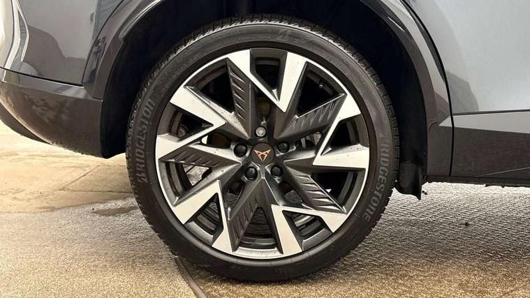 10.25" digital cockpit and configurable dashboard, Adaptive cruise control with follow-to-stop and speed limiter, Advanced driver alert system, Driving profile selection, Dynamic road sign display, Emergency steering support with turn assist, Forward collision warning with automatic braking, Front and rear parking sensors, Full link phone integration, Lane assist, Progressive steering, Rear view camera, RPM, trip computer, outside temp gauge, instrument light brightness, low fuel warning light, lights on reminder, gearshift indicator, Service interval indicator, Start/stop system with regenerative braking, Virtual pedal and electric tailgate, Voice control system, Wired Android Auto, Wireless apple carplay, Wireless phone charger, CUPRA sport suspension, Electronic locking differential and dynamic traction support, 2 front and 2 rear USB type C sockets, Media system with navigation, 12.9" touchscreen display, voice control, DAB, steering wheel mounted controls, Auto dimming rear view mirror, Body colour door handles, Body coloured bumpers, Dark grey wing mirror, Daytime running light with automatic headlight control and coming home feature, Door panel ambient lighting, Dynamic headlight range control, Electric front/rear windows, Electrically adjustable heated and folding door mirrors with memory function, Gloss black roof rails and window surrounds, High beam assist, LED 3rd brake light, LED front fog lamps with cornering function, LED Headlights, LED Taillights with dynamic indicator, Rain sensing wipers, Rear diffuser with black simulated exhaust pipes, Rear fog lights, Rear side wing doors, Rear wash/wipe, Tinted rear windows, Welcome lights (within exterior mirror housing), 12V socket, 2 front and 2 rear reading lights, 3 seat bench in 2nd row, 60/40 split rear bench seat with armrest and mechanical seat release, Black headlining, Black interior roof lining, Cupra sports pedals, Dust/pollen filter, Electrically adjustable driver's seat with memory and lumbar support, Front and rear head restraints, Front centre armrest, Heated front seats, Heated supersports multifunction leather steering wheel with satellite buttons and gear shift paddles, Height/reach adjust steering wheel, Illuminated aluminium doorsteps, Illuminated interior front door sills, Illuminated sunvisor with mirror, Isofix, Leather dashboard, door insert and side trim panel, LED smart wraparound lighting, PVC/Dinamica microfiber upholstery + bucket seats, Satellite steering wheel, Single front passenger seat, Storage pockets on rear of front seats, Three zone climate control with control panel in rear, Variable luggage/load compartment floor, 3 point seatbelts on all rear seats, ABS, Brake control system - ESC and brake booster, Child proof door locks, Driver and front passenger airbags with front passenger airbag de-activation, Electronic parking brake, Front and rear disc brakes, Front side curtain airbags, Hill hold control, Public e-call, Seat belt reminder for front and rear seats, Tyre pressure monitoring system, Anti theft alarm system, KESSY Advanced - Keyless start, keyless entry with SAFELOCK, Locking wheel bolts, Copper and aluminium interior detailing, 19" Sandstorm machined sport black and silver alloy wheels,
