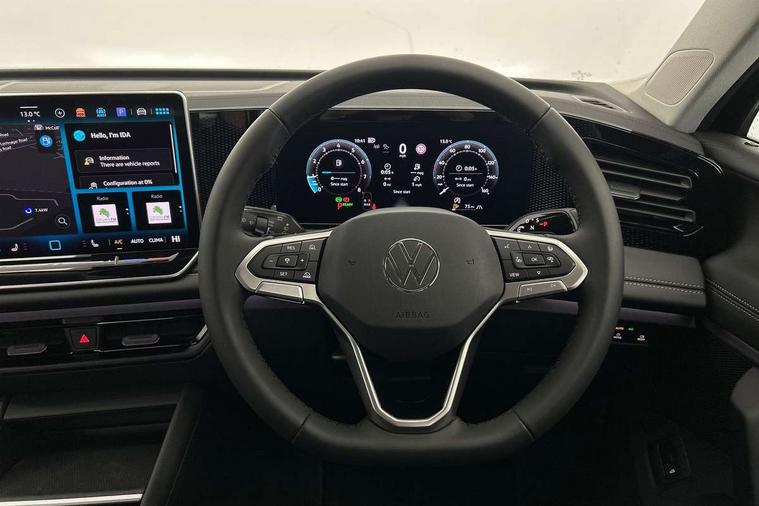 Adaptive cruise control (ACC), Advanced driver attention and drowsiness monitor, Bluetooth mobile phone interface, Car2X technology, Digital Cockpit Pro - 10.25" high resolution dash display screen with customisable menus and information, Dynamic road sign display, E-Sim card for online connectivity, eCall emergency call service, Front Assist - Autonomous emergency braking with pedestrian and cyclist monitoring, Lane change system, Side assist, Rear traffic alert and Exit warning system, Lane keeping system Lane Assist, Oncoming vehicle braking when turning including swerve support, Park assistance plus with front and rear parking sensors, Power assisted steering with speed sensitive, Start/stop system with regenerative braking, Warning signal and warning light for front and rear seatbelts not fastened, Wireless App-Connect, Front wheel drive, Digital radio reception (DAB), Diversity antenna for FM reception, Auto dimming interior rear view mirror, Automatic headlight control system, Body coloured bumpers and air intake with chrome trim, Body coloured door handles, Body-coloured exterior mirror housings, Coming/leaving home lighting function, Heat insulating glass in side and rear windows, Heat insulating windshield, Heated rear window, High level 3rd brake light, Illuminated door handle recesses, Illuminated lightline between headlamps, Puddle lights and reverse activated passengers door mirror, Rain sensor windscreen wipers, Rear fog light on one side, reversing light on both sides, Rear side wing doors, Rear wiper, 12V outlet in center console rear and in luggage compartment, 12V socket in centre console, 3 bench rear seats in 2nd row, Air care climatronic 3 zone air conditioning system with rear air conditioning control panel, Carpet mats, front and rear, Ceramique headlining, Door and side trim panel in foam film and woven fabric, Front centre armrest, ISOFIX anchors for child seats on outer rear seats and front passenger seat compatible with i-Size, Mechanical rear seat release, Power adjustable lumbar support in front, Rear bench seat, split folding, longitudinally movable and folding with load-through hatch and centre armrest, Safety optimised front head restraints, Single front passenger seat, Sun visors with illuminated vanity mirrors, Three rear head restraints, Variable luggage compartment floor, Comfort package with park assist plus and Safelock - Tiguan, Design package - Tiguan Life/Match, 3 point seat belt for centre rear seats, 3 Point seat belts in front with pretensioners, 3 point seatbelts in outer rear with ECE label, Driver and front passenger airbag with front passenger airbag deactivation, Electronic parking brake with auto hold, Front and rear curtain airbags, Front and rear side airbags, Front centre airbag, Front disc brakes, Hill start assist, Manual child proof rear door locks, Rear disc brakes, Two tone horn, Warning triangle, Soul instrument panel,