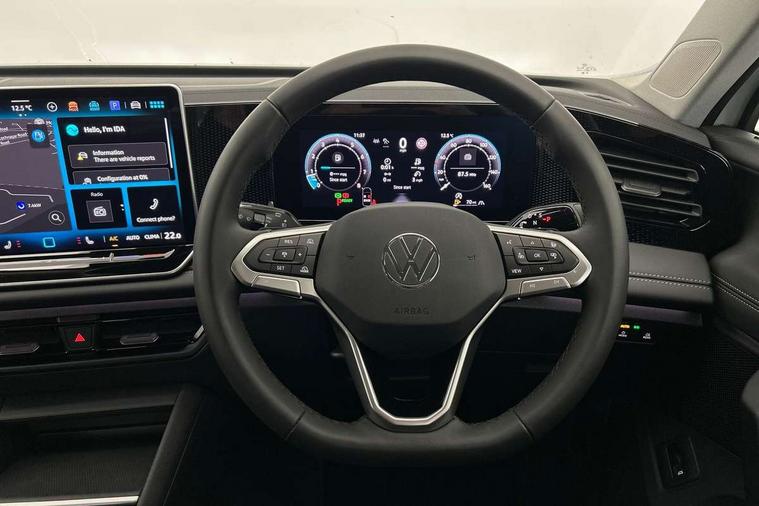 Adaptive cruise control (ACC), Advanced driver attention and drowsiness monitor, Bluetooth mobile phone interface, Car2X technology, Digital Cockpit Pro - 10.25" high resolution dash display screen with customisable menus and information, Dynamic road sign display, E-Sim card for online connectivity, eCall emergency call service, Front Assist - Autonomous emergency braking with pedestrian and cyclist monitoring, Lane change system, Side assist, Rear traffic alert and Exit warning system, Lane keeping system Lane Assist, Oncoming vehicle braking when turning including swerve support, Park assistance plus with front and rear parking sensors, Power assisted steering with speed sensitive, Start/stop system with regenerative braking, Warning signal and warning light for front and rear seatbelts not fastened, Wireless App-Connect, Front wheel drive, Digital radio reception (DAB), Diversity antenna for FM reception, Auto dimming interior rear view mirror, Automatic headlight control system, Body coloured bumpers and air intake with chrome trim, Body coloured door handles, Body-coloured exterior mirror housings, Coming/leaving home lighting function, Heat insulating glass in side and rear windows, Heat insulating windshield, Heated rear window, High level 3rd brake light, Illuminated door handle recesses, Illuminated lightline between headlamps, Puddle lights and reverse activated passengers door mirror, Rain sensor windscreen wipers, Rear fog light on one side, reversing light on both sides, Rear side wing doors, Rear wiper, 12V outlet in center console rear and in luggage compartment, 12V socket in centre console, 3 bench rear seats in 2nd row, Air care climatronic 3 zone air conditioning system with rear air conditioning control panel, Carpet mats, front and rear, Ceramique headlining, Door and side trim panel in foam film and woven fabric, Front centre armrest, ISOFIX anchors for child seats on outer rear seats and front passenger seat compatible with i-Size, Mechanical rear seat release, Power adjustable lumbar support in front, Rear bench seat, split folding, longitudinally movable and folding with load-through hatch and centre armrest, Safety optimised front head restraints, Single front passenger seat, Sun visors with illuminated vanity mirrors, Three rear head restraints, Variable luggage compartment floor, Comfort package with park assist plus and Safelock - Tiguan, Design package - Tiguan Life/Match, 3 point seat belt for centre rear seats, 3 Point seat belts in front with pretensioners, 3 point seatbelts in outer rear with ECE label, Driver and front passenger airbag with front passenger airbag deactivation, Electronic parking brake with auto hold, Front and rear curtain airbags, Front and rear side airbags, Front centre airbag, Front disc brakes, Hill start assist, Manual child proof rear door locks, Rear disc brakes, Two tone horn, Warning triangle, Soul instrument panel,