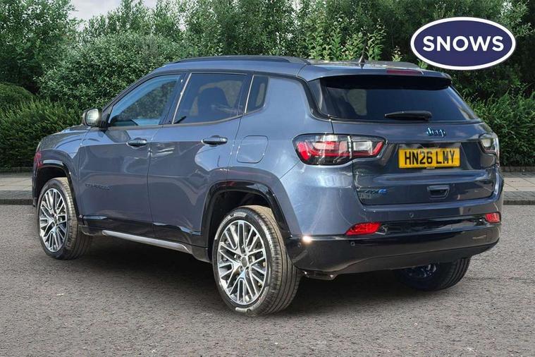 Active lane management, Active speed limiting device, Adaptive cruise control with Stop and Go, Digital speedometer switchable from MPH to KPH, Drowsy driver detection, E-call, Electric power steering, English owners handbook, Extended Guide in English, Full speed forward collision warning plus mitigation, Instrument cluster- 10.25" TFT Colour display, Instrument panel, Intelligent speed assist, Media centre electronic storage, Outside temperature display, Parallel and perpendicular park assist with exit, Parksense front and rear park assist system, Selec terrain system with sport mode, Tachometer, TBM - Connected services (e-call), Traffic sign recognition (TSR), United Kingdom equipment group, Vehicle information centre, Wireless charging pad, Battery run - down protection, Battery skid plate, CO2 improvement, E- launch, E-creeping, E-Parking, E-Queueing, Electric drive, Electronic roll mitigation, Mode 3 cable, 6 speakers, Bluetooth audio streaming, DAB Digital radio, Global telematics box module (TBM), Media hub (USB A-C TYPE), Steering wheel mounted audio controls, USB A and C type - second row, USB host flip, Wireless CarPlay/Android Auto, 4XE badge/e-Hybrid badge, Accent/body colour bumpers, Aspherical driver's exterior mirror, Auto dimming rear view mirror, Automatic headlights, Belly pan - underbody protection, Black mic grille with chrome rings, Black painted lower exterior finish, Black side roof rails, Body colour door handles, Chrome window surround, Chromed DLO, Coastdown and run-in optimization, Compass badge, Daytime running lights, Deep tint privacy glass, Door mirrors: power adjustable and folding, heated with auto folding function and indicators, Exterior door mirrors with heating element, Front fascia/belly pan skid plate, Gloss black exterior door mirrors, Gloss black fascias, Headlamp leveling system, Headlamp off time delay, Heated rear window, Hood decal, Jeep badge, LED 3rd brake light, LED front fog lamps, LED projector headlamps, LED rear lights, LED tail lights, Lower bodyside cladding in black, Manual day/night rear view mirror, Partial body cover protection, Power windows - driver and passenger express up/down, Rain sensitive windscreen wipers, Rear fascia, Rear fog lamps, Rear Jeep Badge, Rear side wing doors, Rear windshield washer/wiper, Removable short mast antenna, S badge, Smartbeam headlights, Summit version, Sunscreen glass, Trailer sway damping, UK front number plate bracket, Windshield wiper de-icer, 12V auxiliary power outlet - 2nd row, 3 rear seat head restraints, 3 seat bench in 2nd row, 4 way power lumbar driver seat, 4 way power lumbar passenger seat, 60/40 split folding rear seat, 8 way power adjust front passenger seat, 8 way power adjustable driver seat, All weather floormats with Jeep logo, Cargo area lights, Cargo compartment carpet, Cargo compartment cover, Cargo compartment organiser, Cargo load floor, Cargo tie down loops, Centre console with sliding armrest, Centre rear 3 point seat belt, Child seat anchorage points, Coat hooks, Dash insulation, Driver assist handle, Driver seat memory function, Dual zone temperature control with preconditioning capability and heater, Fold flat front passenger seat, Front head restraints, Front height-adjust seatbelts, Front map pocket LED lamps, Front map reading lights, Front seats back map pockets, Full length centre console, Glovebox light, Glovebox with damped soft close door, Heated front seats, Heated steering wheel, Illuminated door entry system, Interior door handle LED lamps, Internal rear grab handles, Leather upholstery, Leather wrapped gear knob, Leather wrapped steering wheel, No Alternator, Overhead console, Overhead dome LED lamps, Passenger assist handles, Rear air conditioning and heater vents, Rear seat armrest with cupholder, Single front passenger seat, Spare wheel storage insulation, Sunvisors with illuminated vanity mirrors, Tilt/telescopic steering column, Ventilated front seats, AEB with pedestrian and cyclist detection, All speed traction control, Automatic electronic hold brake, Driver's front airbag, Dual note electric horns, Dual tyre pressure - turn changes, Electrical steering column shaft lock, Electronic parking brake, Electronic stability control, Energy recovery system, Front and rear side curtain airbags, Front passenger airbag, Front side airbags, Hill descent control, Hill start assist, Jeep call assistance label, Passenger airbag deactivation switch, Rain brake support, Rear door child protection locks, Rear seat belt reminder, Tyre pressure monitoring display, Capless fuel filler, Occupant detection system, Passive entry and keyless go (Key fob without panic button), Power locking fuel filler door, Premium security alarm, UK Warranty, Front and rear air vents, Speakers in satin chrome silver, 19" diamond cut painted granite crystal medium gloss alloy wheels with summer tyre class A+, Fix and Go tyre label - GROUP B,