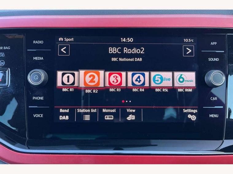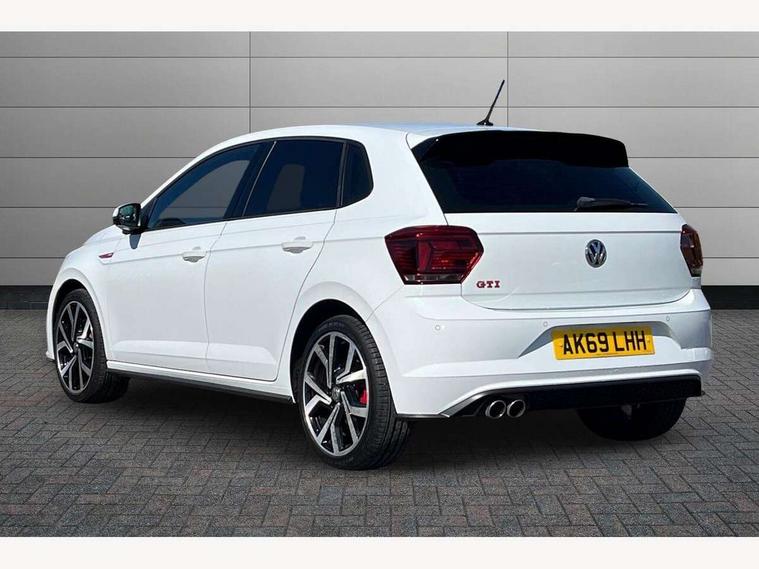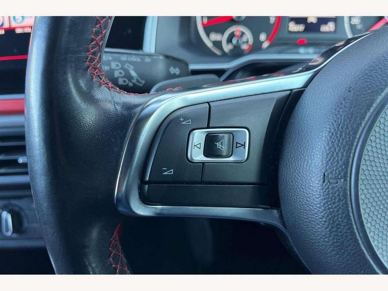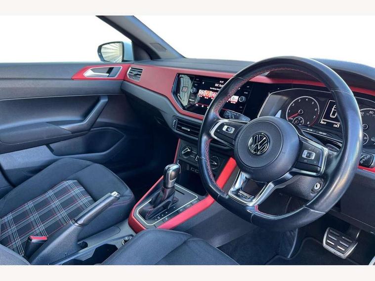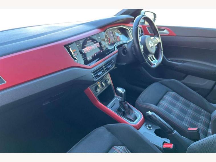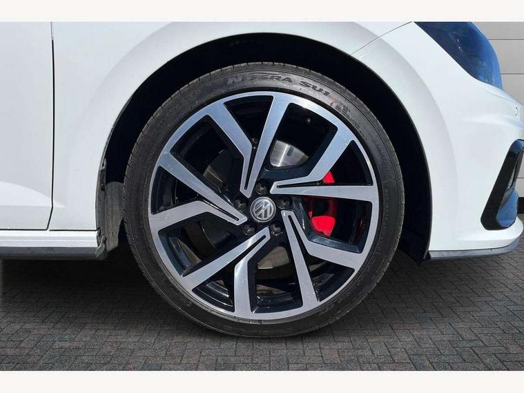 App-Connect, Digital clock, Driver alert system, Driving Mode Selection with four preset modes - Eco, normal, sport or individual modes, Multifunction computer plus, Power assisted speed sensitive steering, Speedo and rev counter, electronic odometer, trip, service interval display and fuel gauge, Start/stop system, Volkswagen connect, Warning buzzer and light for front seatbelts unfastened, Battery regeneration during braking, Galvanished body, Lowered sports suspension, XDS electronic differential lock, Black grille with chrome surround, Body colour door handles, Body coloured side sills, Electric front windows, Extended sill strips flared in black, Front fog lights including static cornering, Front windscreen washers and wipers with 4 speed intermittent delay, Gloss black rear spoiler, Heat insulating tinted glass, Heated rear window with auto timer, High level 3rd brake light, LED darkened rear light clusters, LED daytime running lights, LED rear number plate lights, Manual coming/automatic leaving home lighting function, Rear electric windows, Rear windscreen washer and wiper with interval delay, reverse activated, Stainless steel door sill protections with GTI logo, Twin chrome exhaust tailpipes, Unique GTI badging, 2 bag hooks in luggage compartment, 2 front cupholders and 12 V socket with cover, 3 rear head restraints, 60/40 split folding rear seat, AlumInium look pedals, Ambient lighting in front foorwell, front/rear door and dashboard light strips, Black roof lining and sun visors, Centre console storage with open storage compartment, Chrome-plated electric mirror adjustment switch surround, Chrome-plated electric window button surround, Driver and front passenger sunvisors with illuminated vanity mirrors, Dust/pollen filter, Folding rear seat backrest, Front and rear carpet mats with red stitching, Front seat backrest storage pockets, Gear change selection via paddle shift on steering wheel, Gear lever gaiter in black trim surround, Glovebox, Handbrake grip button in chrome effect, Height/reach adjustable steering column, Instrument lighting, adjustable panel illumination, Interior light with delay, Isofix Preparation 2 Rear child seats, Jack and tool kit, Leather gear knob and handbrake grip, LED interior lighting - 2 reading lights front and rear with interior delay and dimming function, Luggage compartment cover, removable, Luggage compartment lighting, Storage compartment in front doors, Storage compartment in rear doors, Storage compartment under front seats, Three spoke leather trimmed multifunction steering wheel with GTI logo and red contrast stitching, GTI styling pack - Polo, 3 point height adj front seatbelts + pretensioners, 3x3 point rear seatbelts, ABS, Automatic post collision braking, Driver/front passenger airbag, Drivers and front passengers safety optimised head restraints, ESP with EDL + ASR, Front and rear passenger curtain airbags, Front passenger airbag deactivation, Front seat side impact airbags, Front/rear disc brakes, HBA (Hydraulic Brake Assist), Hill hold control, Red brake calipers, Single tone horn, Tyre pressure monitoring system, Alarm with interior protection and deactivation via infotainment system, Electronic engine immobiliser, Remote central locking with 2 remote folding keys, Chrome plated air vent surround, Gloss black instrument surrounds, Steel space saver spare wheel,